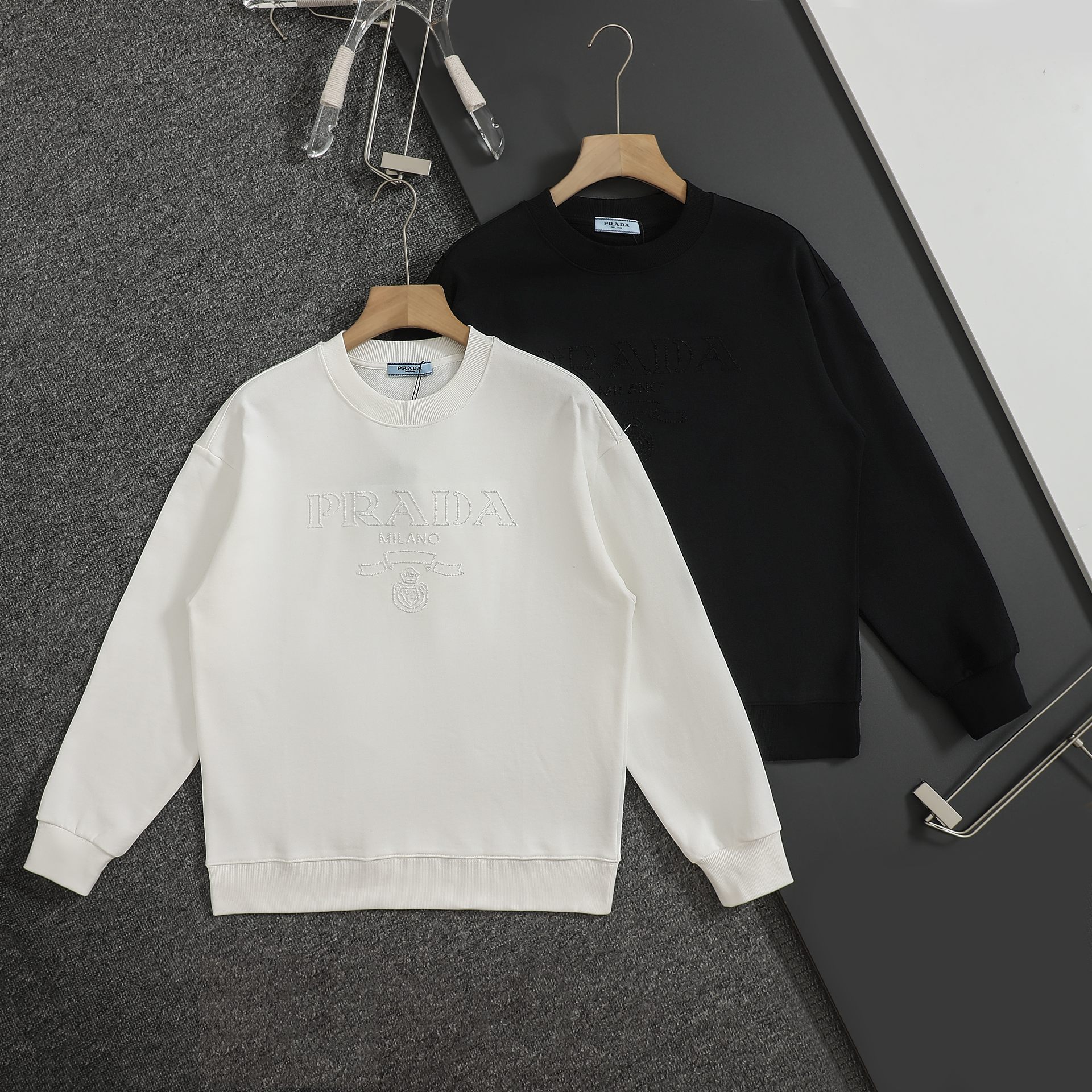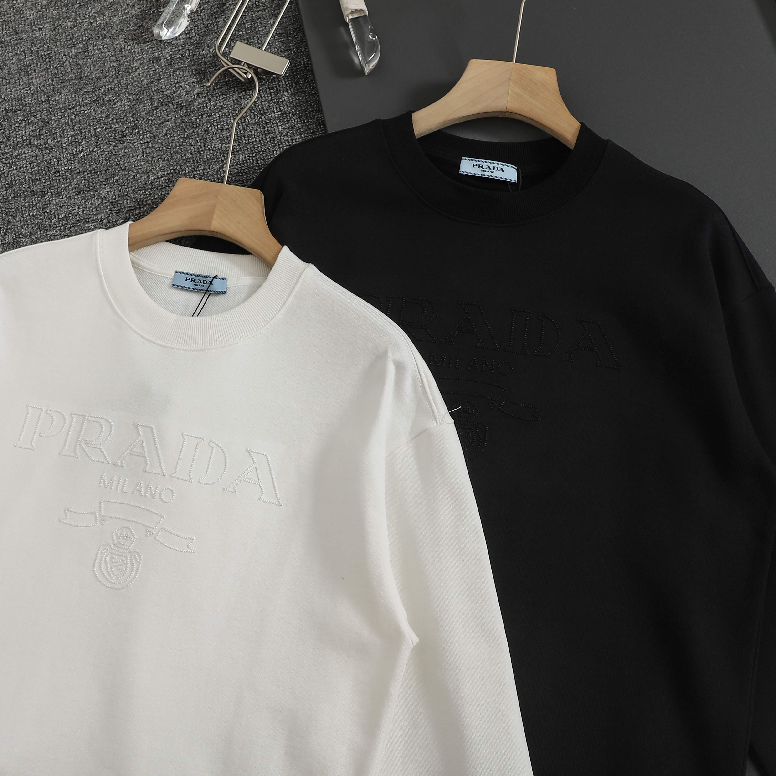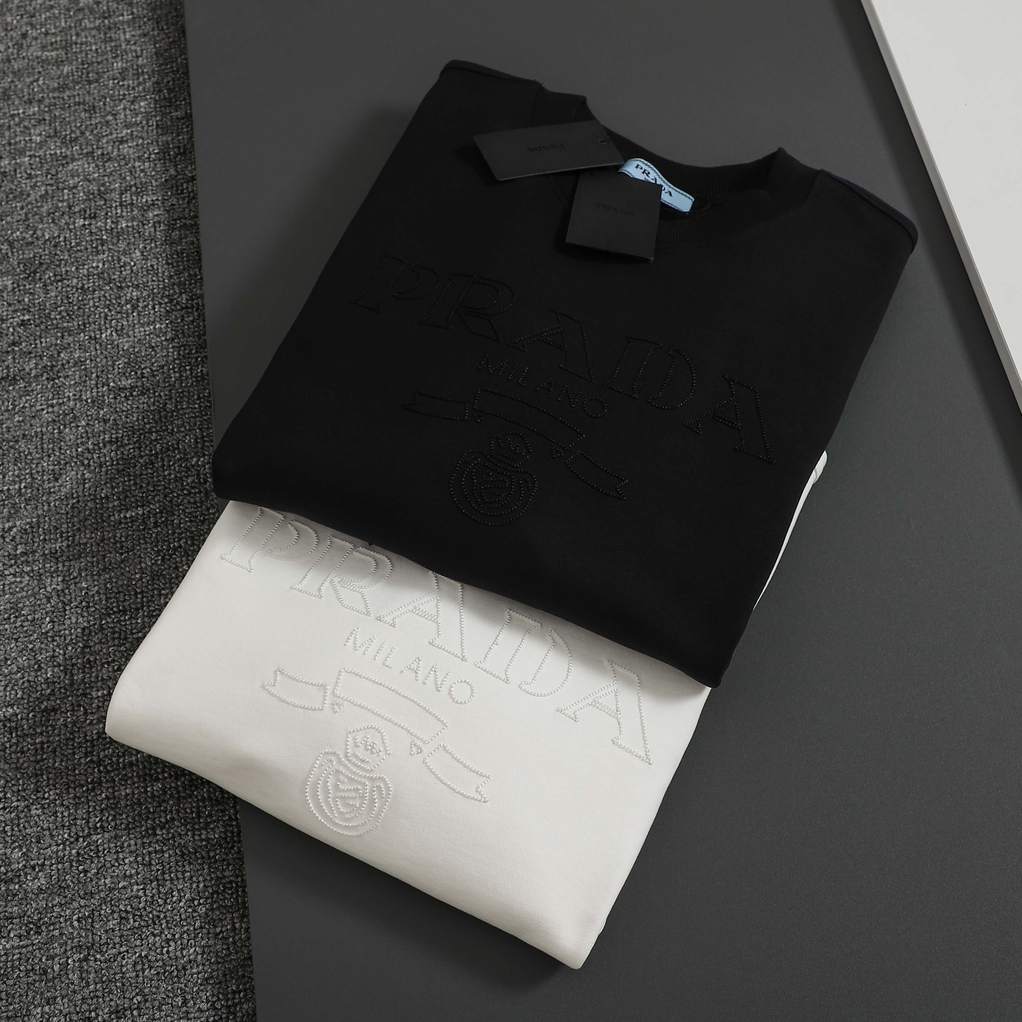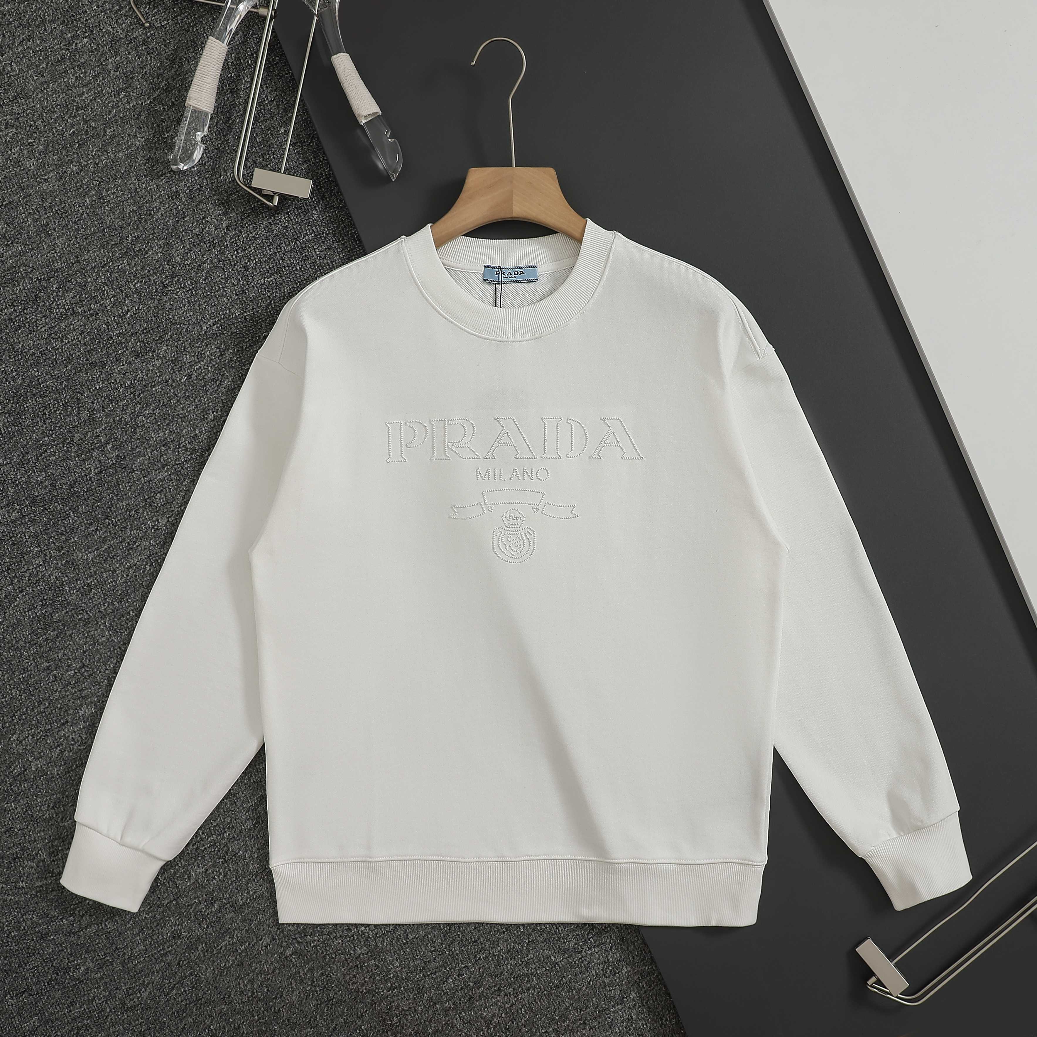 这款衣服是AAAAA 1:1 质量 (非常棒). 使用了和原版一模一样的材料. 商标部分也保持了和普拉达/Prada一样. 图片拍摄是实物衣服拍摄, 您所收到的实物保证和我们图片一模一样.