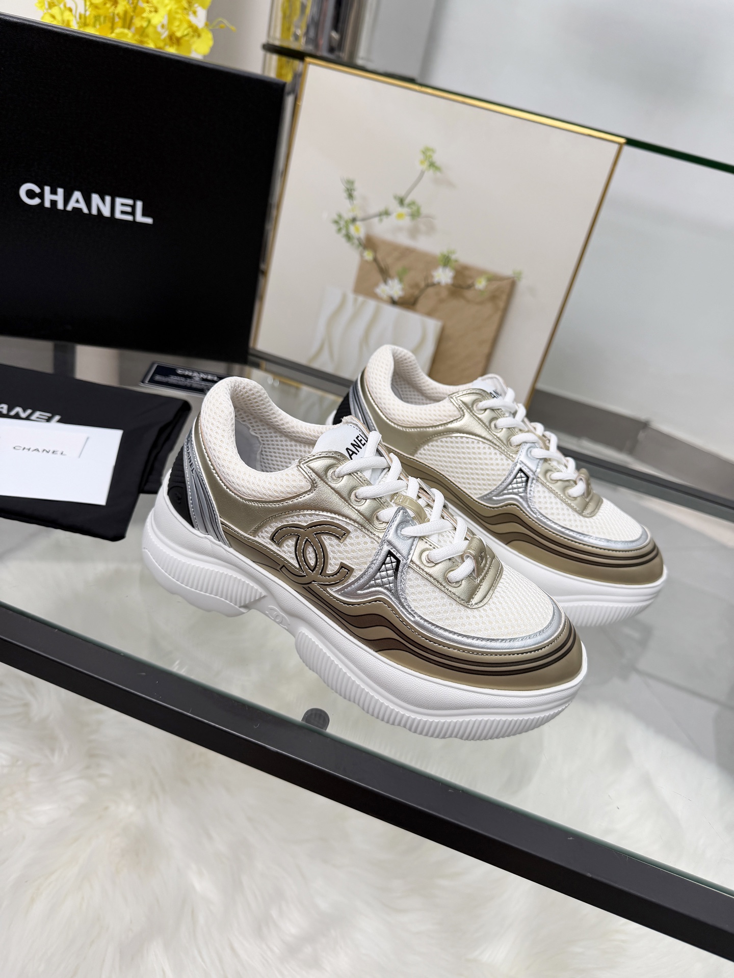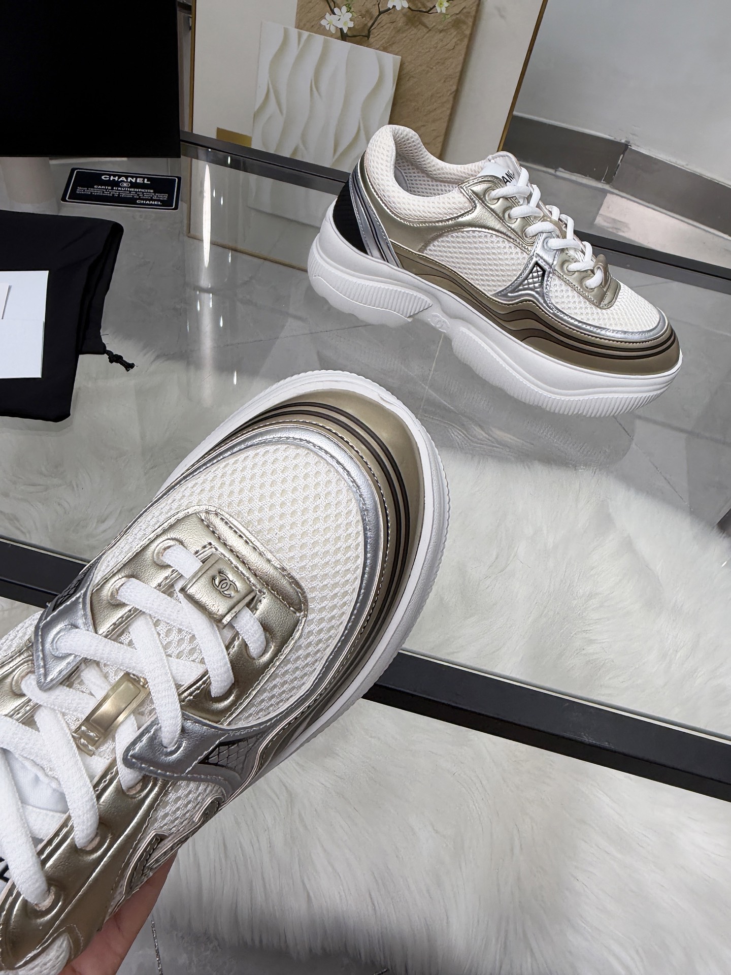 这款鞋子是AAAAA 1:1 质量 (非常棒). 使用了和原版一模一样的材料. 商标部分也保持了和香奈儿/Chanel一样. 图片拍摄是实物鞋子拍摄, 您所收到的实物保证和我们图片一模一样.