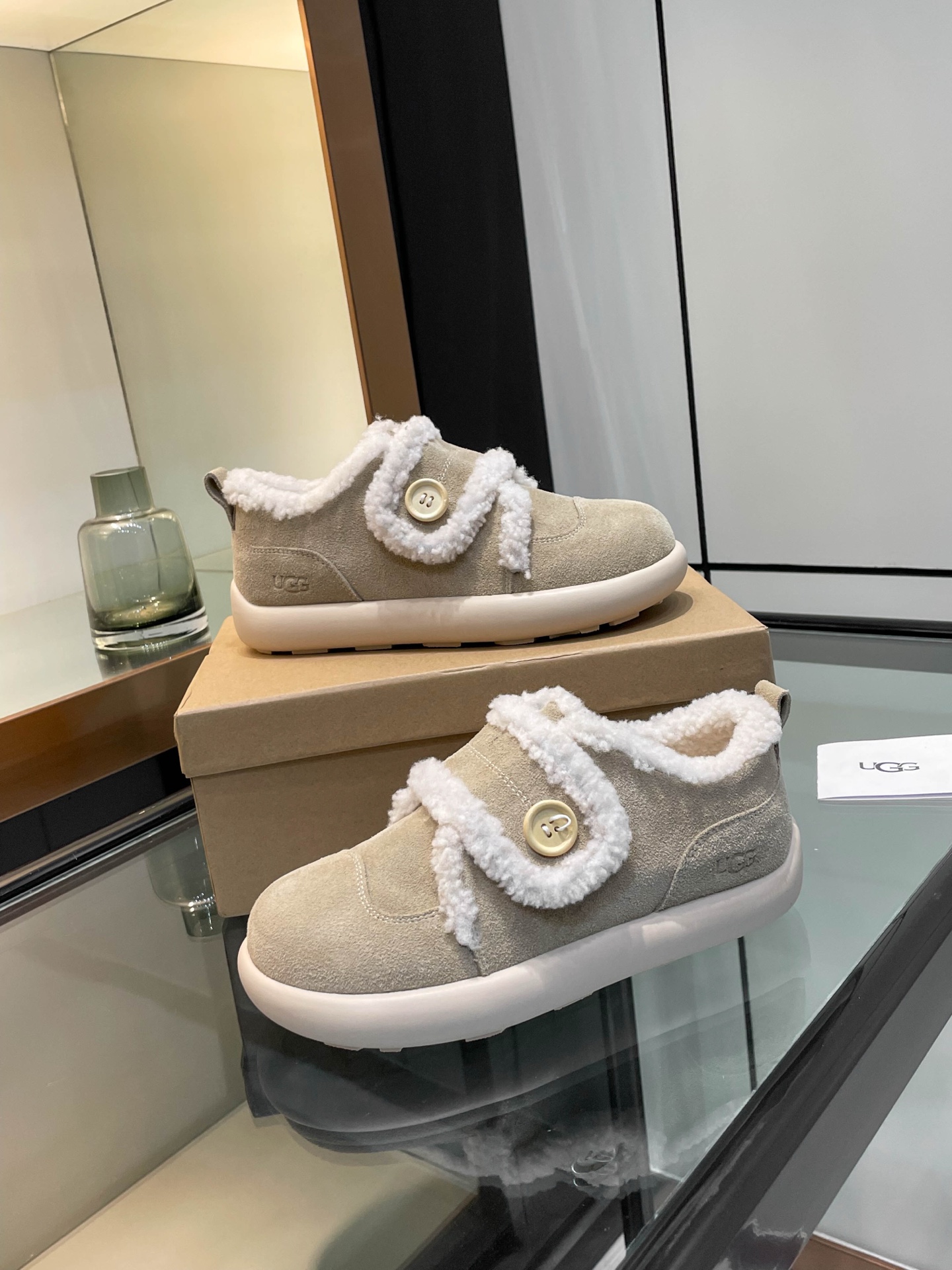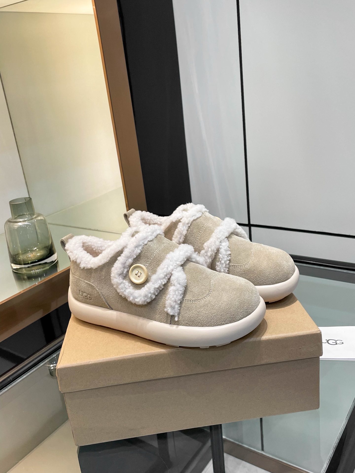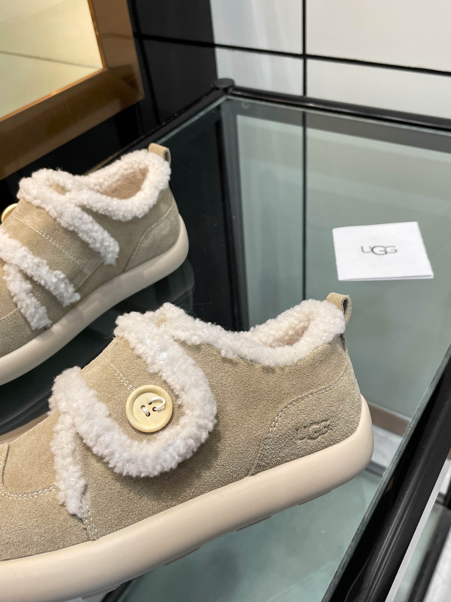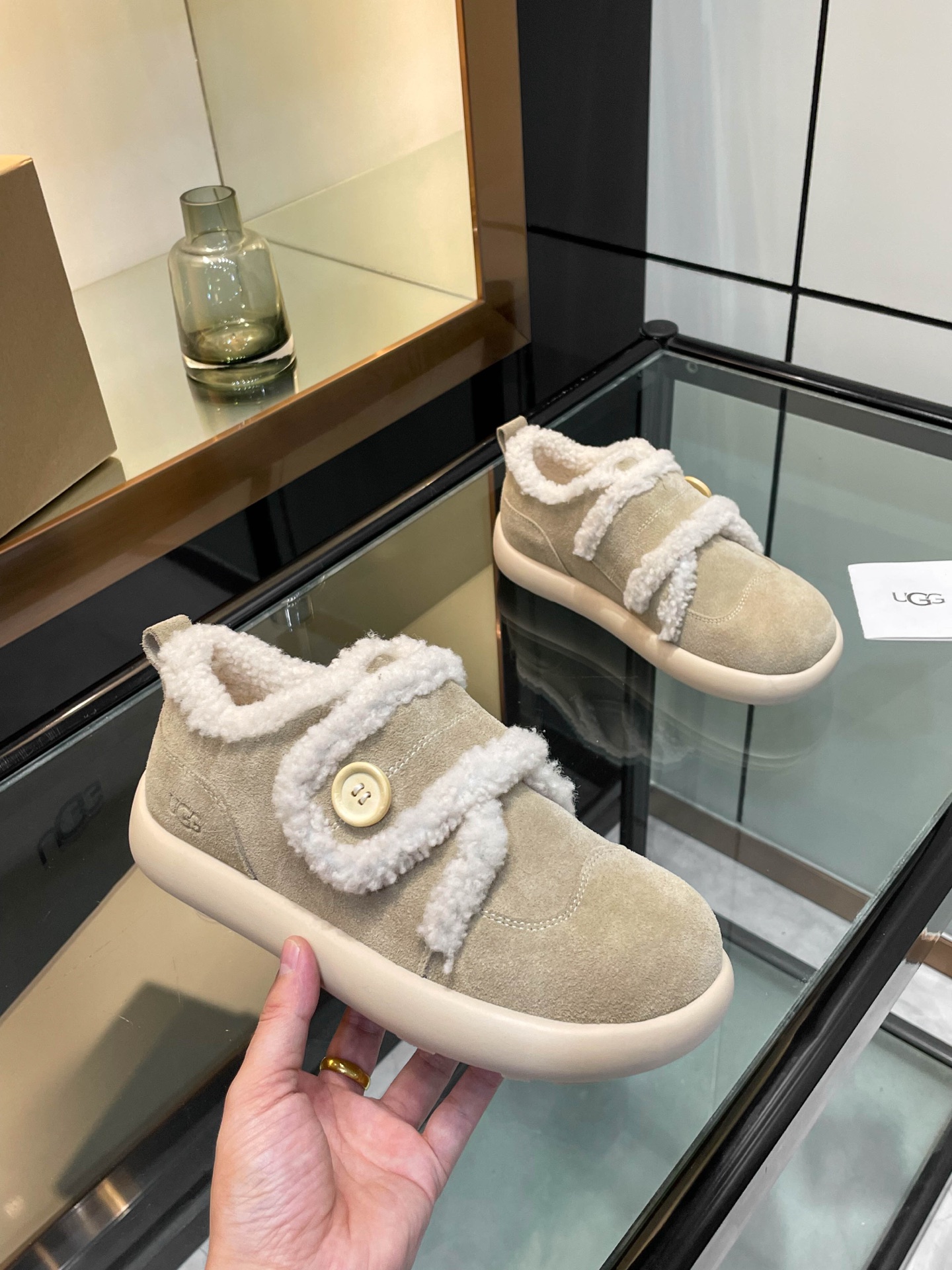这款鞋子是AAAAA 1:1 质量 (非常棒). 使用了和原版一模一样的材料. 商标部分也保持了和UGG雪地靴一样. 图片拍摄是实物鞋子拍摄, 您所收到的实物保证和我们图片一模一样.