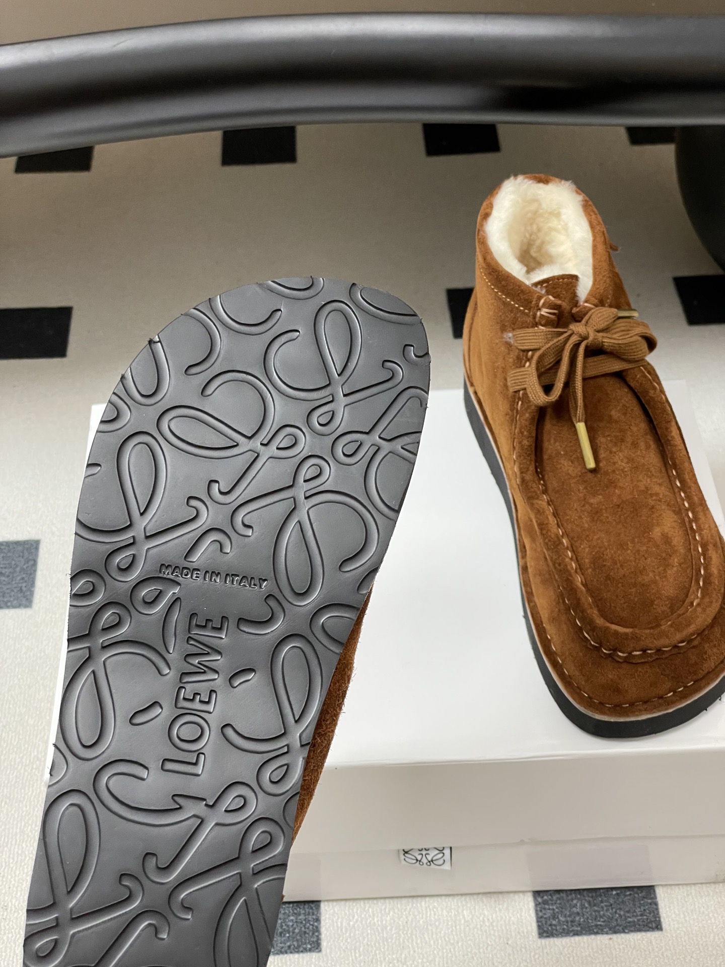 这款鞋子是AAAAA 1:1 质量 (非常棒). 使用了和原版一模一样的材料. 商标部分也保持了和罗意威/Loewe一样. 图片拍摄是实物鞋子拍摄, 您所收到的实物保证和我们图片一模一样.