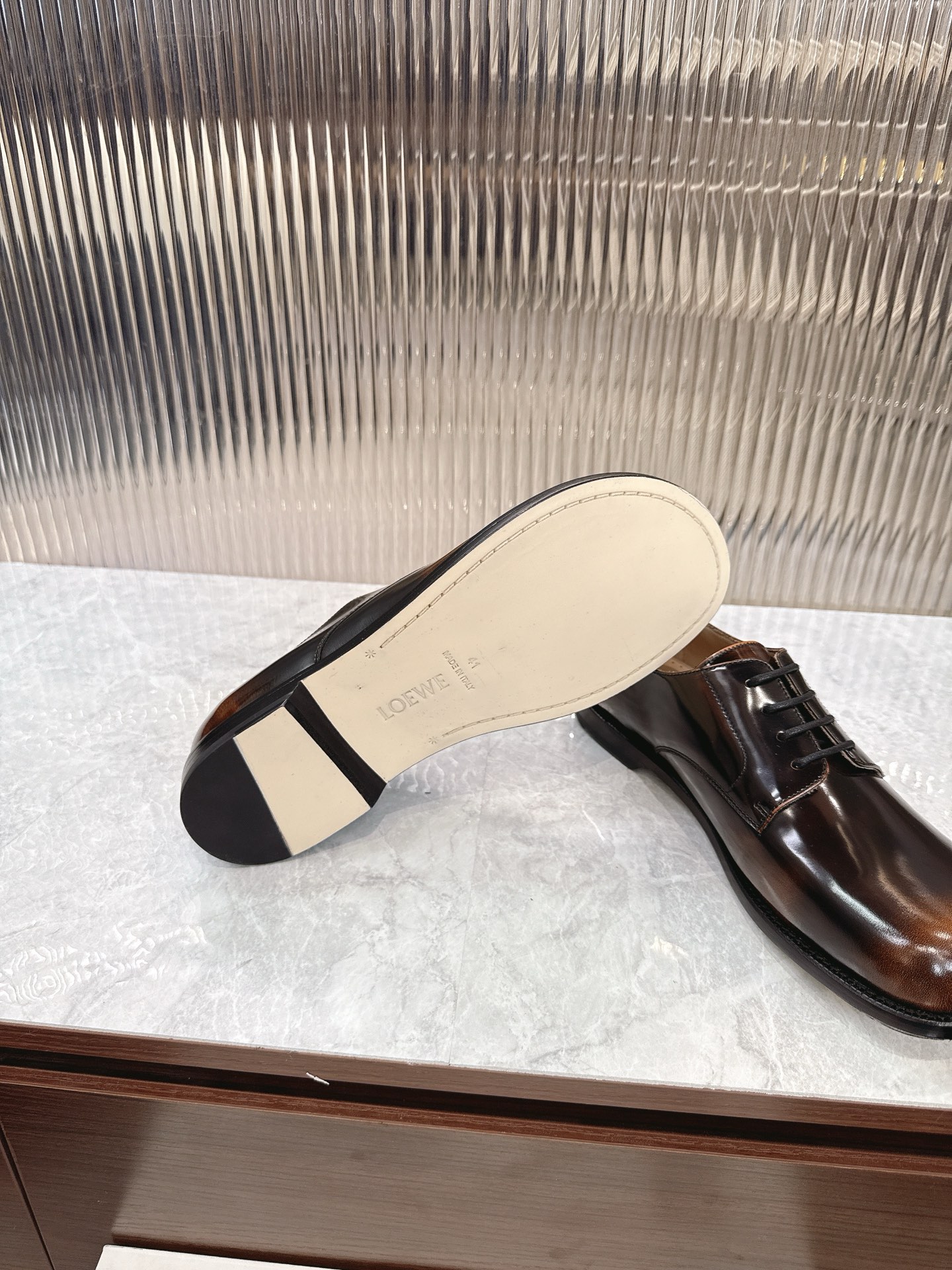这款鞋子是AAAAA 1:1 质量 (非常棒). 使用了和原版一模一样的材料. 商标部分也保持了和罗意威/Loewe一样. 图片拍摄是实物鞋子拍摄, 您所收到的实物保证和我们图片一模一样.