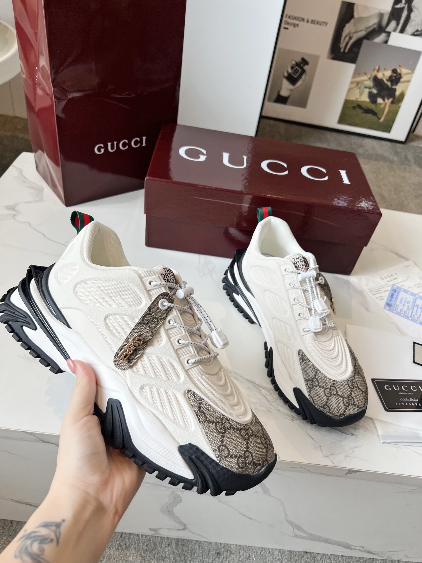 这款鞋子是AAAAA 1:1 质量 (非常棒). 使用了和原版一模一样的材料. 商标部分也保持了和古奇/Gucci一样. 图片拍摄是实物鞋子拍摄, 您所收到的实物保证和我们图片一模一样.