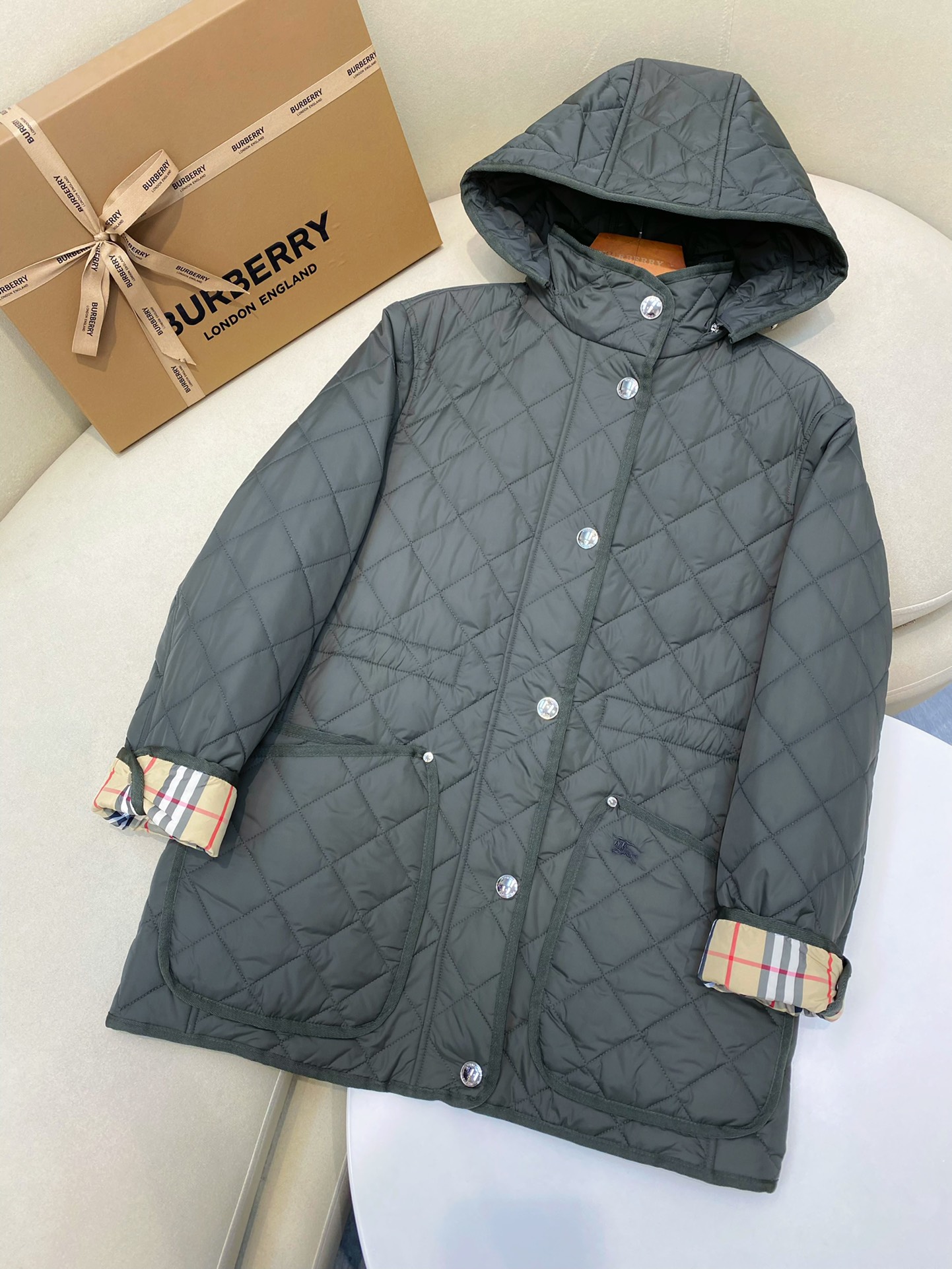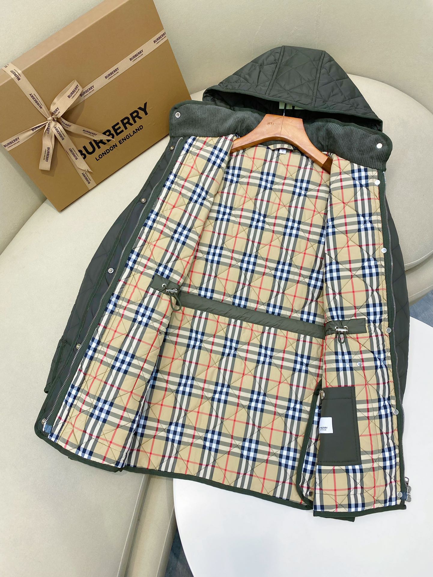 这款衣服是AAAAA 1:1 质量 (非常棒). 使用了和原版一模一样的材料. 商标部分也保持了和巴宝莉/Burberry一样. 图片拍摄是实物衣服拍摄, 您所收到的实物保证和我们图片一模一样.