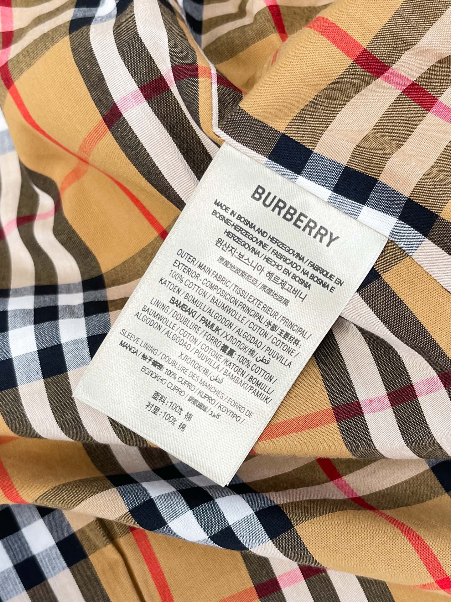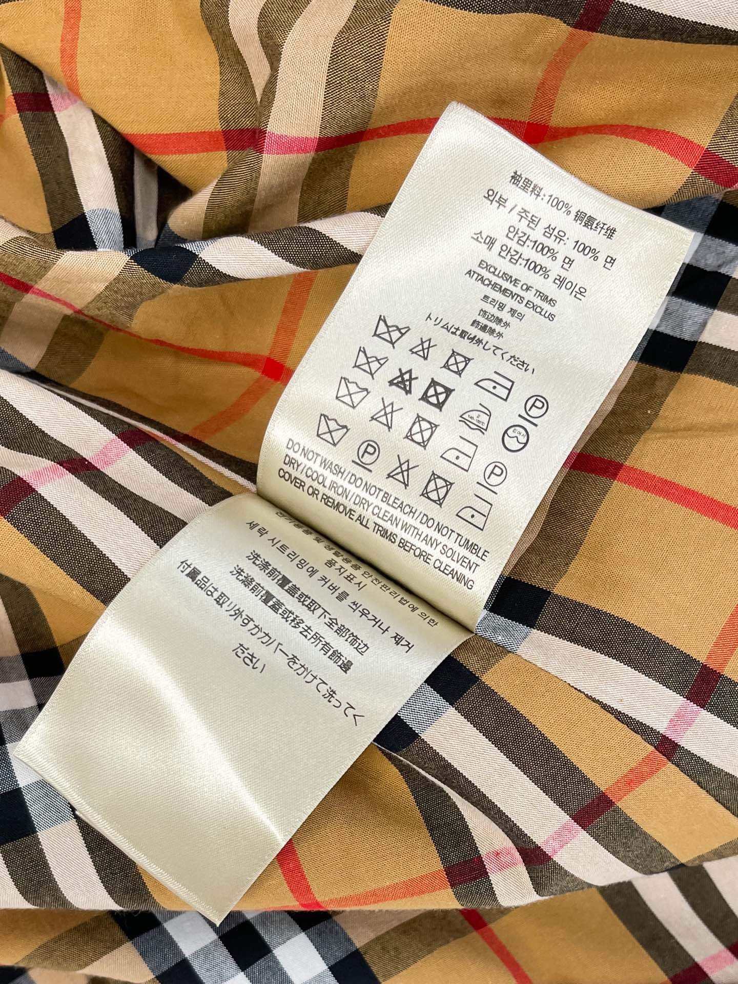 这款衣服是AAAAA 1:1 质量 (非常棒). 使用了和原版一模一样的材料. 商标部分也保持了和巴宝莉/Burberry一样. 图片拍摄是实物衣服拍摄, 您所收到的实物保证和我们图片一模一样.