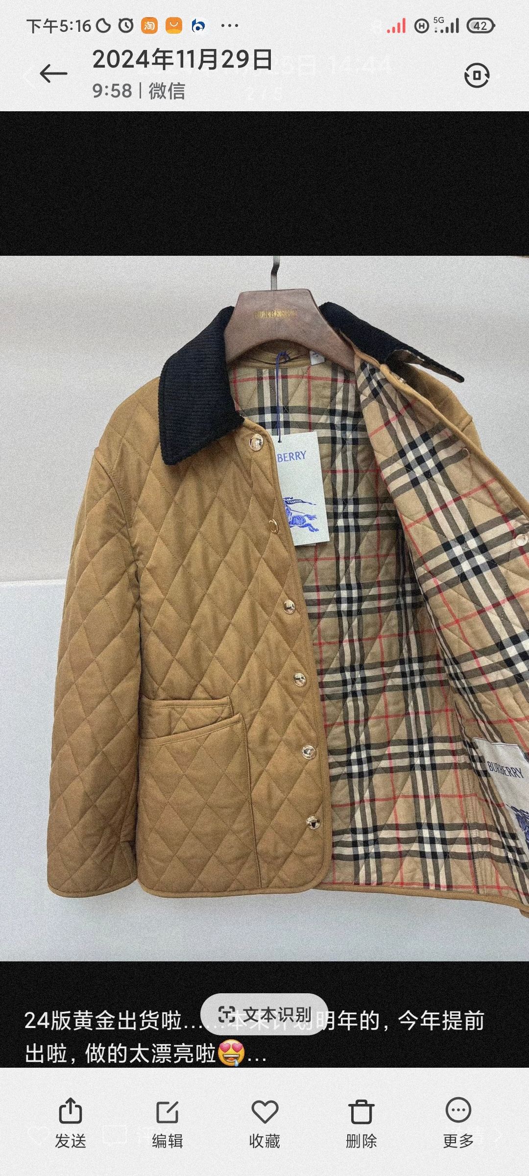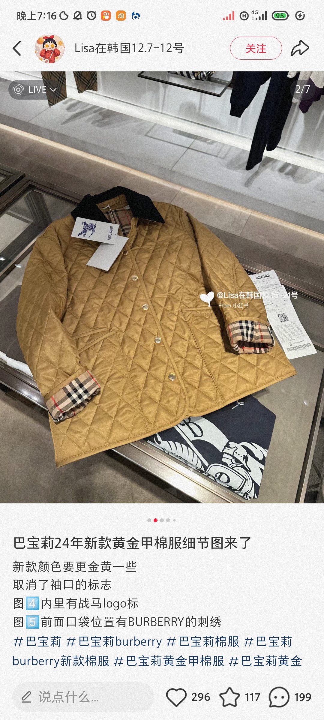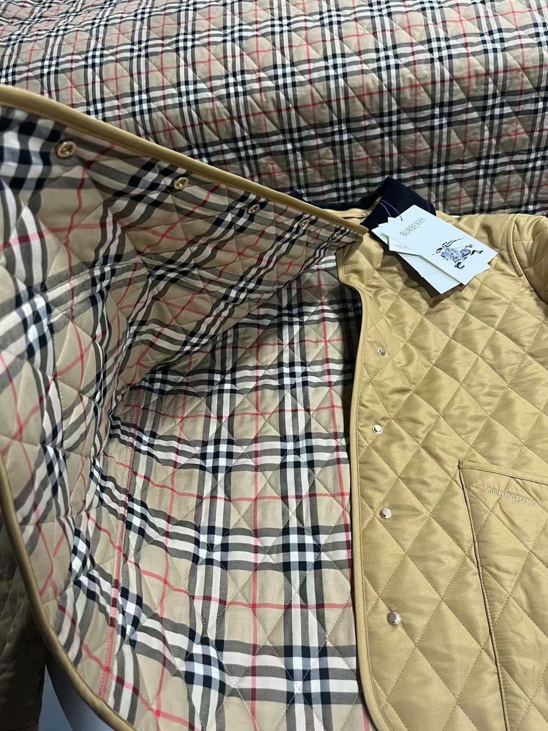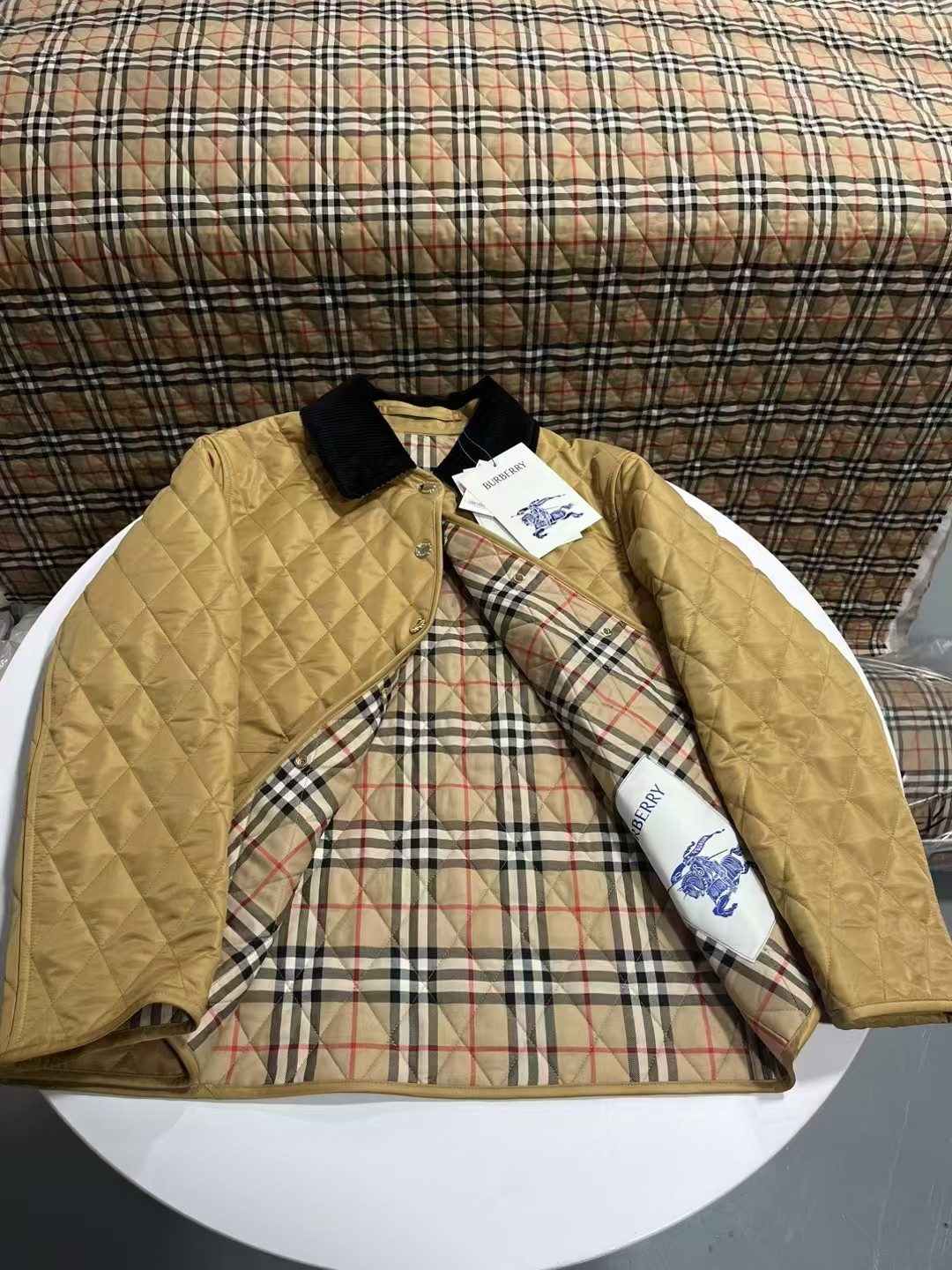 这款衣服是AAAAA 1:1 质量 (非常棒). 使用了和原版一模一样的材料. 商标部分也保持了和巴宝莉/Burberry一样. 图片拍摄是实物衣服拍摄, 您所收到的实物保证和我们图片一模一样.