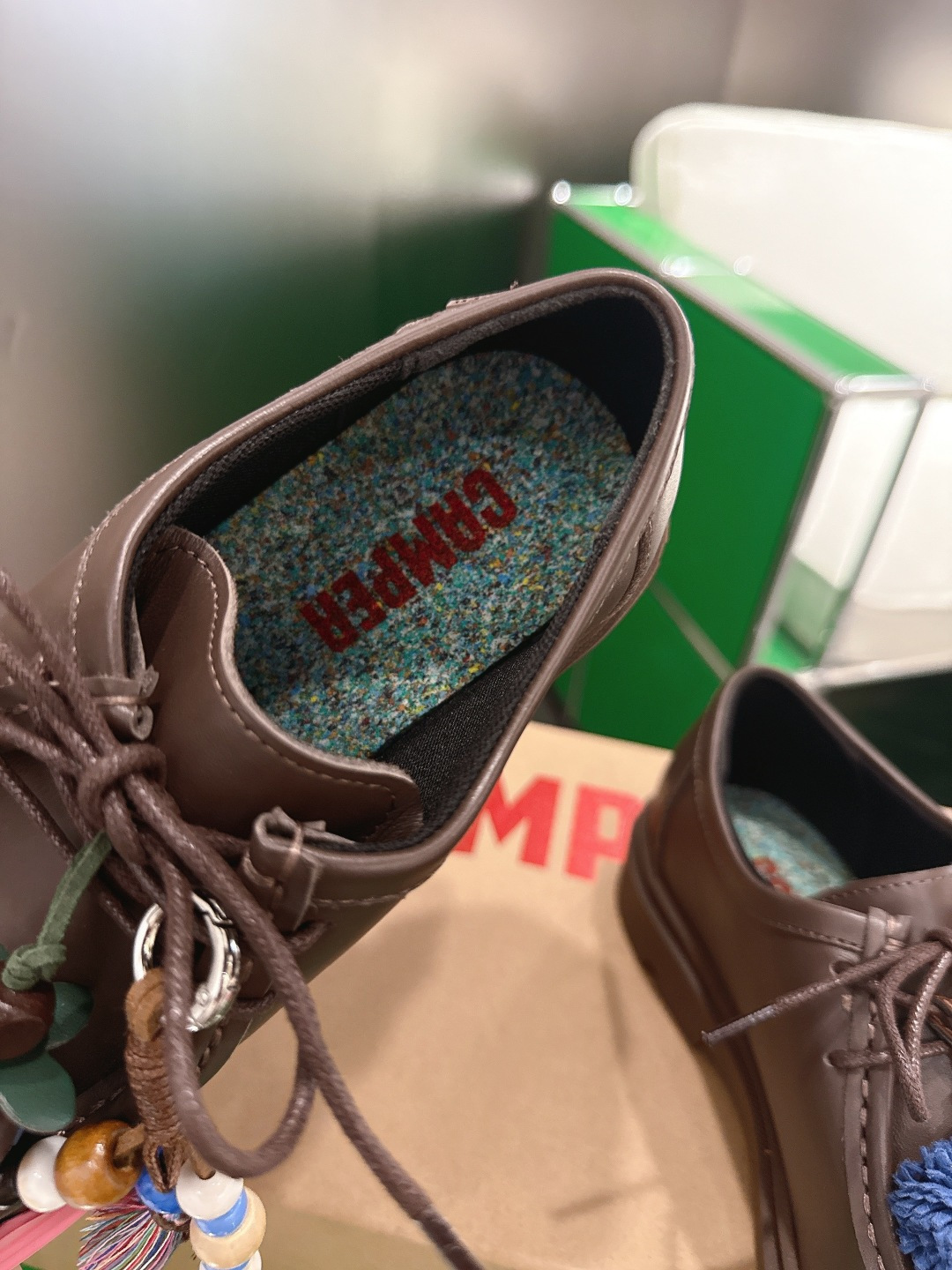 这款鞋子是AAAAA 1:1 质量 (非常棒). 使用了和原版一模一样的材料. 商标部分也保持了和Camper一样. 图片拍摄是实物鞋子拍摄, 您所收到的实物保证和我们图片一模一样.
