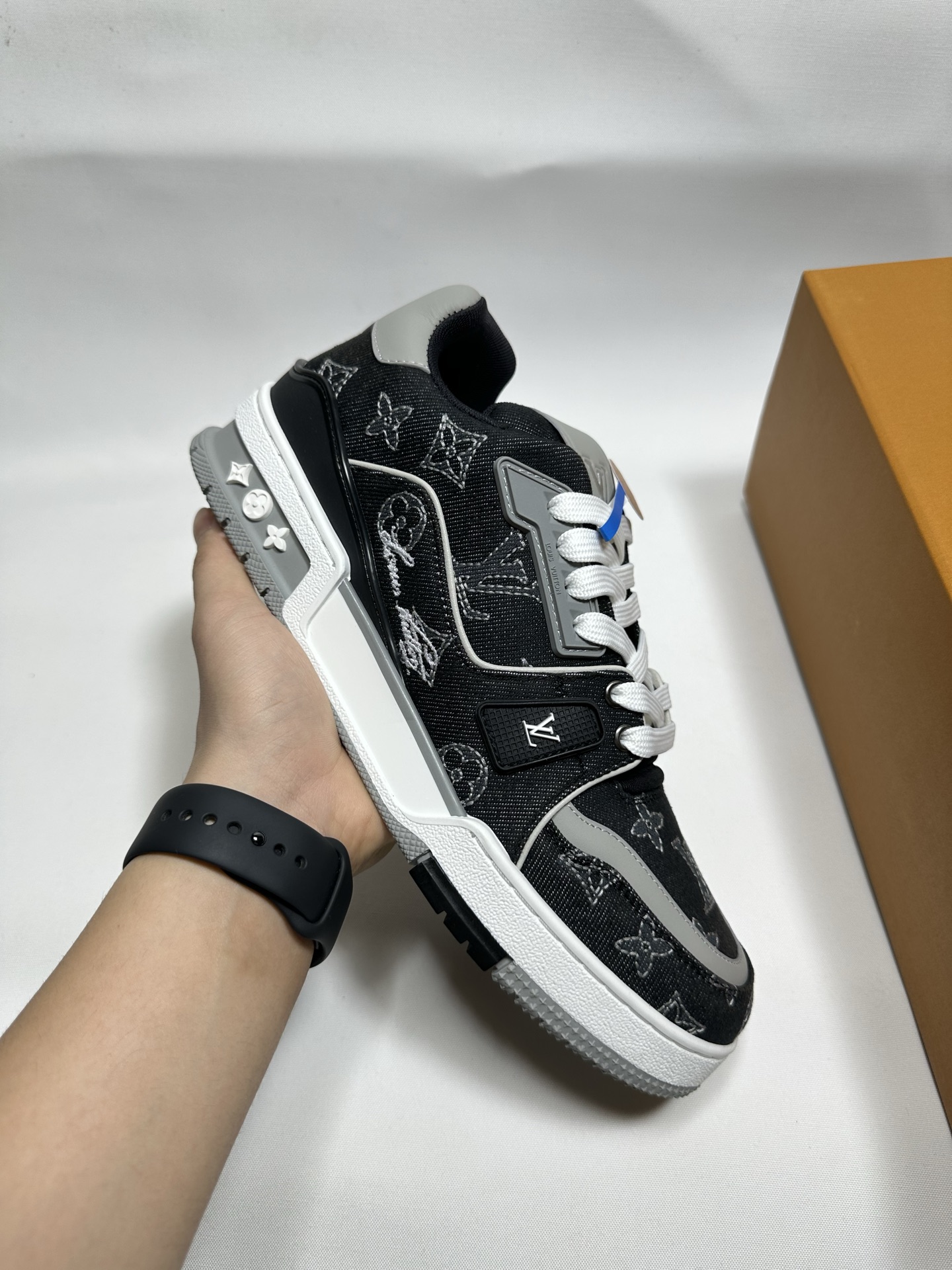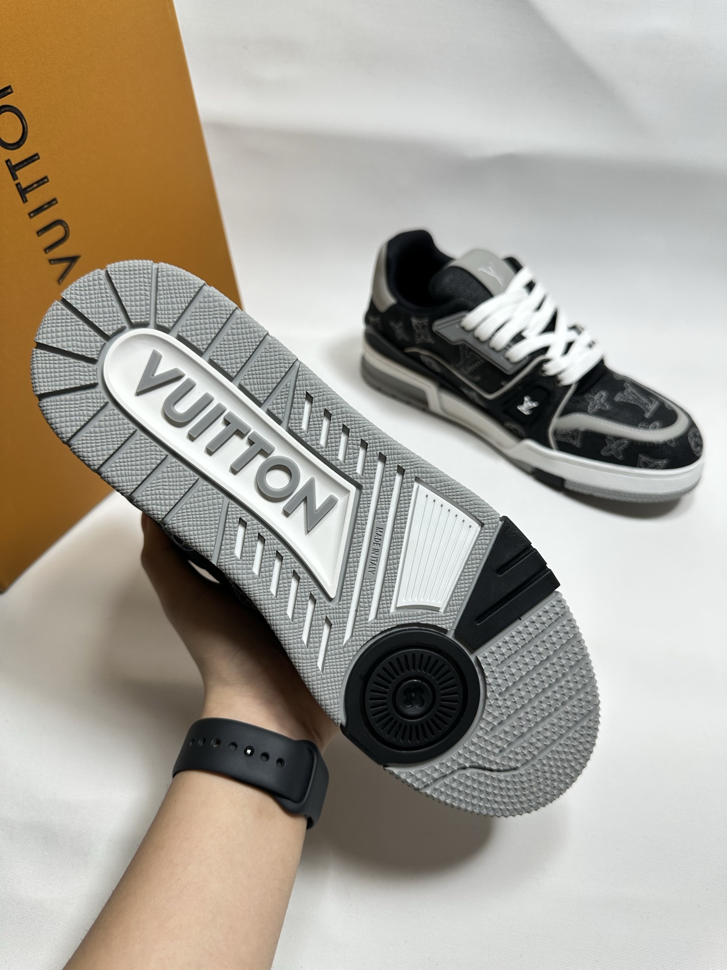 这款鞋子是AAAAA 1:1 质量 (非常棒). 使用了和原版一模一样的材料. 商标部分也保持了和路易威登/Louis Vuitton一样. 图片拍摄是实物鞋子拍摄, 您所收到的实物保证和我们图片一模一样.