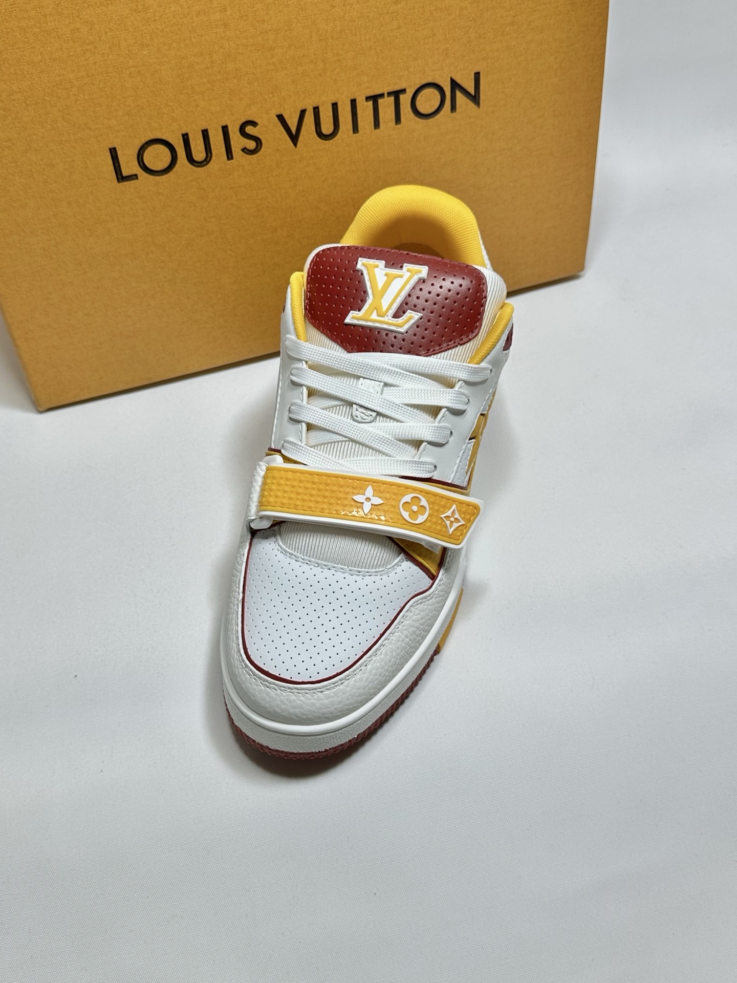这款鞋子是AAAAA 1:1 质量 (非常棒). 使用了和原版一模一样的材料. 商标部分也保持了和路易威登/Louis Vuitton一样. 图片拍摄是实物鞋子拍摄, 您所收到的实物保证和我们图片一模一样.