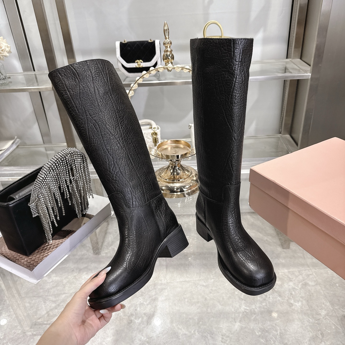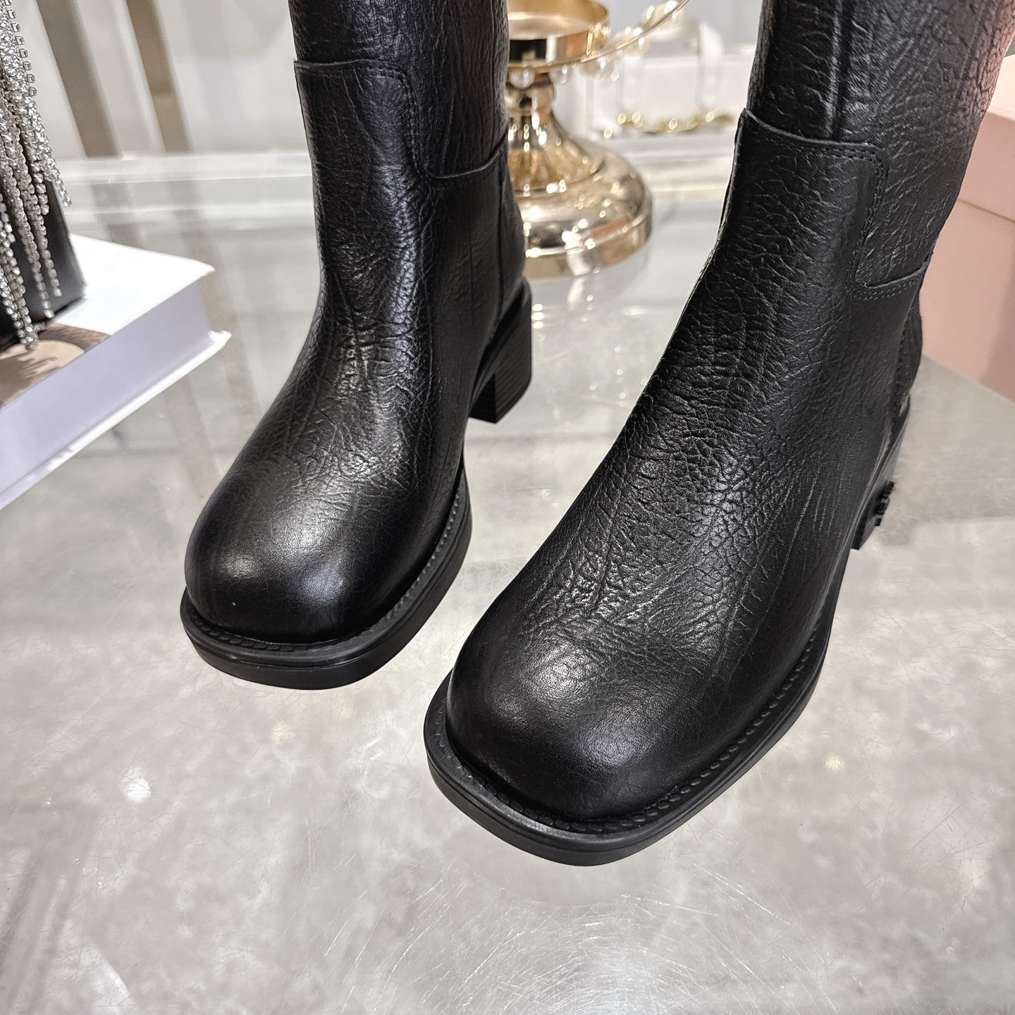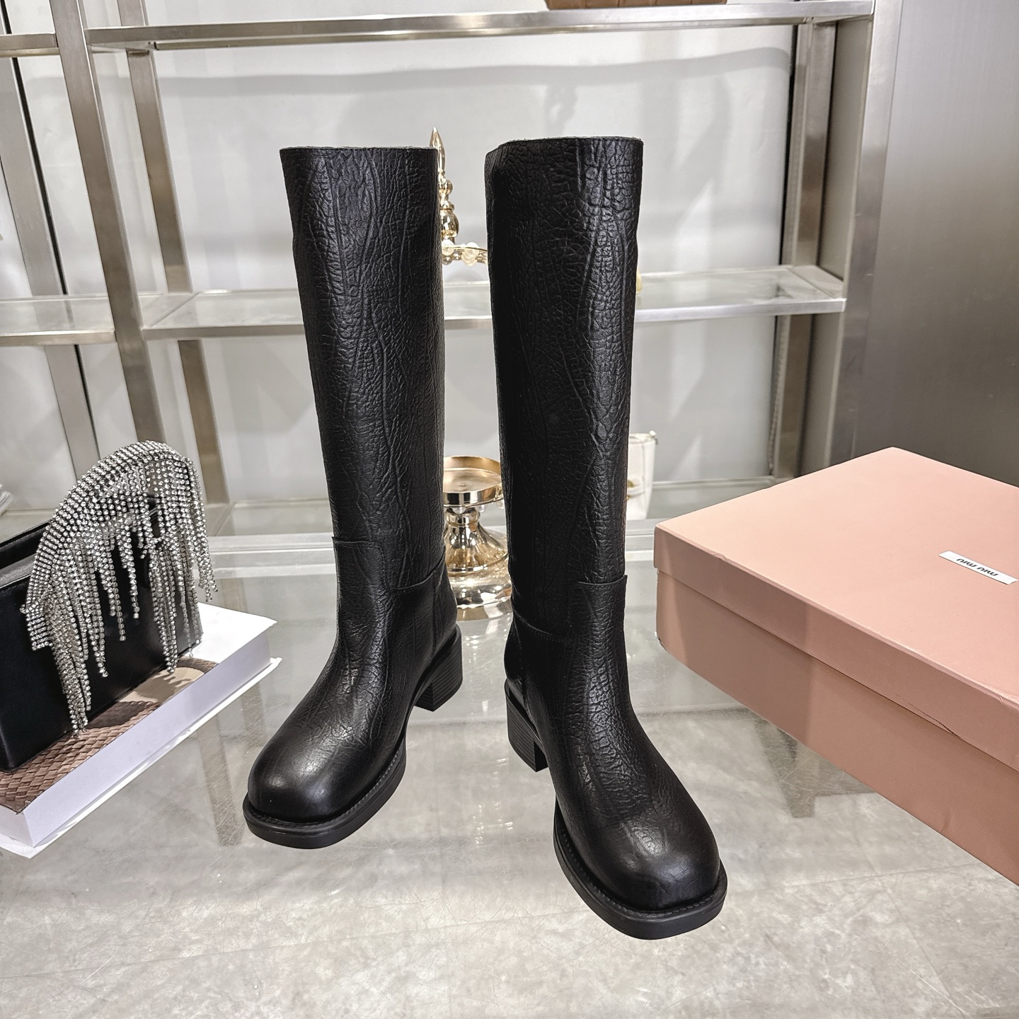 这款鞋子是AAAAA 1:1 质量 (非常棒). 使用了和原版一模一样的材料. 商标部分也保持了和缪缪/Miu Miu一样. 图片拍摄是实物鞋子拍摄, 您所收到的实物保证和我们图片一模一样.