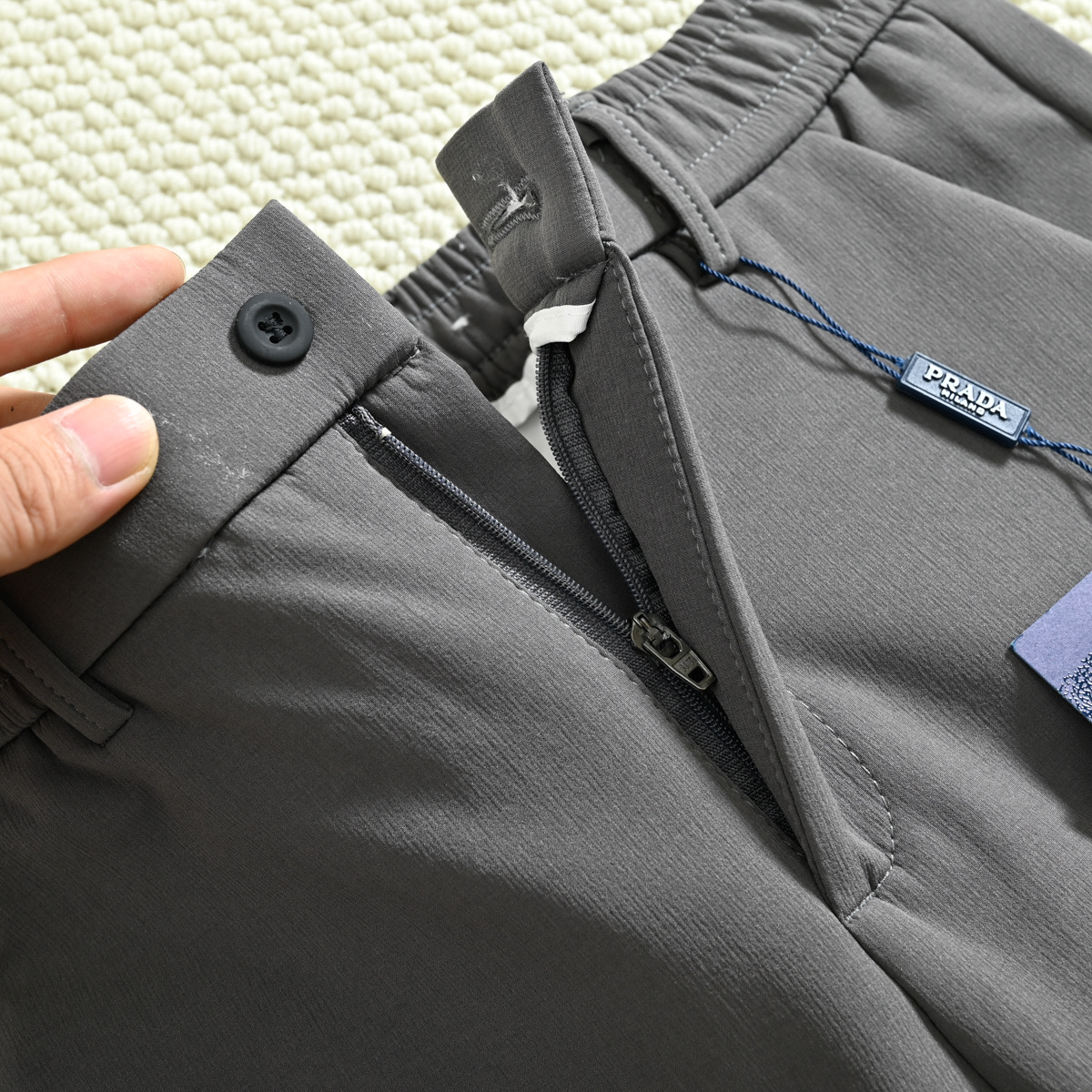 这款衣服是AAAAA 1:1 质量 (非常棒). 使用了和原版一模一样的材料. 商标部分也保持了和普拉达/Prada一样. 图片拍摄是实物衣服拍摄, 您所收到的实物保证和我们图片一模一样.