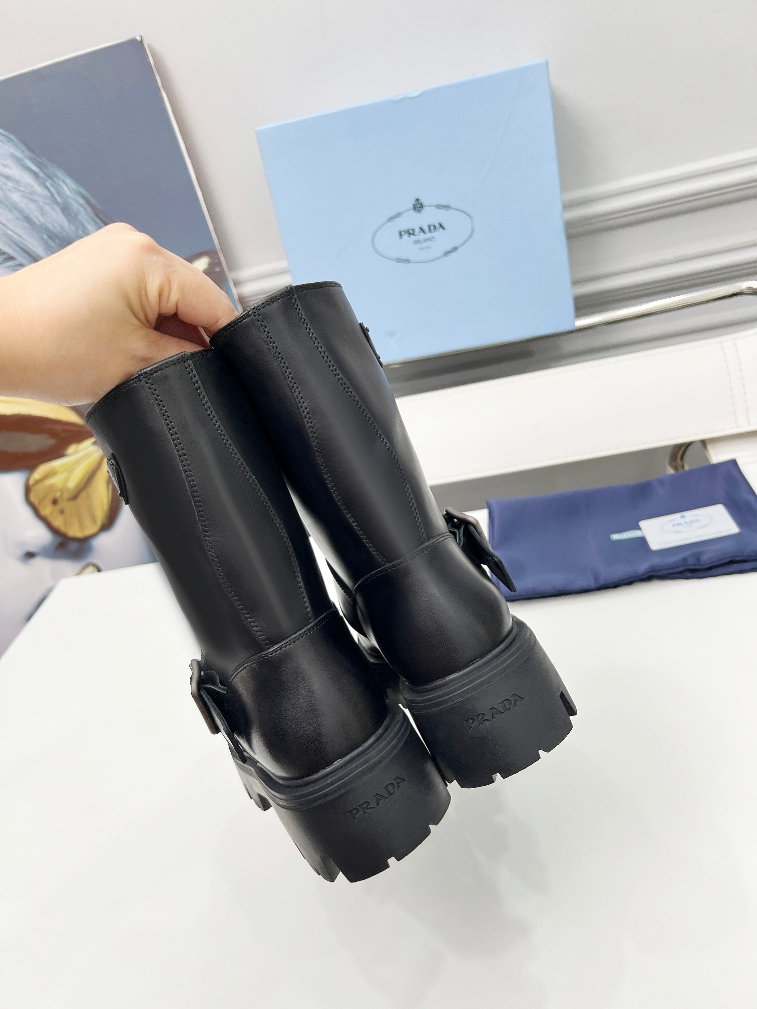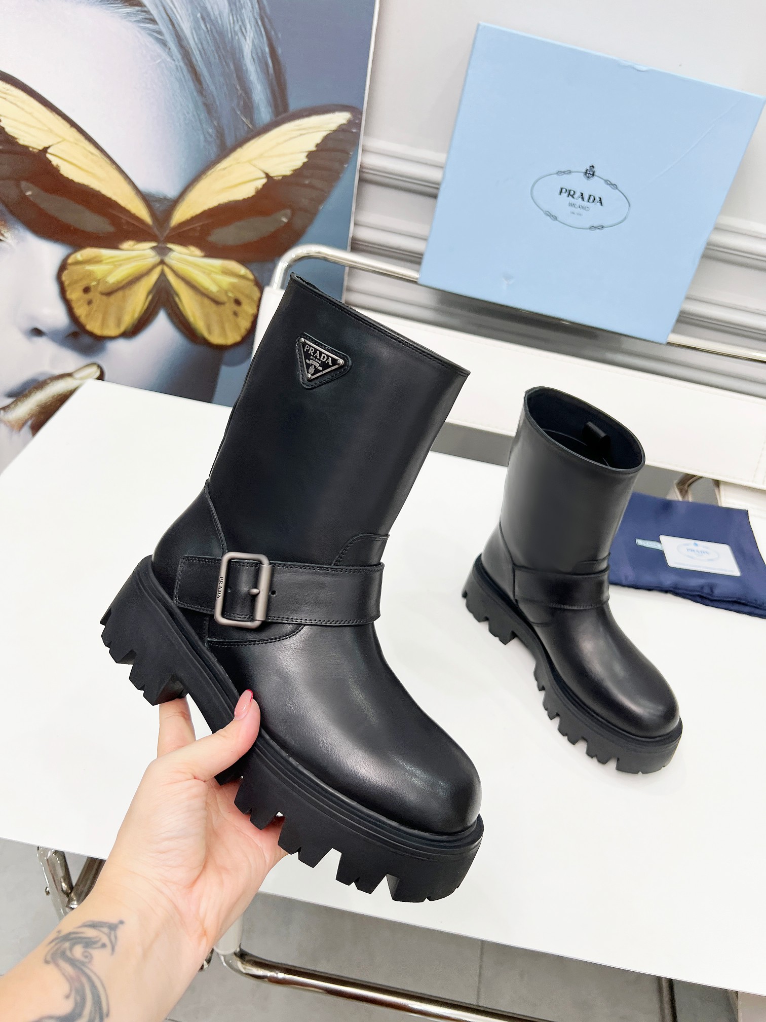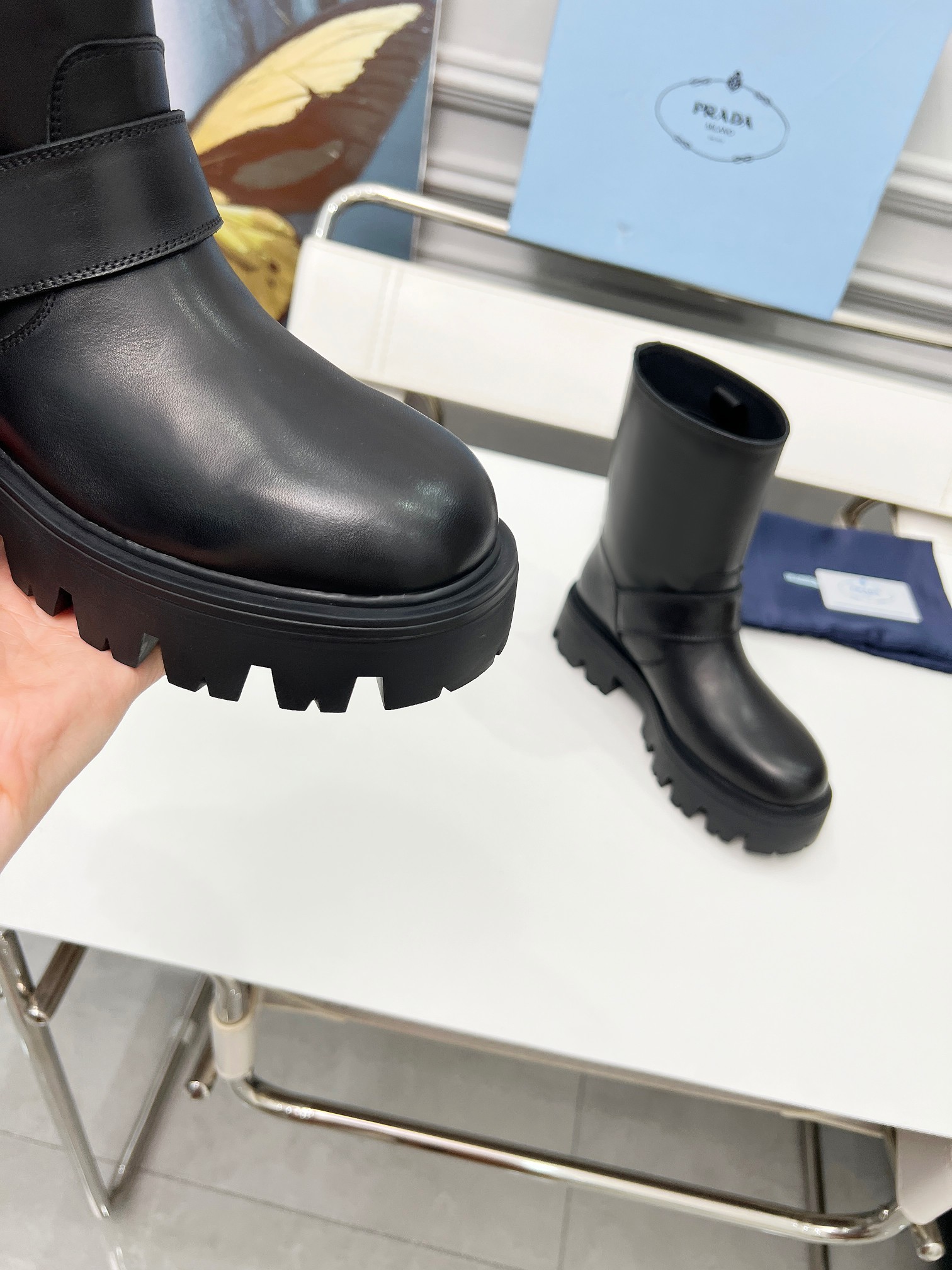 这款鞋子是AAAAA 1:1 质量 (非常棒). 使用了和原版一模一样的材料. 商标部分也保持了和普拉达/Prada一样. 图片拍摄是实物鞋子拍摄, 您所收到的实物保证和我们图片一模一样.