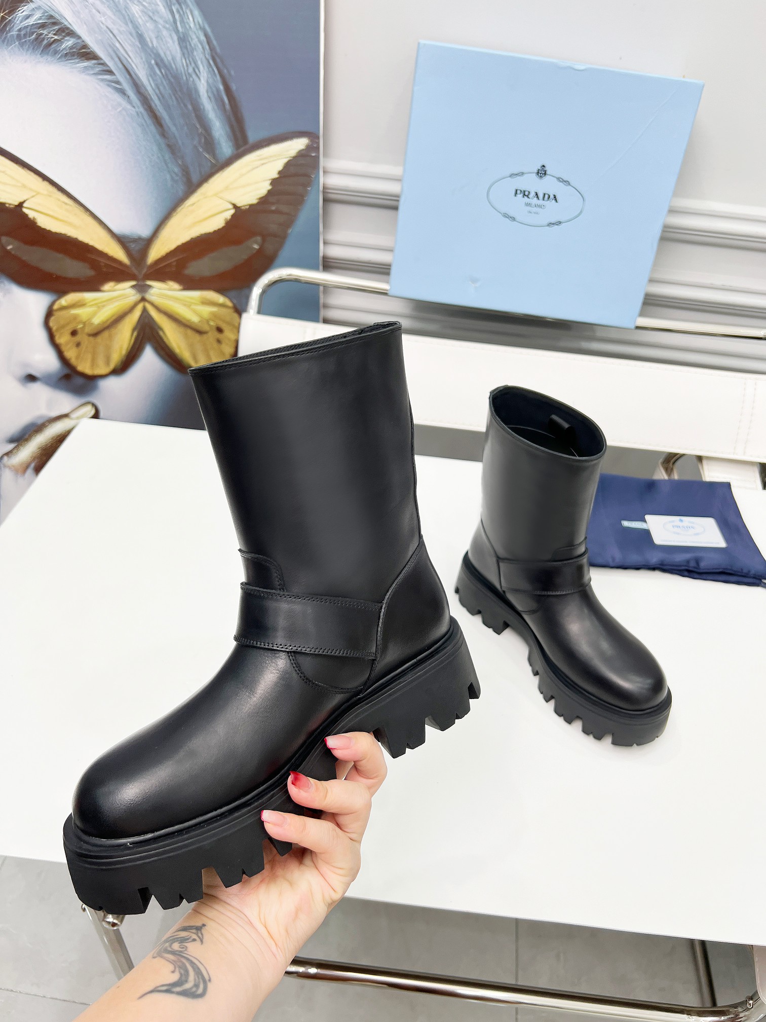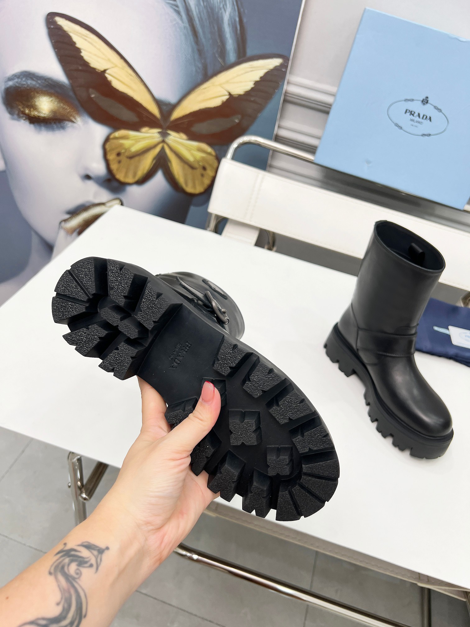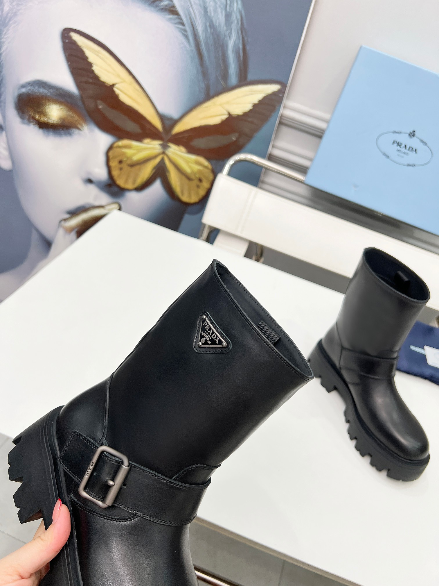 这款鞋子是AAAAA 1:1 质量 (非常棒). 使用了和原版一模一样的材料. 商标部分也保持了和普拉达/Prada一样. 图片拍摄是实物鞋子拍摄, 您所收到的实物保证和我们图片一模一样.