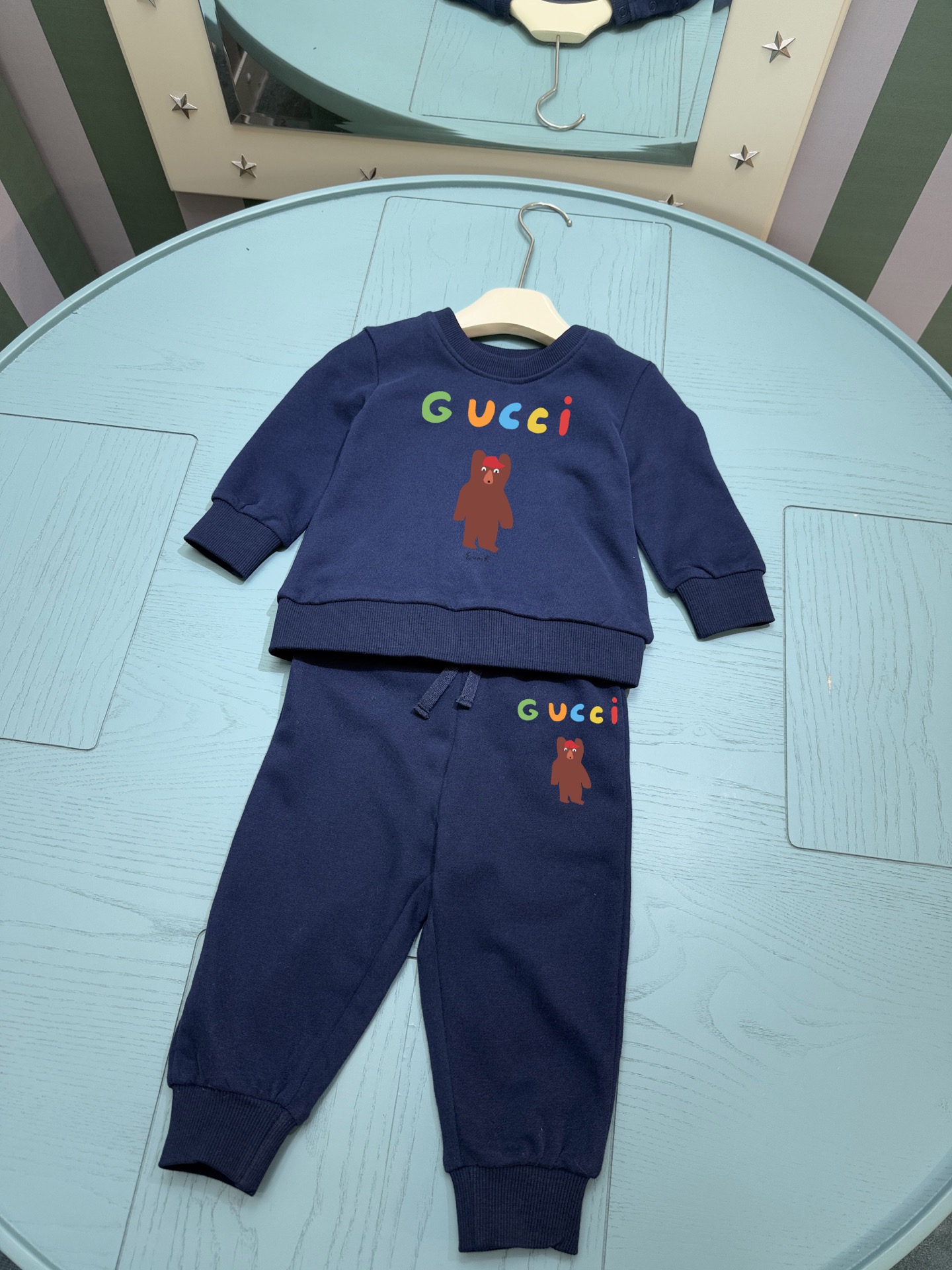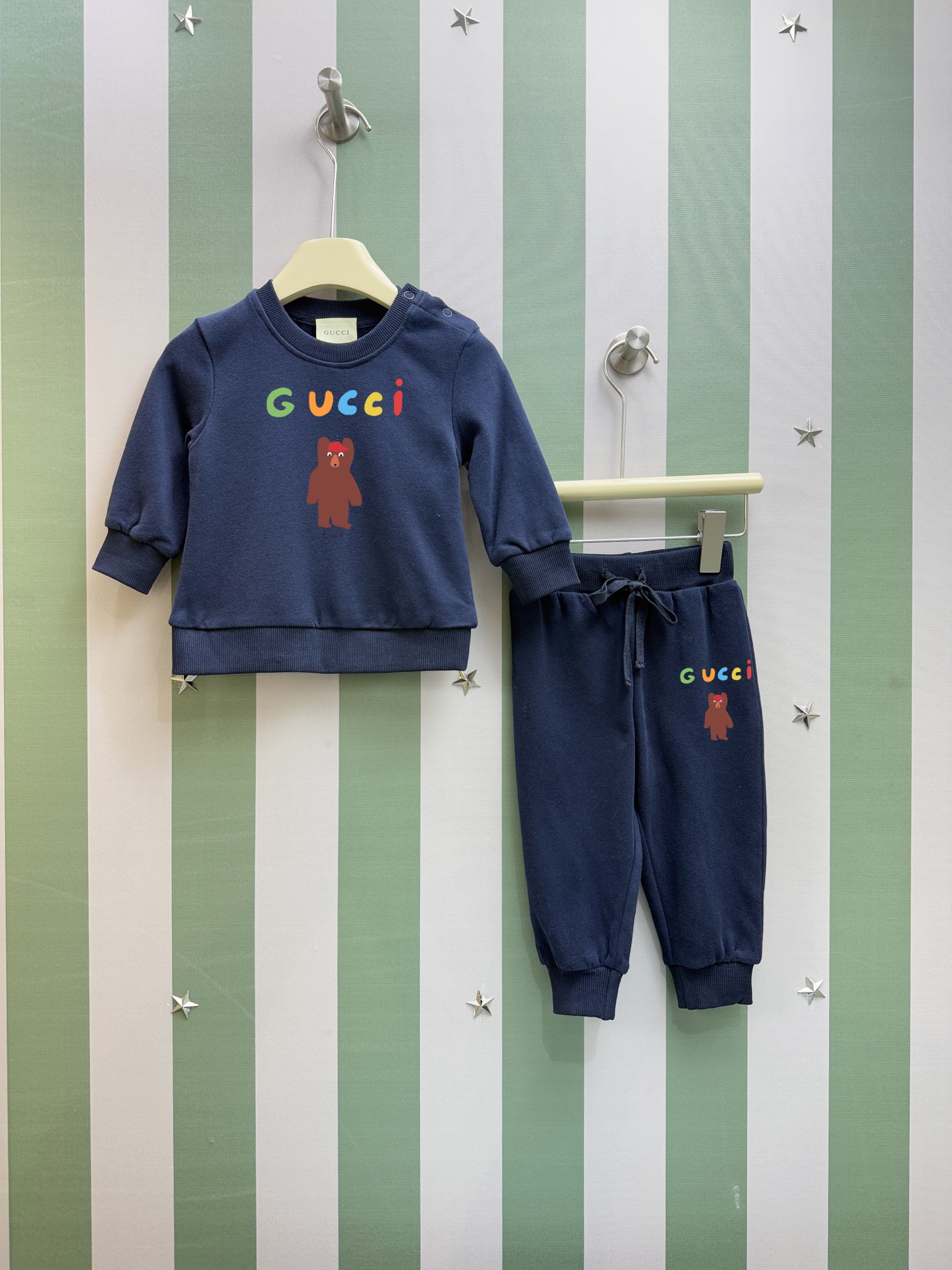 这款children's clothes是AAAAA 1:1 质量 (非常棒). 使用了和原版一模一样的材料. 商标部分也保持了和古奇/Gucci一样. 图片拍摄是实物children's clothes拍摄, 您所收到的实物保证和我们图片一模一样.