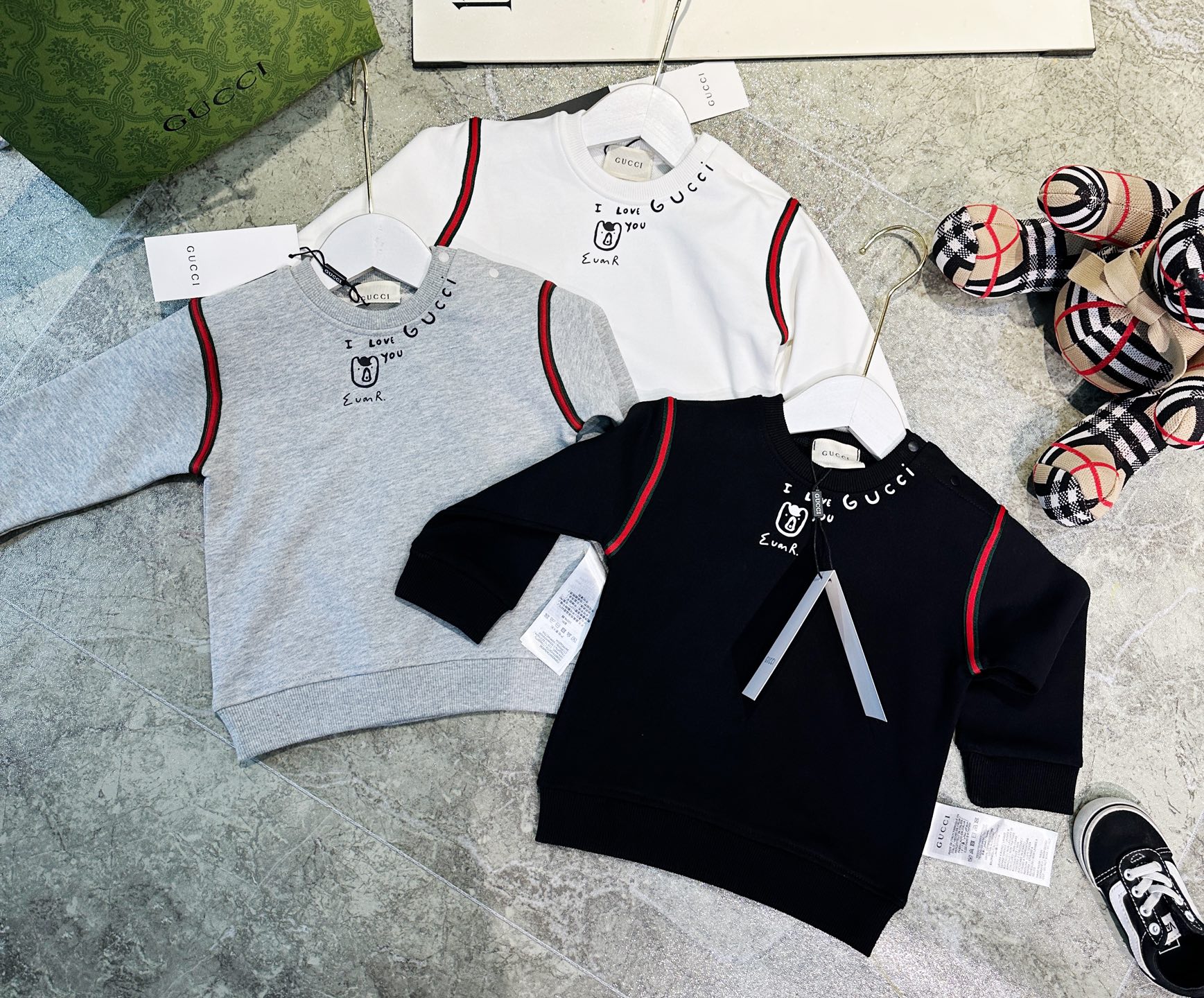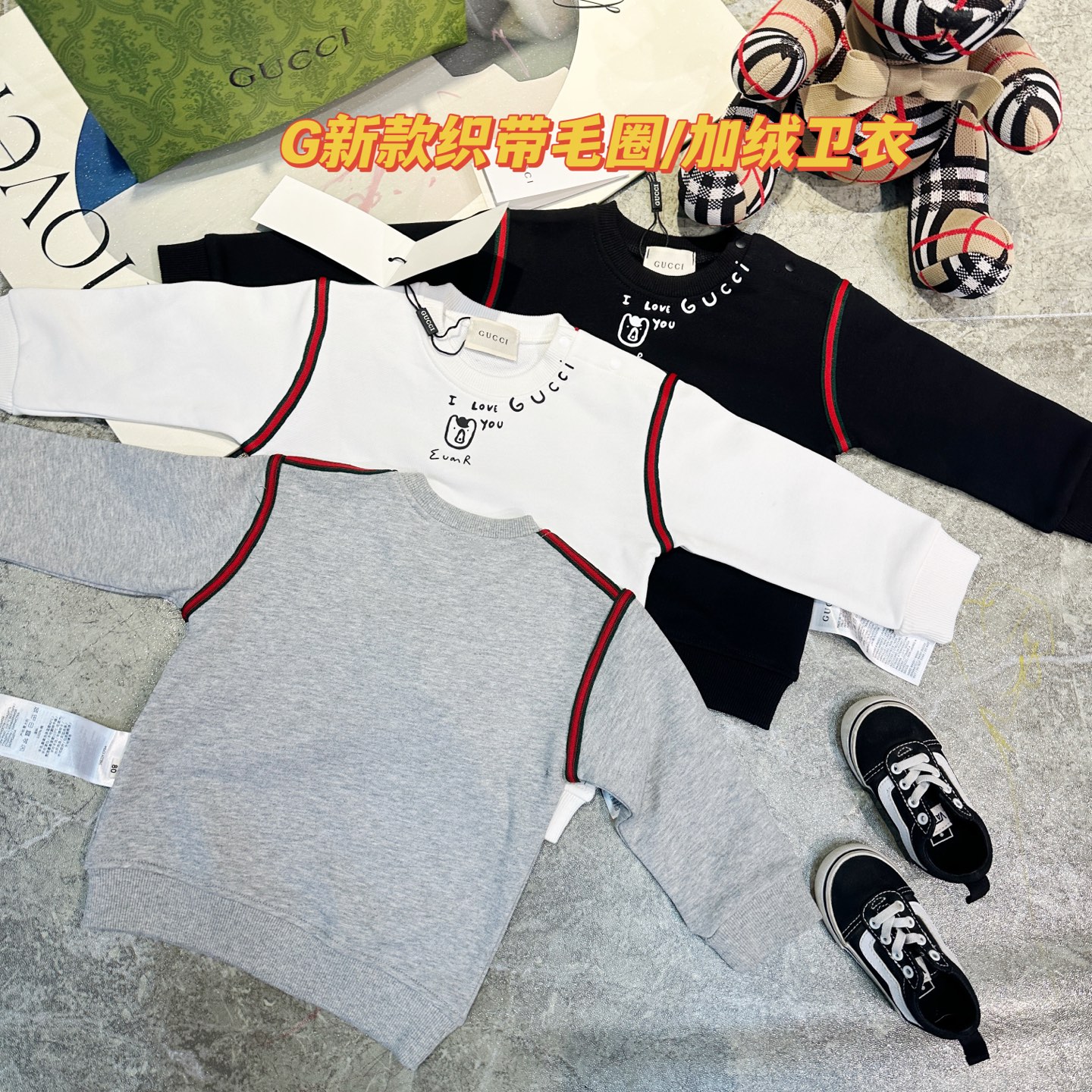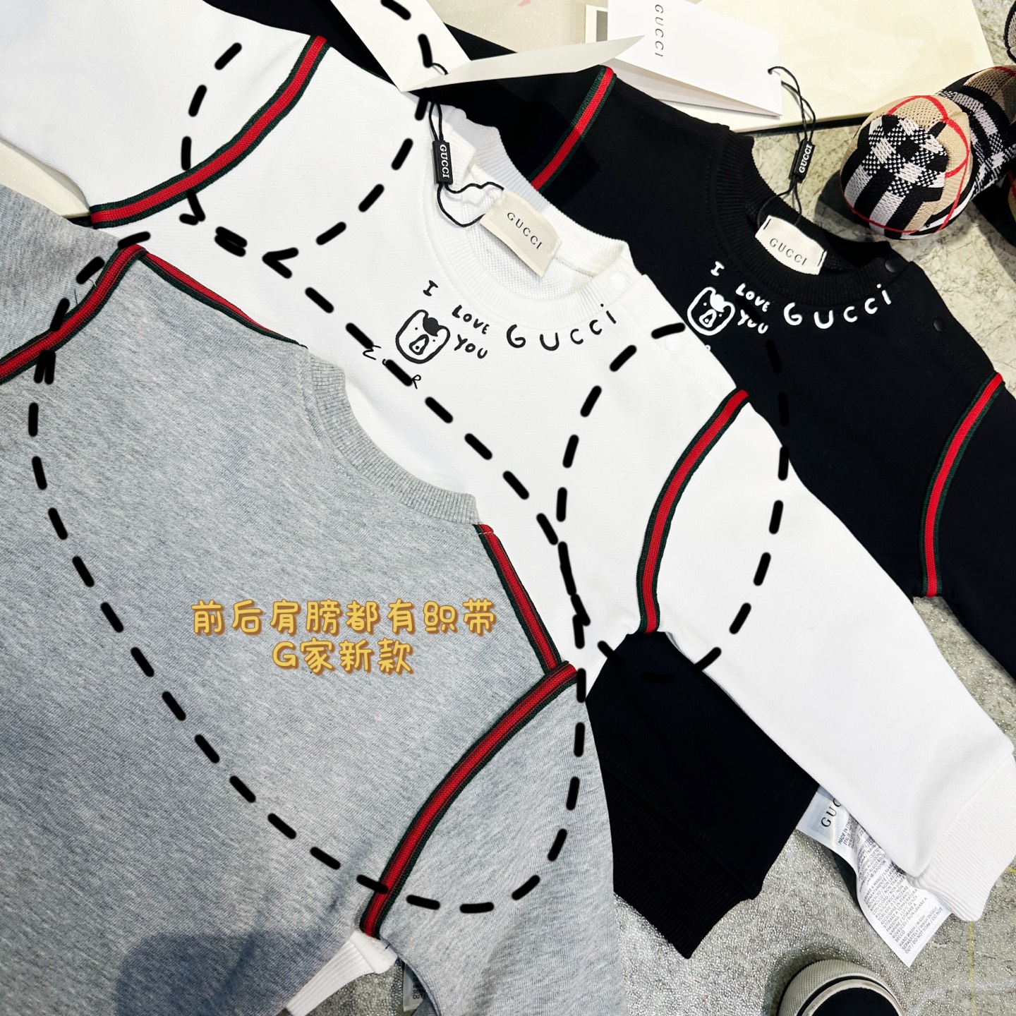 这款children's clothes是AAAAA 1:1 质量 (非常棒). 使用了和原版一模一样的材料. 商标部分也保持了和古奇/Gucci一样. 图片拍摄是实物children's clothes拍摄, 您所收到的实物保证和我们图片一模一样.