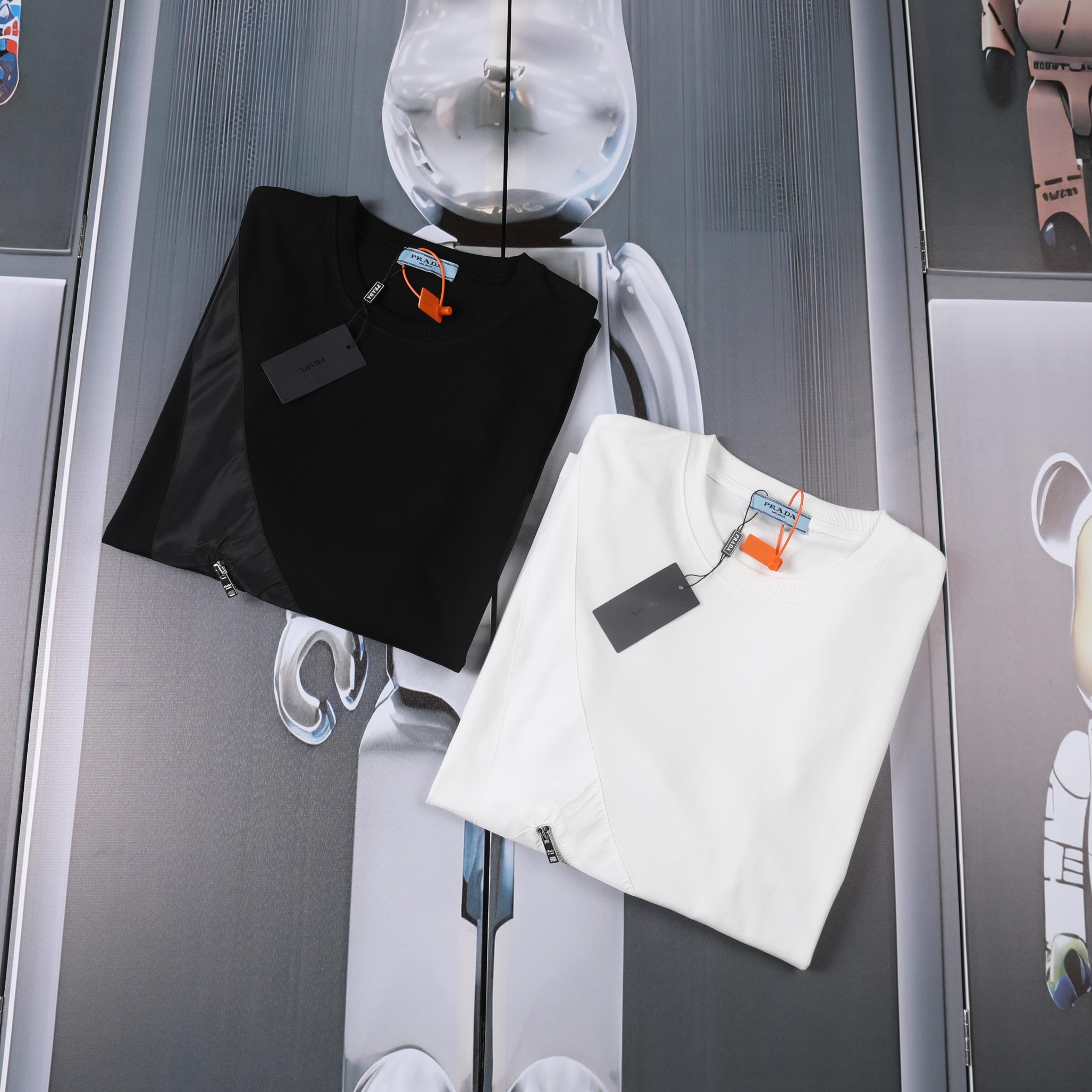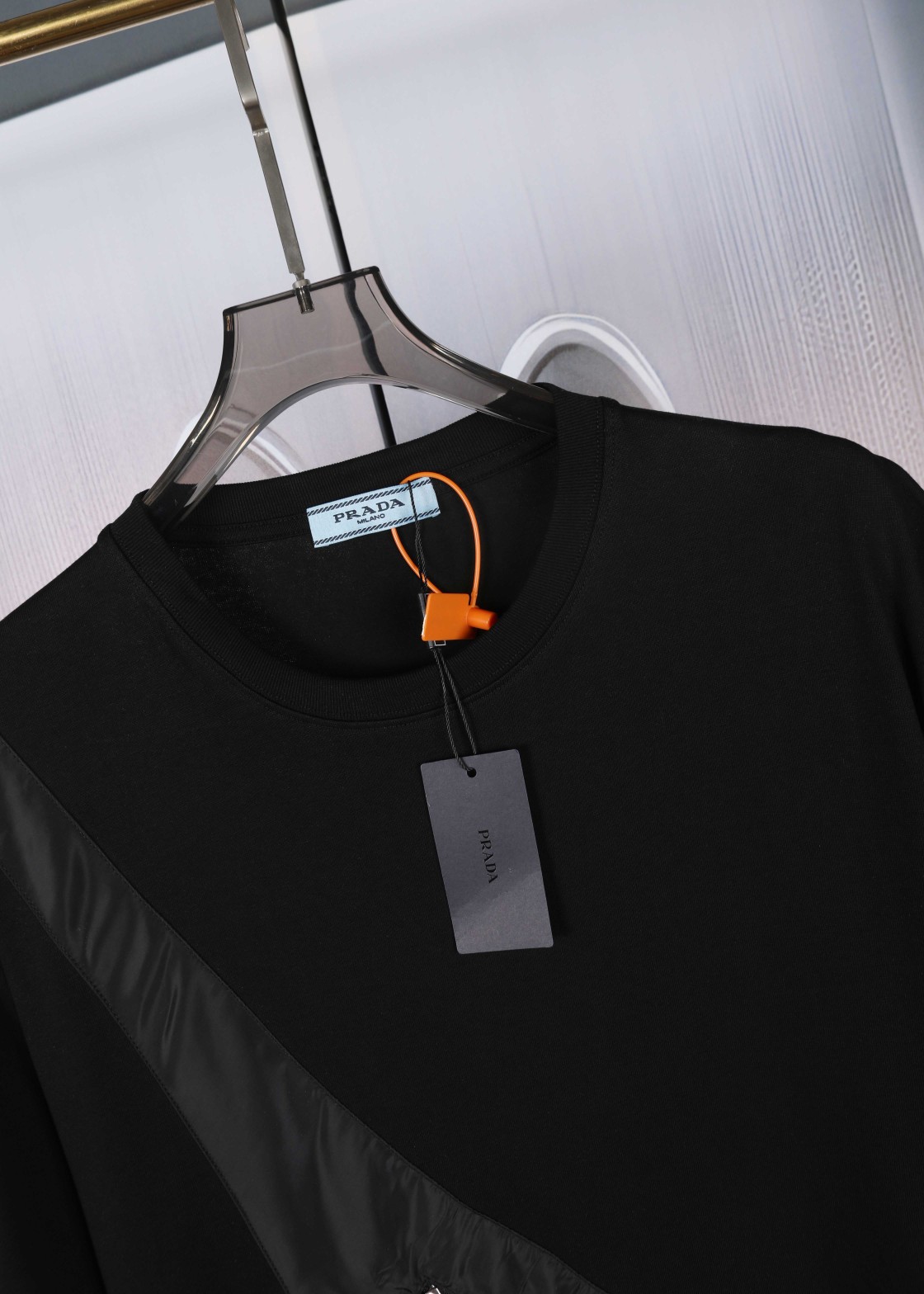 这款衣服是AAAAA 1:1 质量 (非常棒). 使用了和原版一模一样的材料. 商标部分也保持了和普拉达/Prada一样. 图片拍摄是实物衣服拍摄, 您所收到的实物保证和我们图片一模一样.