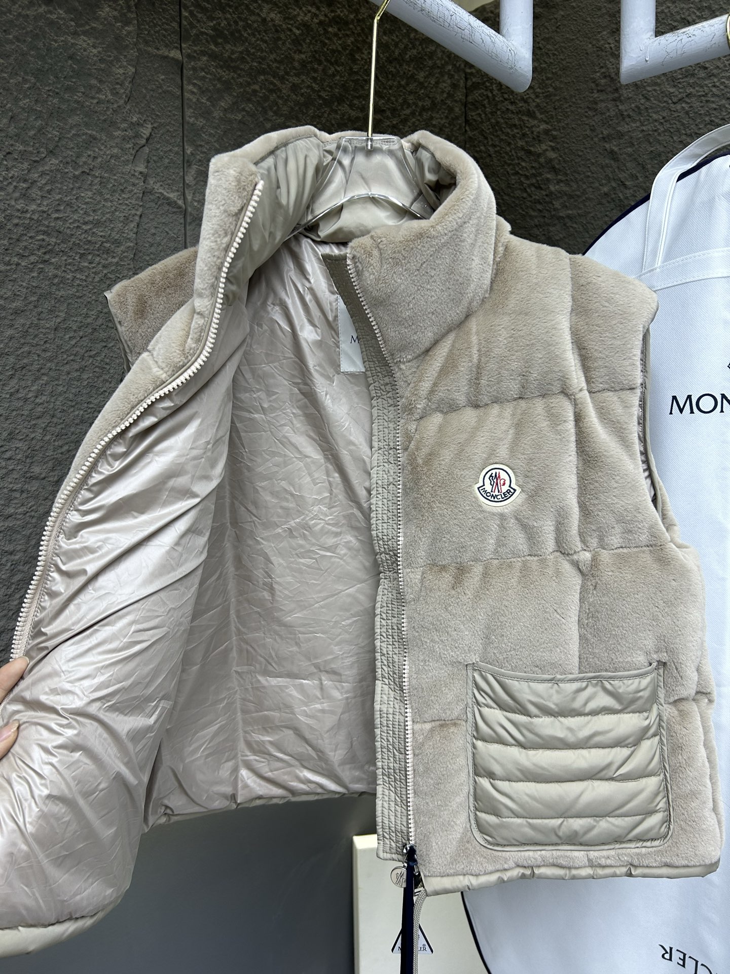这款衣服是AAAAA 1:1 质量 (非常棒). 使用了和原版一模一样的材料. 商标部分也保持了和盟可睐/moncler一样. 图片拍摄是实物衣服拍摄, 您所收到的实物保证和我们图片一模一样.