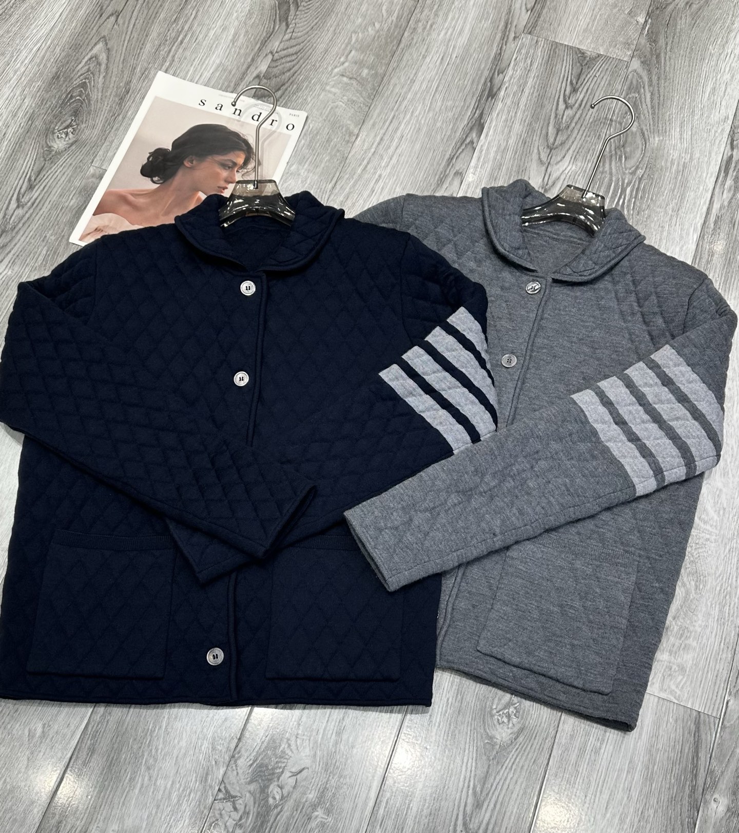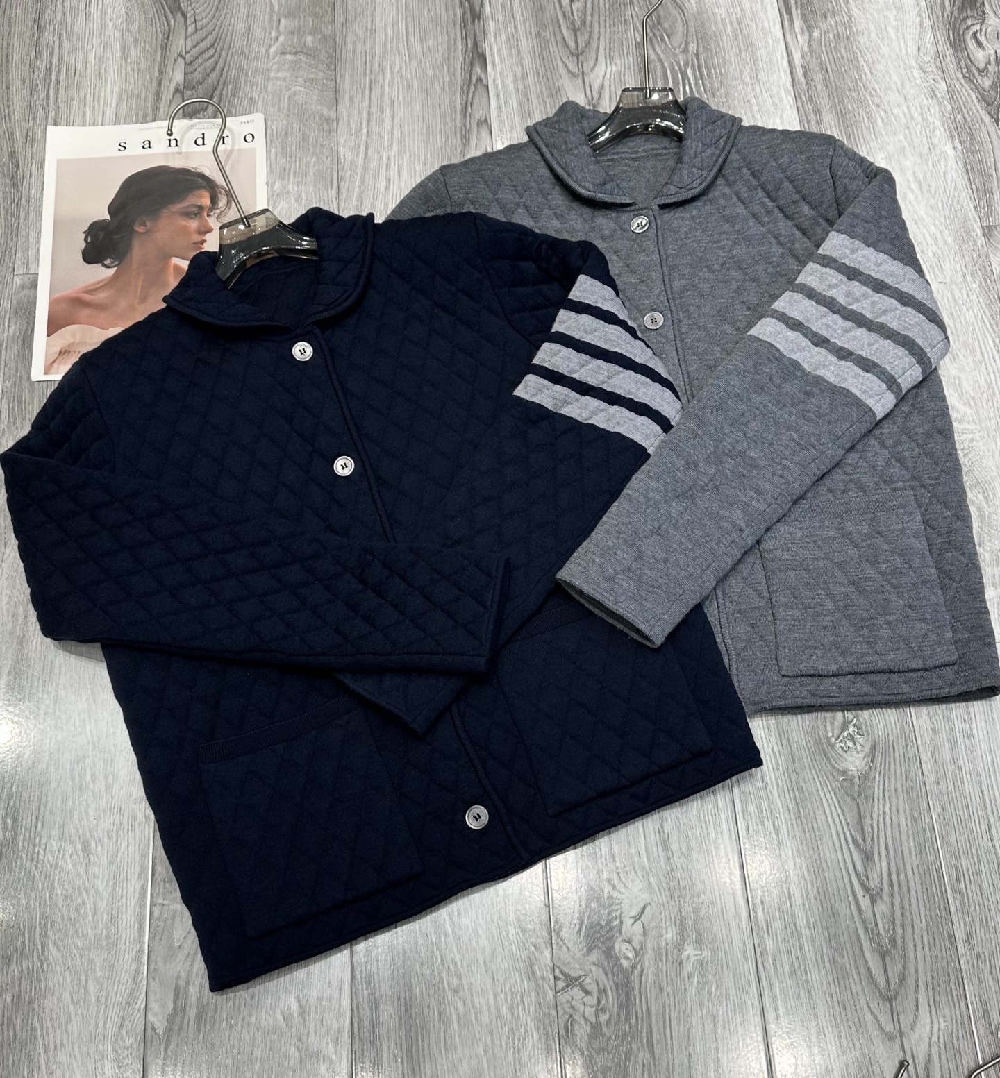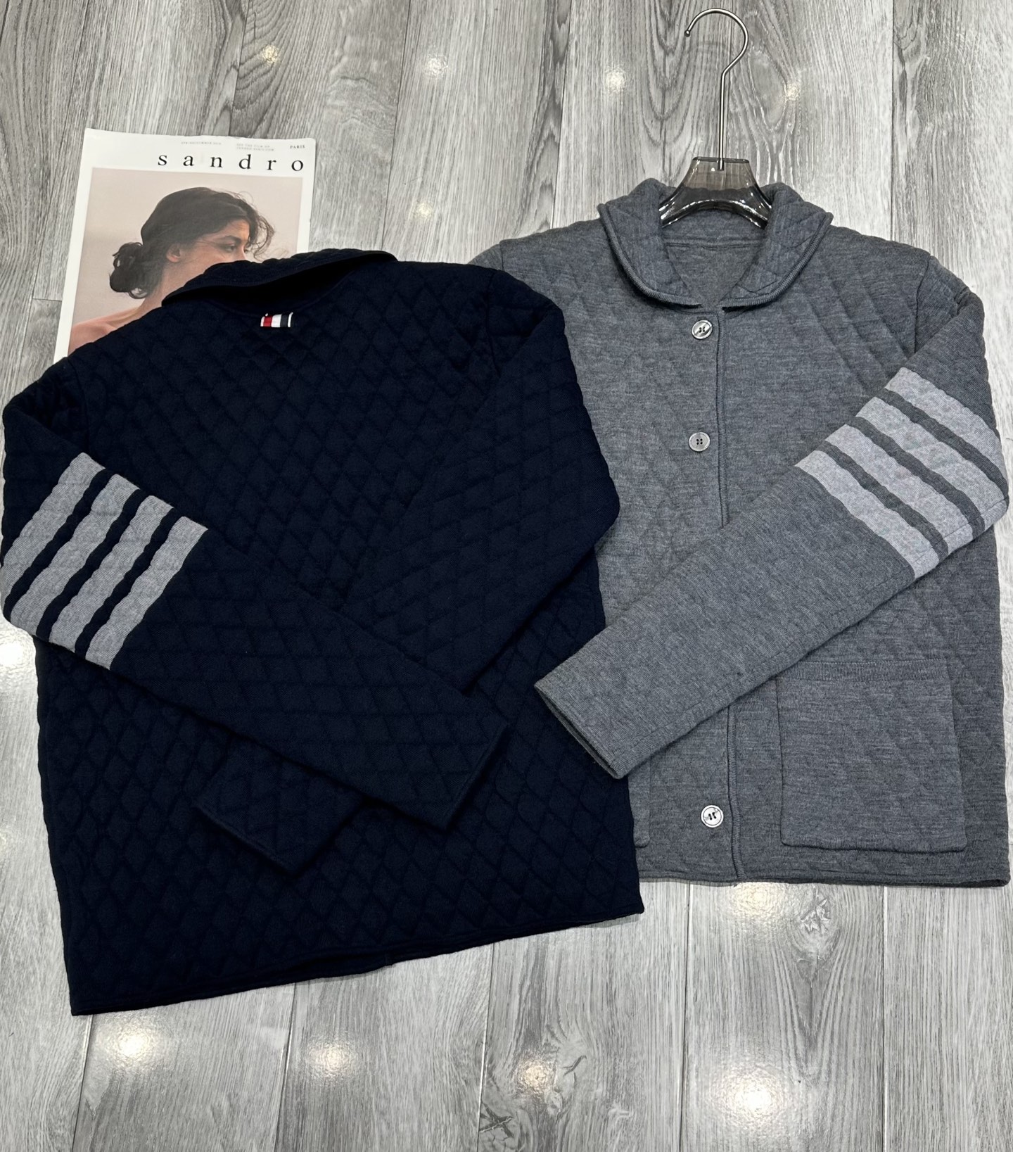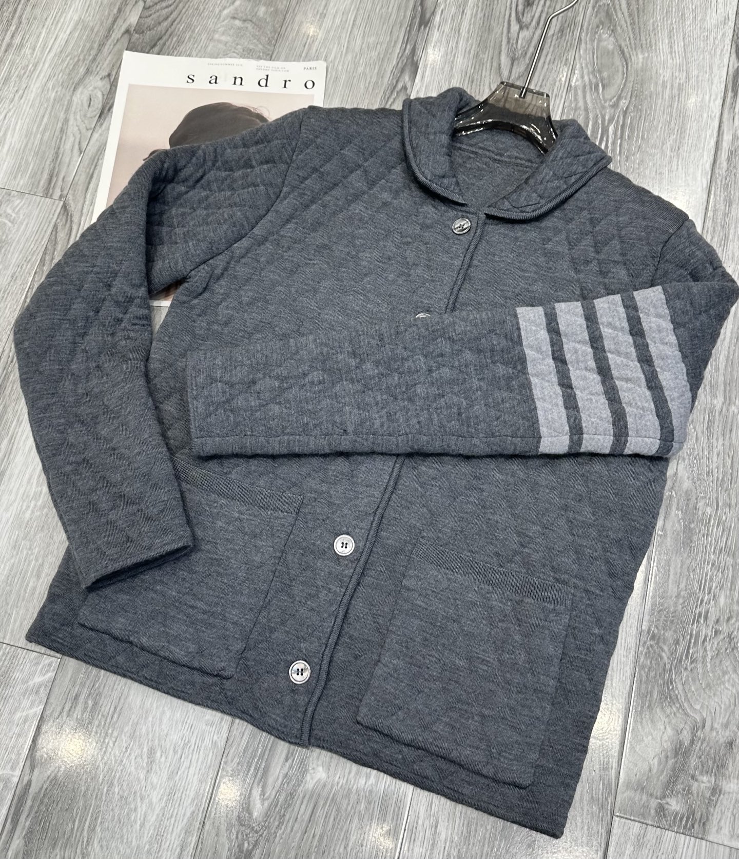 这款衣服是AAAAA 1:1 质量 (非常棒). 使用了和原版一模一样的材料. 商标部分也保持了和汤姆布朗/Thom Browne一样. 图片拍摄是实物衣服拍摄, 您所收到的实物保证和我们图片一模一样.