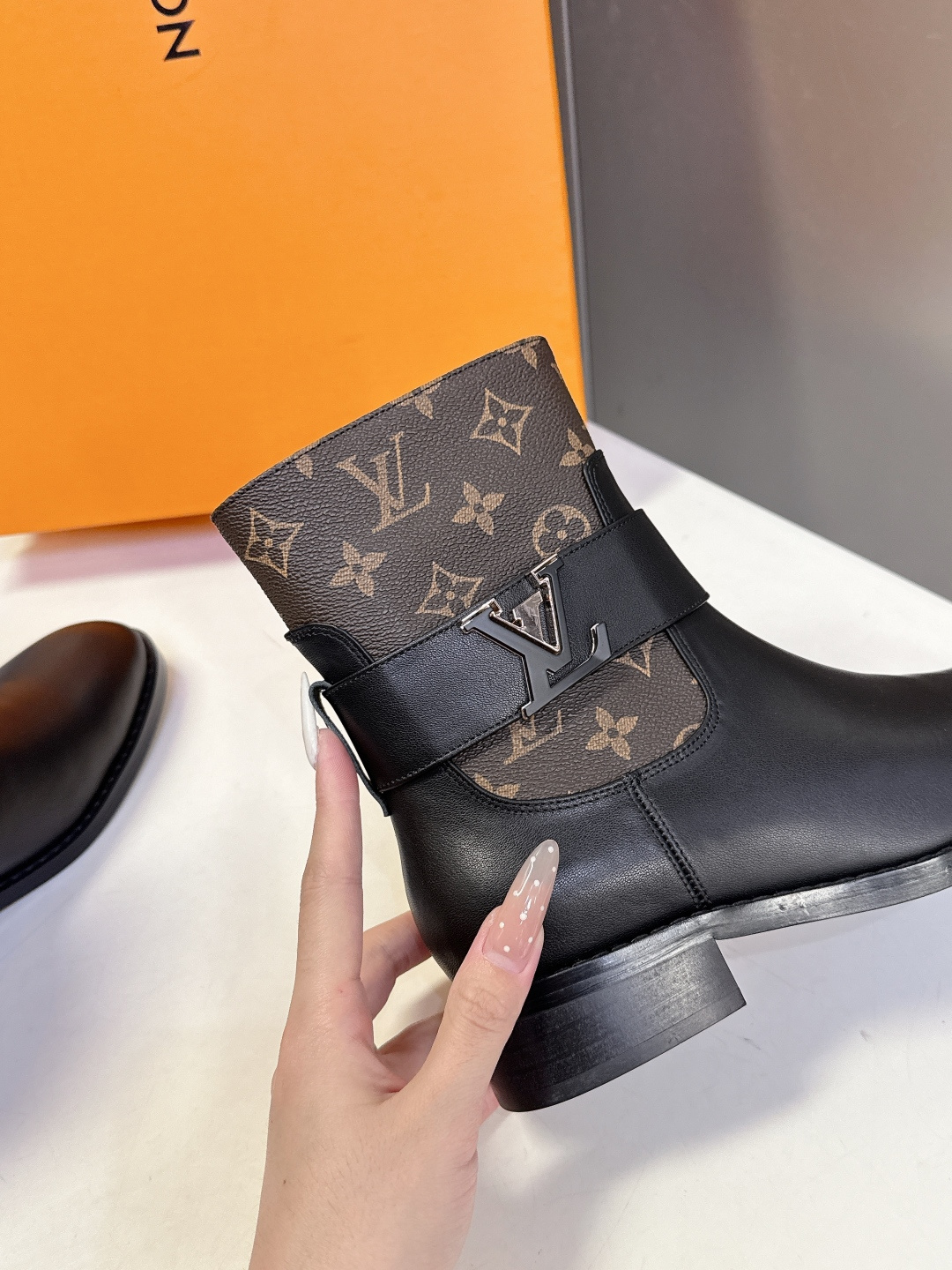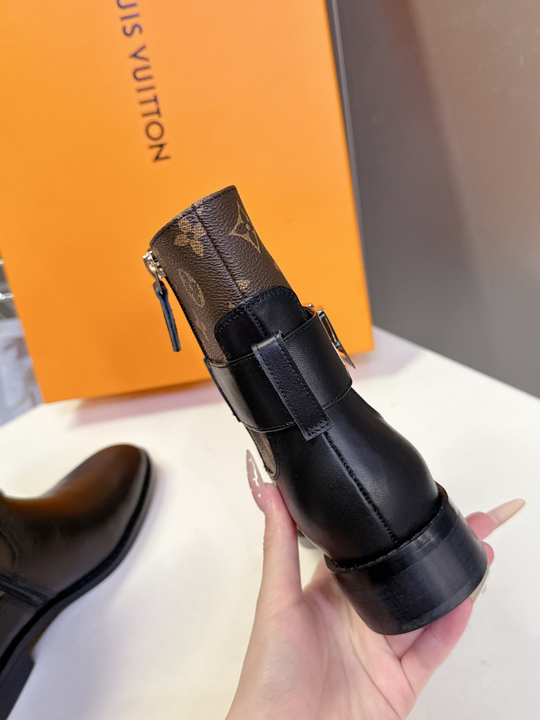 这款鞋子是AAAAA 1:1 质量 (非常棒). 使用了和原版一模一样的材料. 商标部分也保持了和路易威登/Louis Vuitton一样. 图片拍摄是实物鞋子拍摄, 您所收到的实物保证和我们图片一模一样.
