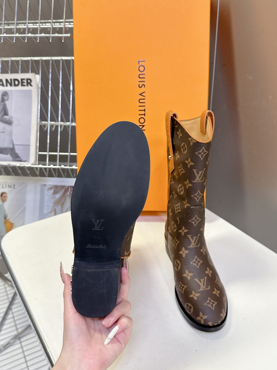 这款鞋子是AAAAA 1:1 质量 (非常棒). 使用了和原版一模一样的材料. 商标部分也保持了和路易威登/Louis Vuitton一样. 图片拍摄是实物鞋子拍摄, 您所收到的实物保证和我们图片一模一样.