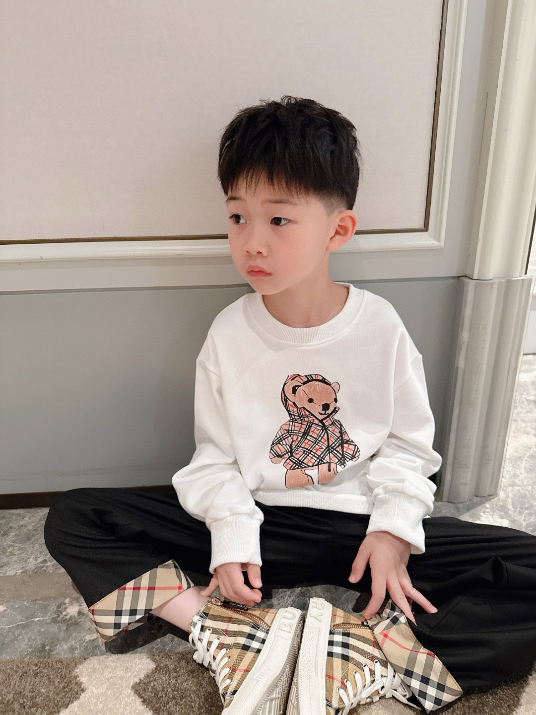 这款兒童鞋是AAAAA 1:1 质量 (非常棒). 使用了和原版一模一样的材料. 商标部分也保持了和巴宝莉/Burberry一样. 图片拍摄是实物兒童鞋拍摄, 您所收到的实物保证和我们图片一模一样.