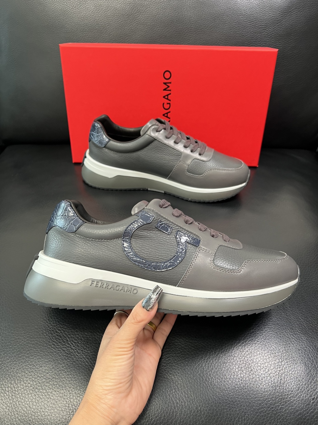 这款鞋子是AAAAA 1:1 质量 (非常棒). 使用了和原版一模一样的材料. 商标部分也保持了和菲拉格慕/Salvatore Ferragamo一样. 图片拍摄是实物鞋子拍摄, 您所收到的实物保证和我们图片一模一样.