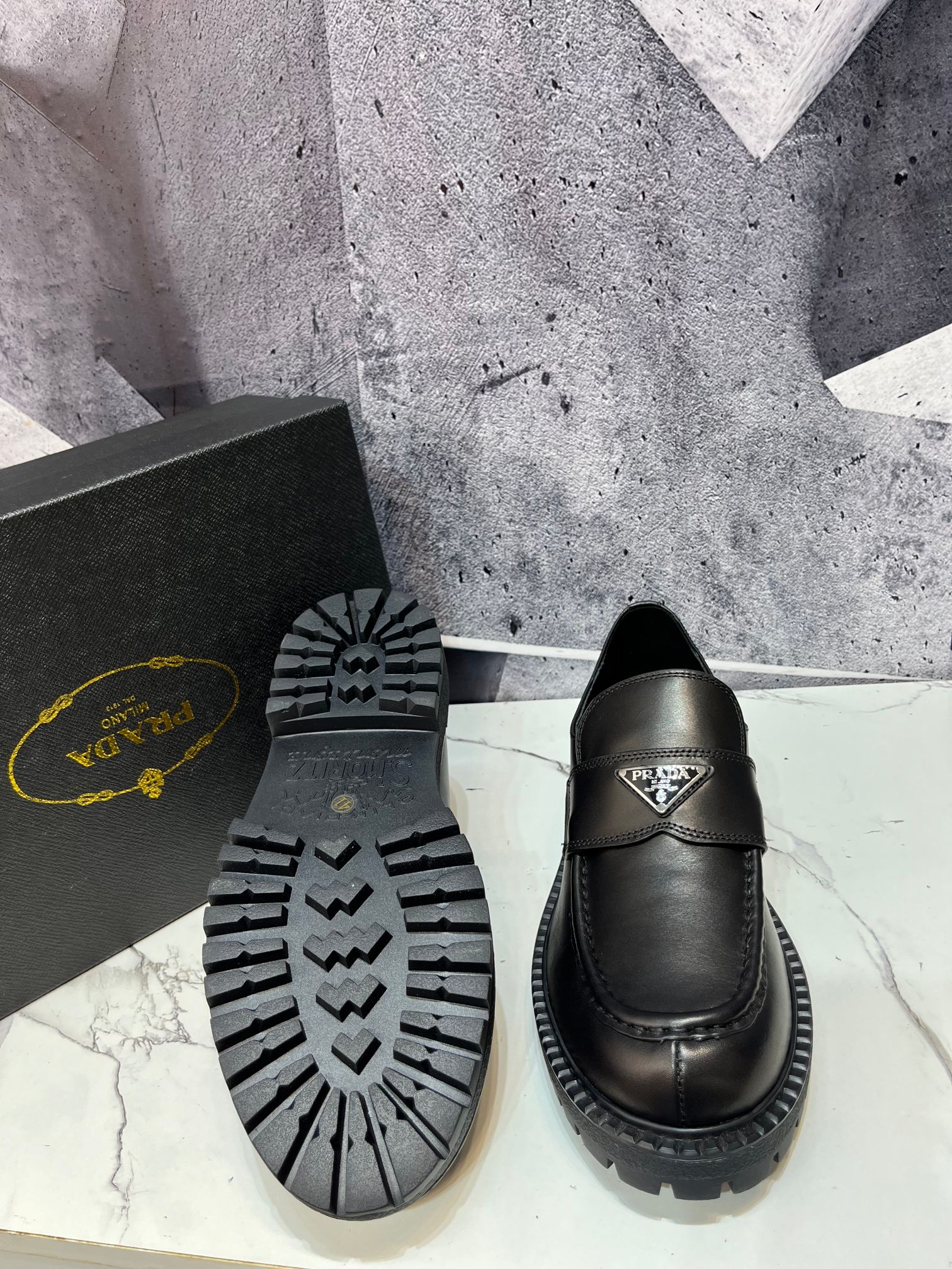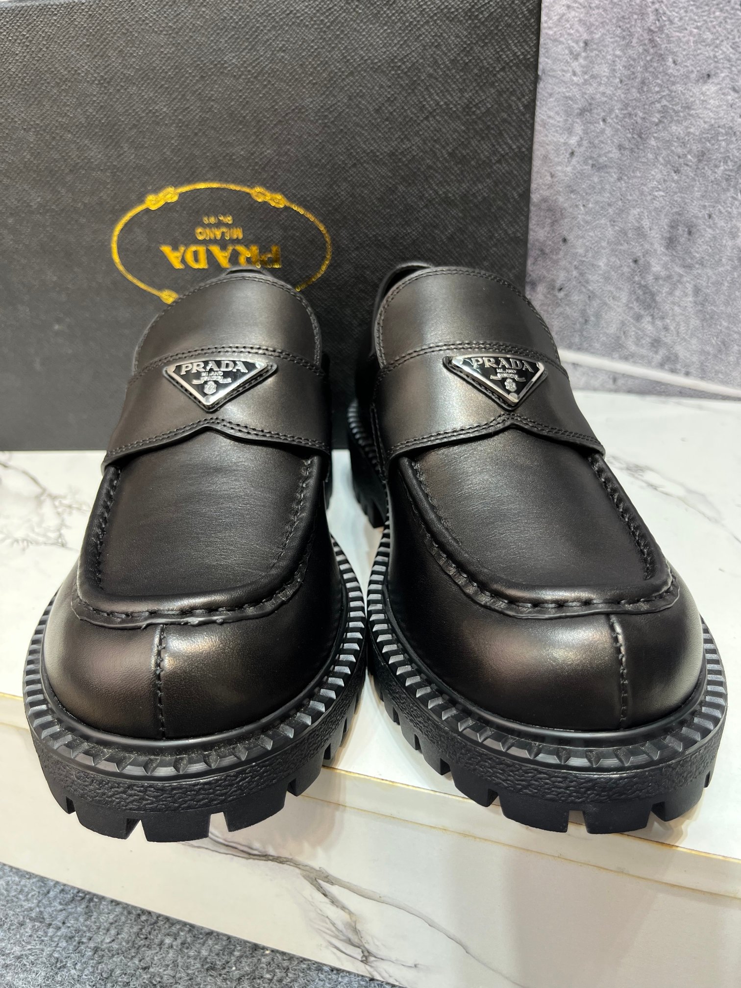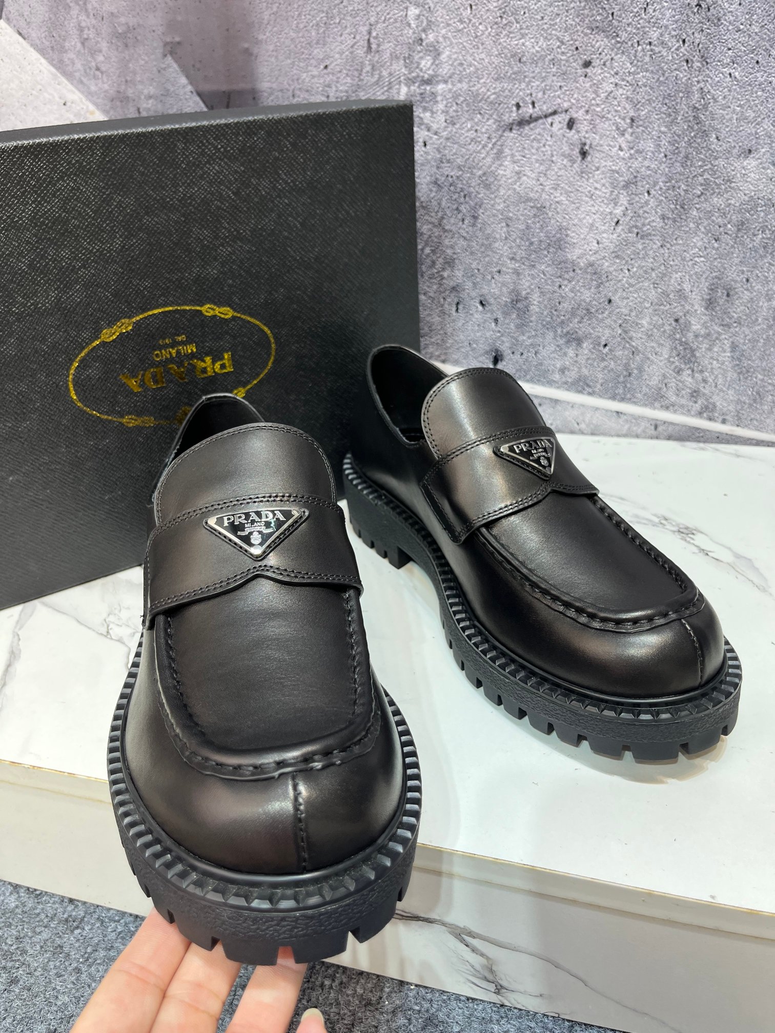 这款鞋子是AAAAA 1:1 质量 (非常棒). 使用了和原版一模一样的材料. 商标部分也保持了和普拉达/Prada一样. 图片拍摄是实物鞋子拍摄, 您所收到的实物保证和我们图片一模一样.