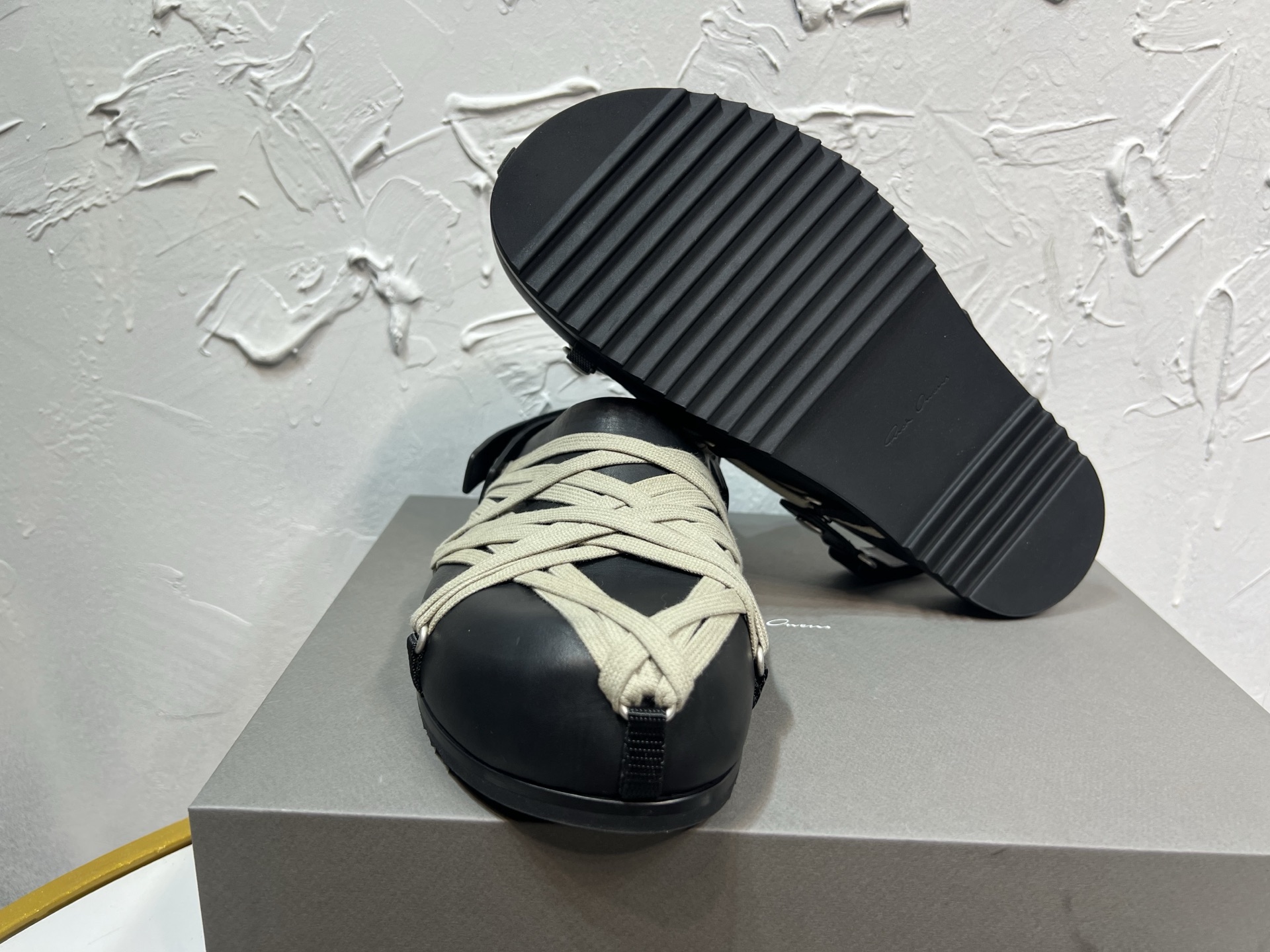 这款鞋子是AAAAA 1:1 质量 (非常棒). 使用了和原版一模一样的材料. 商标部分也保持了和里克·欧文斯/Rick Owens一样. 图片拍摄是实物鞋子拍摄, 您所收到的实物保证和我们图片一模一样.