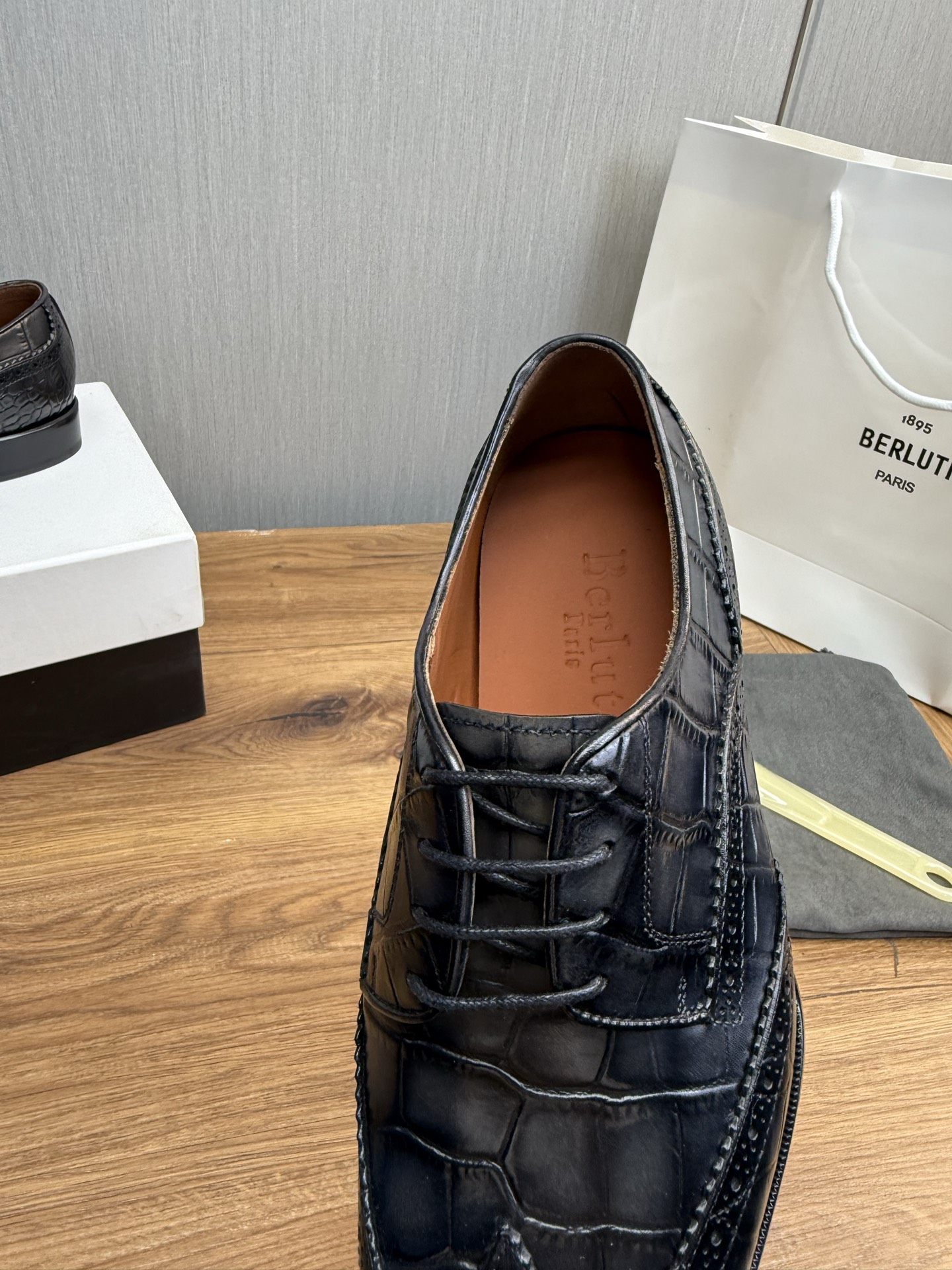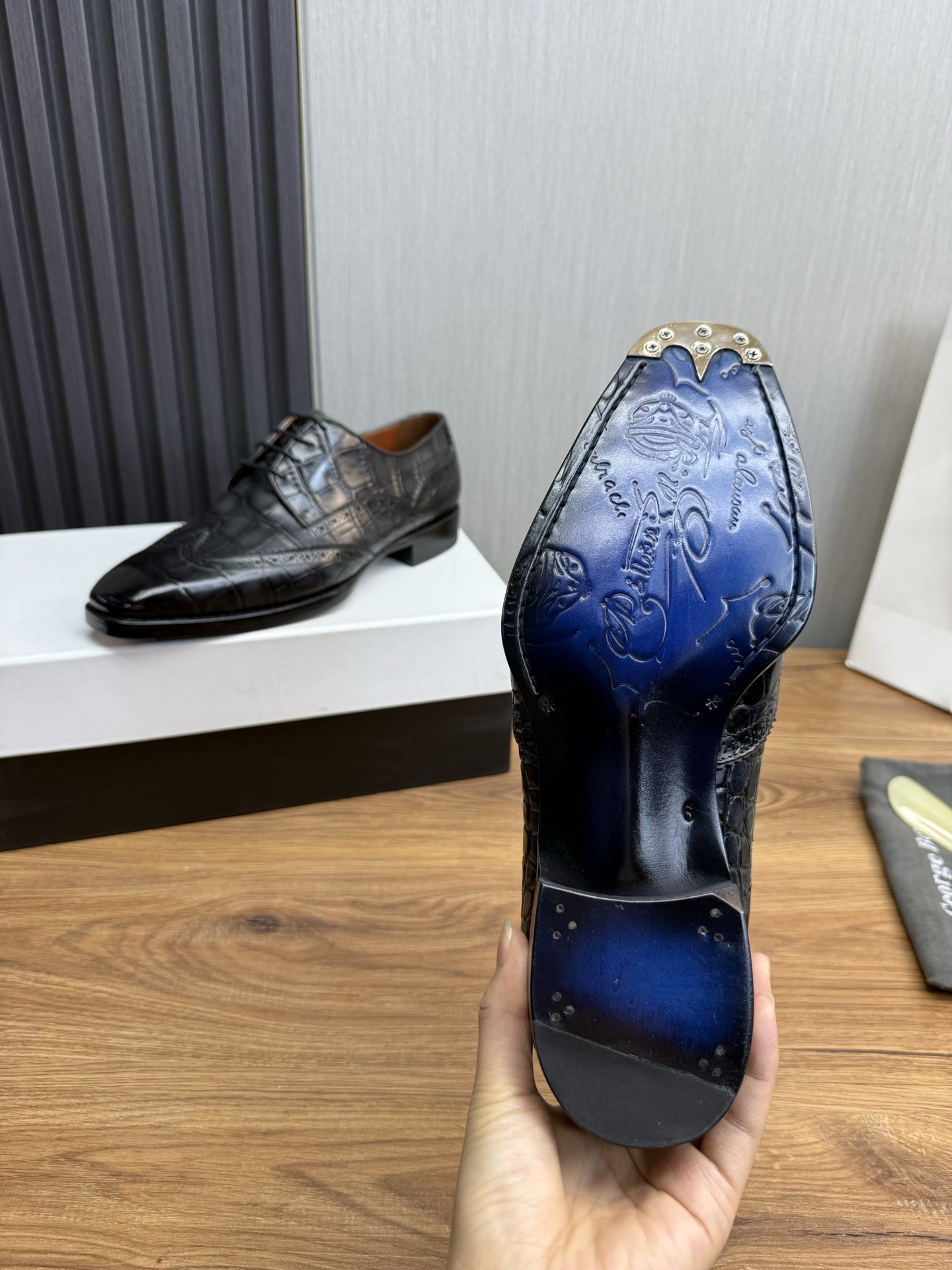 这款鞋子是AAAAA 1:1 质量 (非常棒). 使用了和原版一模一样的材料. 商标部分也保持了和Berluti一样. 图片拍摄是实物鞋子拍摄, 您所收到的实物保证和我们图片一模一样.