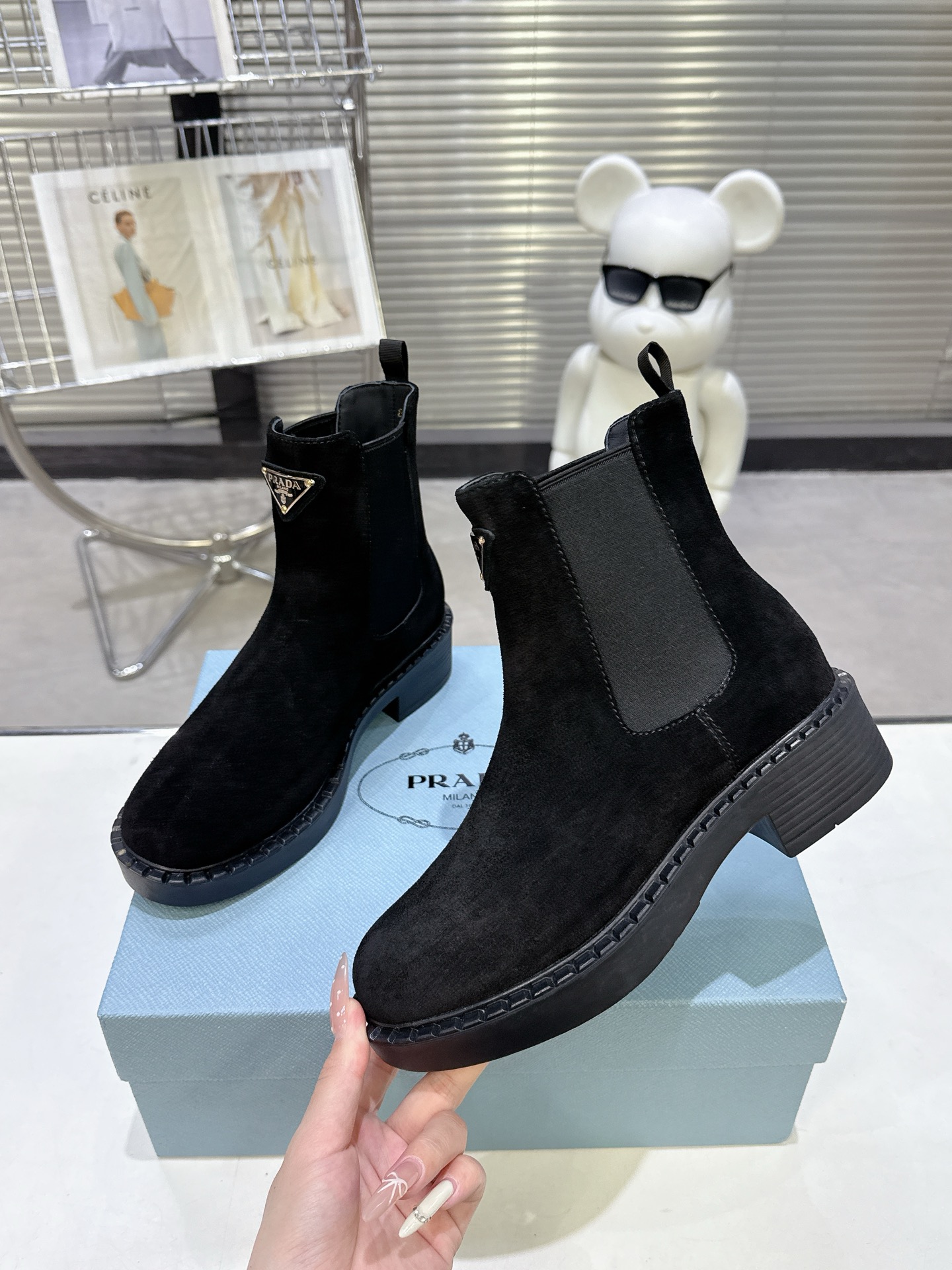 这款鞋子是AAAAA 1:1 质量 (非常棒). 使用了和原版一模一样的材料. 商标部分也保持了和普拉达/Prada一样. 图片拍摄是实物鞋子拍摄, 您所收到的实物保证和我们图片一模一样.