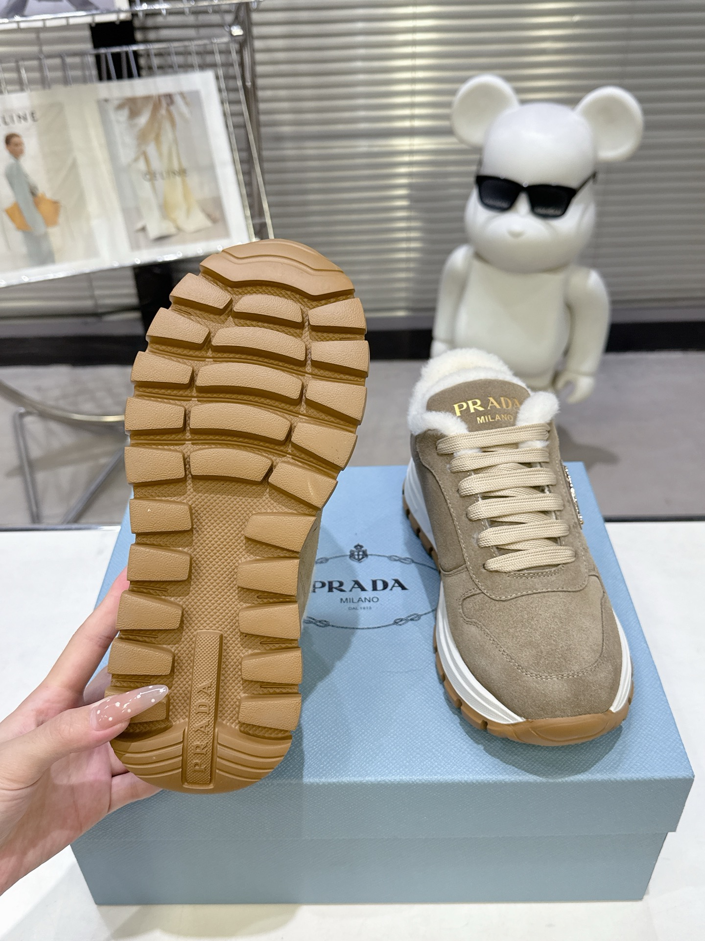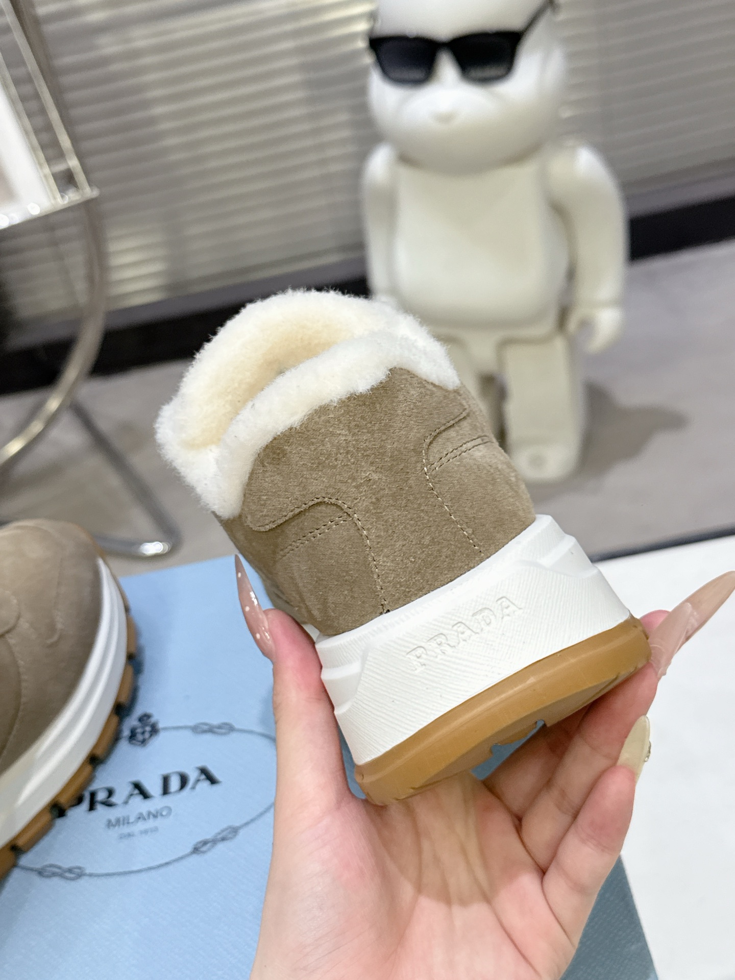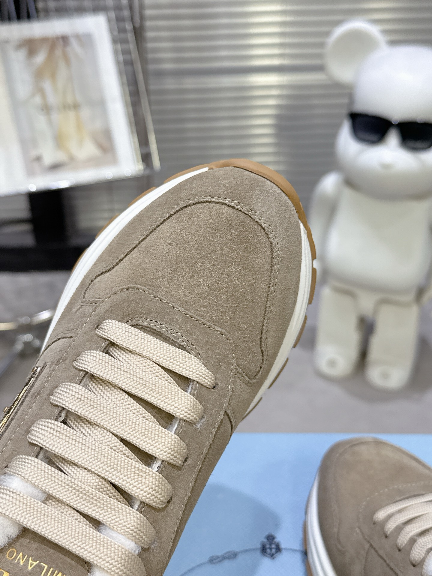 这款鞋子是AAAAA 1:1 质量 (非常棒). 使用了和原版一模一样的材料. 商标部分也保持了和普拉达/Prada一样. 图片拍摄是实物鞋子拍摄, 您所收到的实物保证和我们图片一模一样.
