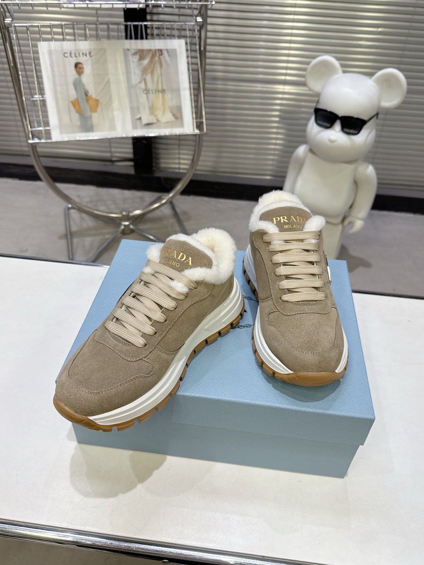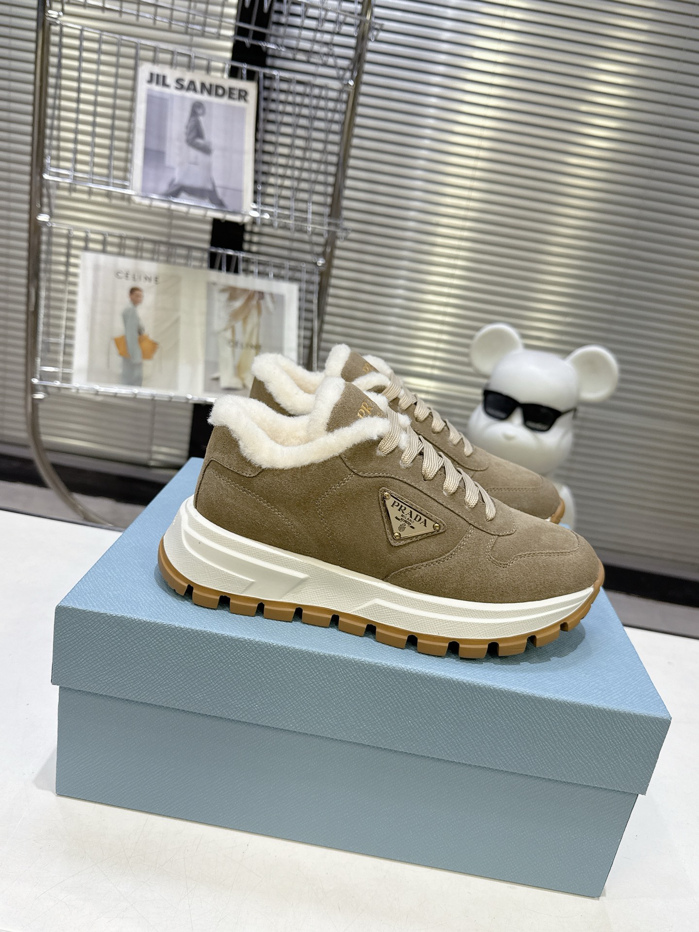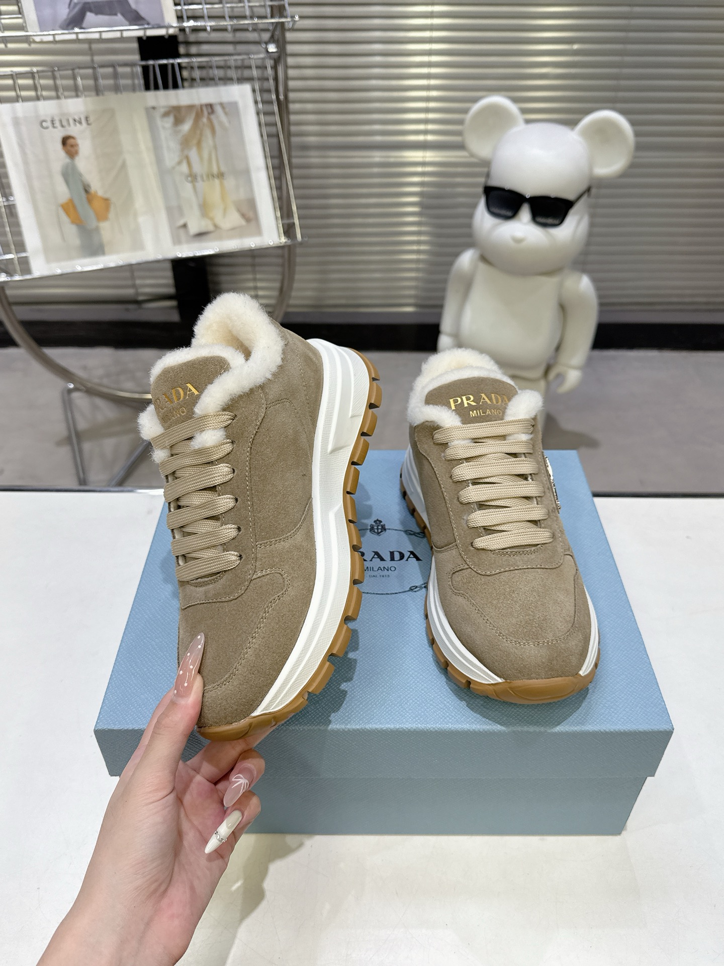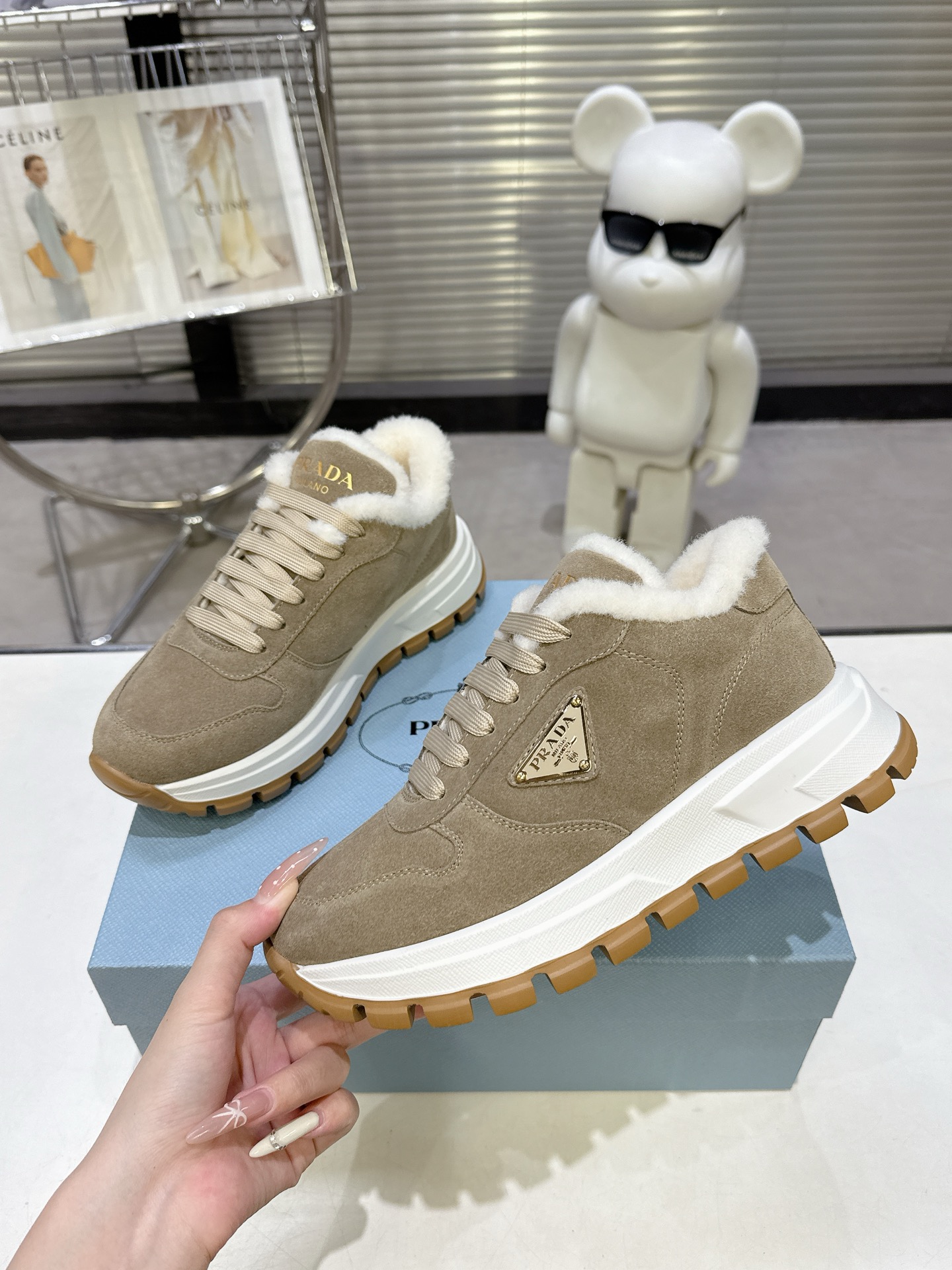 这款鞋子是AAAAA 1:1 质量 (非常棒). 使用了和原版一模一样的材料. 商标部分也保持了和普拉达/Prada一样. 图片拍摄是实物鞋子拍摄, 您所收到的实物保证和我们图片一模一样.
