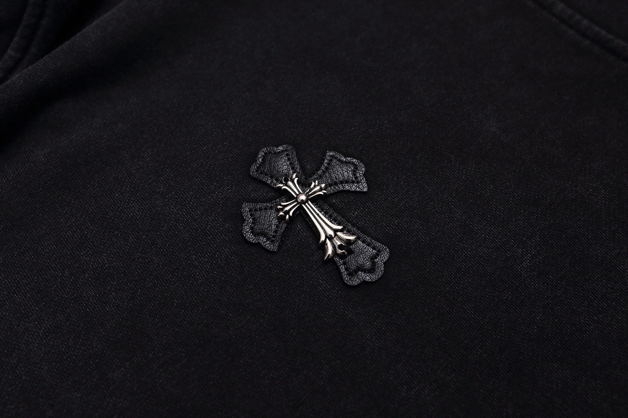 这款衣服是AAAAA 1:1 质量 (非常棒). 使用了和原版一模一样的材料. 商标部分也保持了和克罗心/Chrome Hearts一样. 图片拍摄是实物衣服拍摄, 您所收到的实物保证和我们图片一模一样.