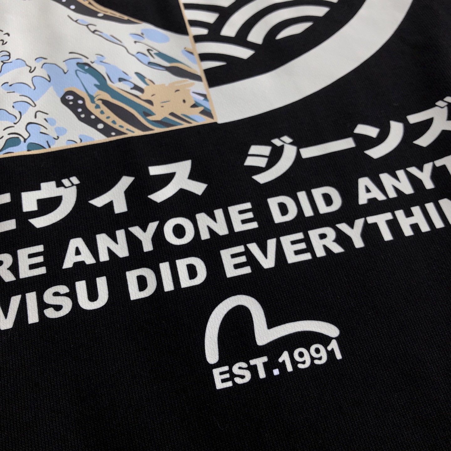 这款衣服是AAAAA 1:1 质量 (非常棒). 使用了和原版一模一样的材料. 商标部分也保持了和EVISU一样. 图片拍摄是实物衣服拍摄, 您所收到的实物保证和我们图片一模一样.