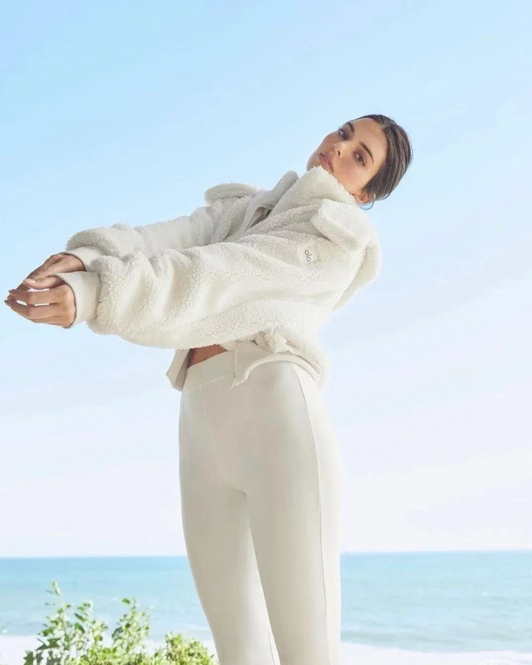 这款衣服是AAAAA 1:1 质量 (非常棒). 使用了和原版一模一样的材料. 商标部分也保持了和Alo Yoga一样. 图片拍摄是实物衣服拍摄, 您所收到的实物保证和我们图片一模一样.