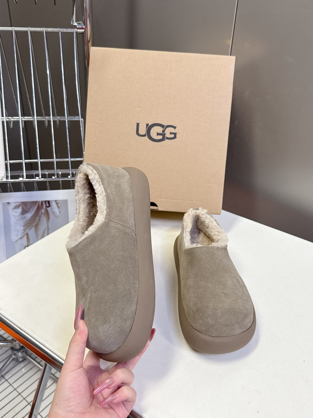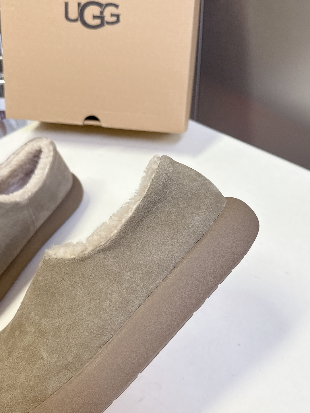 这款鞋子是AAAAA 1:1 质量 (非常棒). 使用了和原版一模一样的材料. 商标部分也保持了和UGG雪地靴一样. 图片拍摄是实物鞋子拍摄, 您所收到的实物保证和我们图片一模一样.