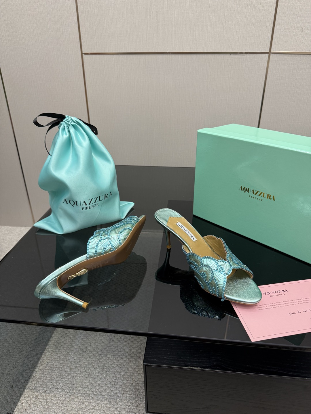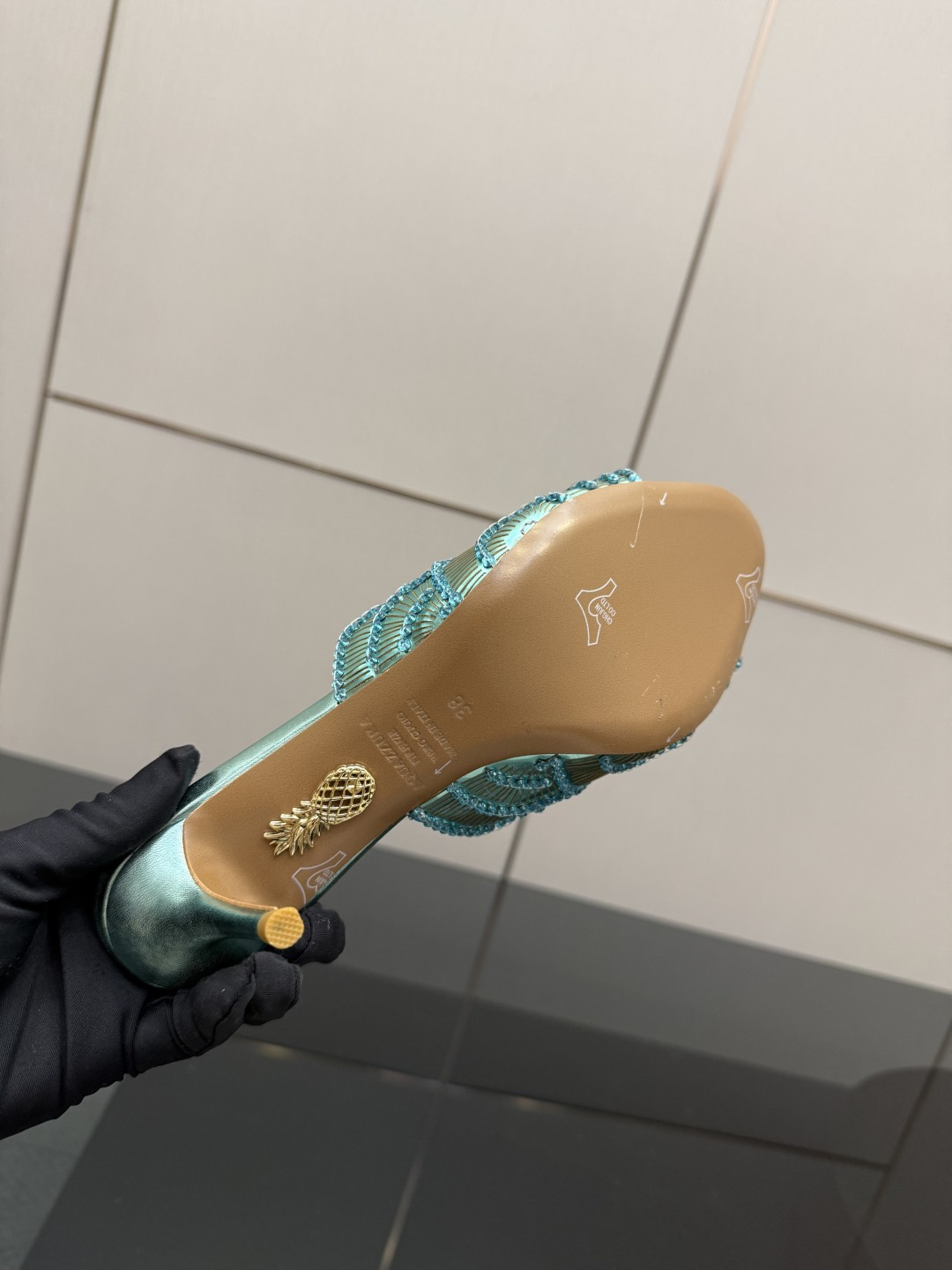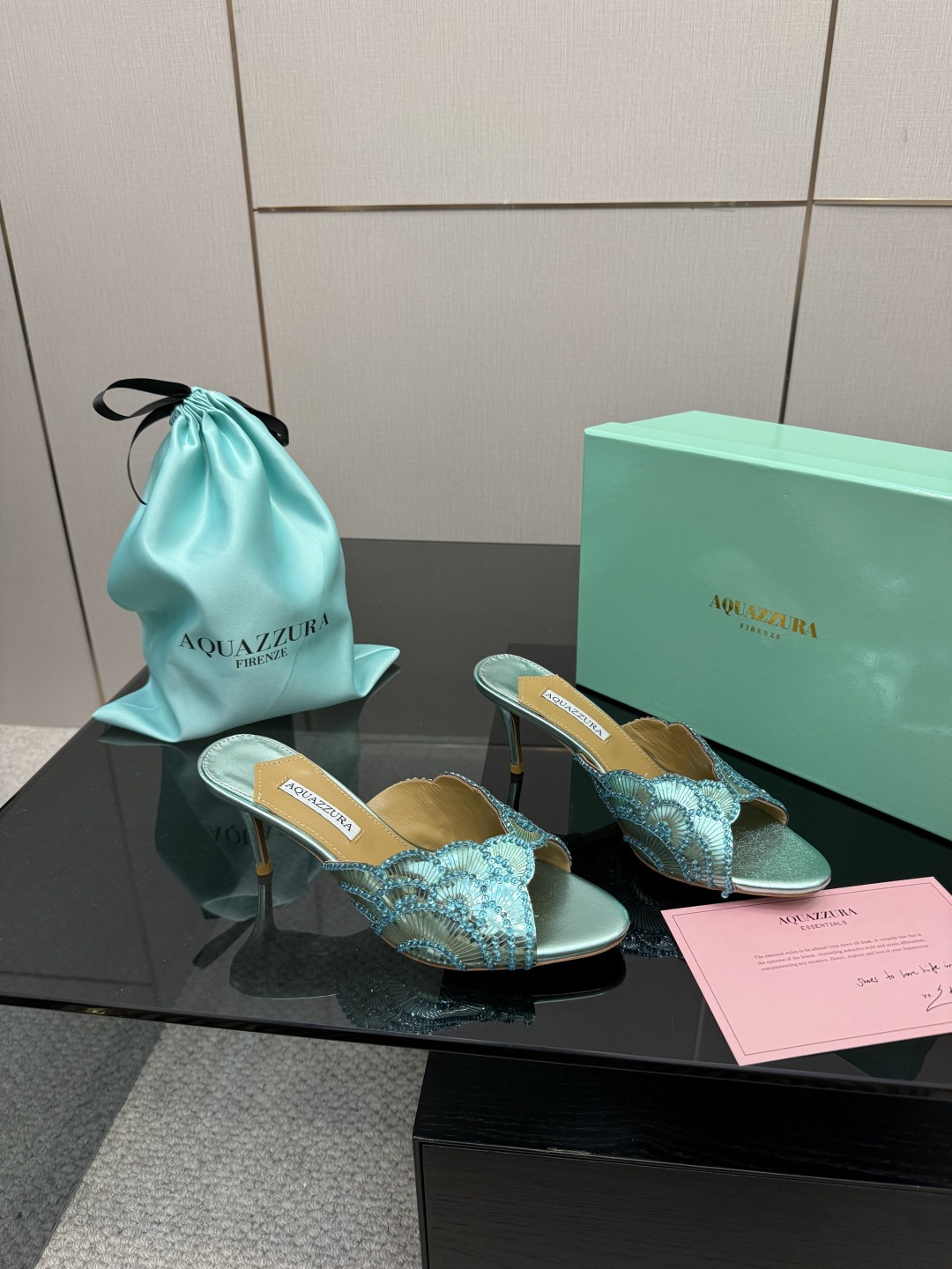 这款鞋子是AAAAA 1:1 质量 (非常棒). 使用了和原版一模一样的材料. 商标部分也保持了和Aquazzura一样. 图片拍摄是实物鞋子拍摄, 您所收到的实物保证和我们图片一模一样.