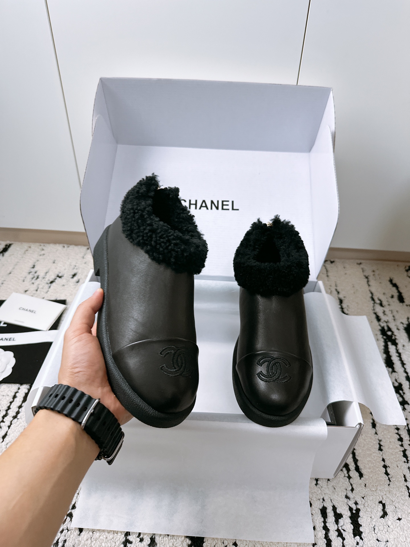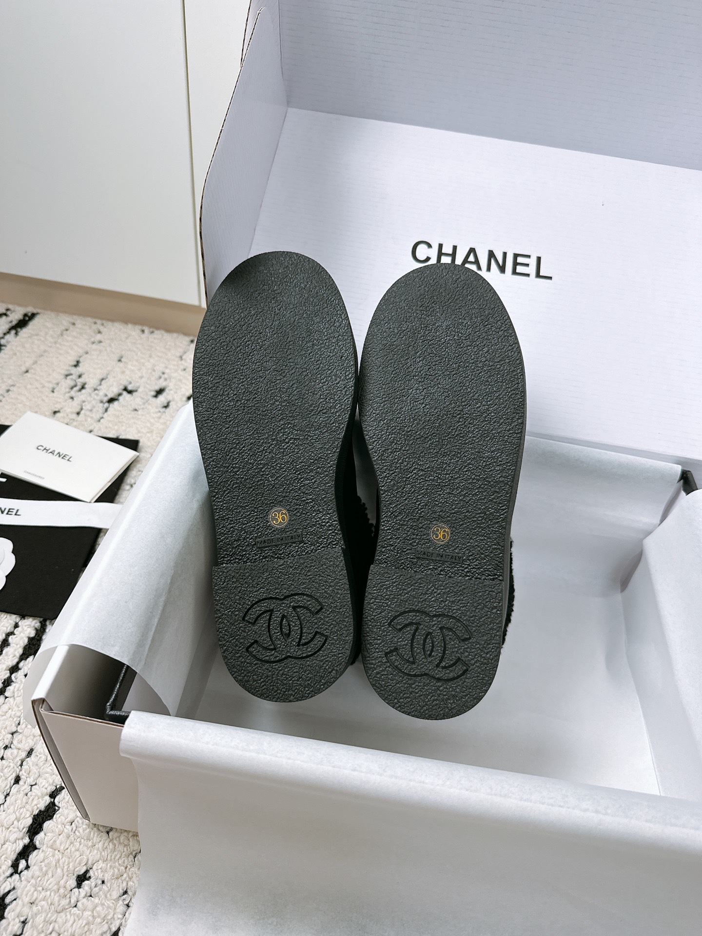 这款鞋子是AAAAA 1:1 质量 (非常棒). 使用了和原版一模一样的材料. 商标部分也保持了和香奈儿/Chanel一样. 图片拍摄是实物鞋子拍摄, 您所收到的实物保证和我们图片一模一样.