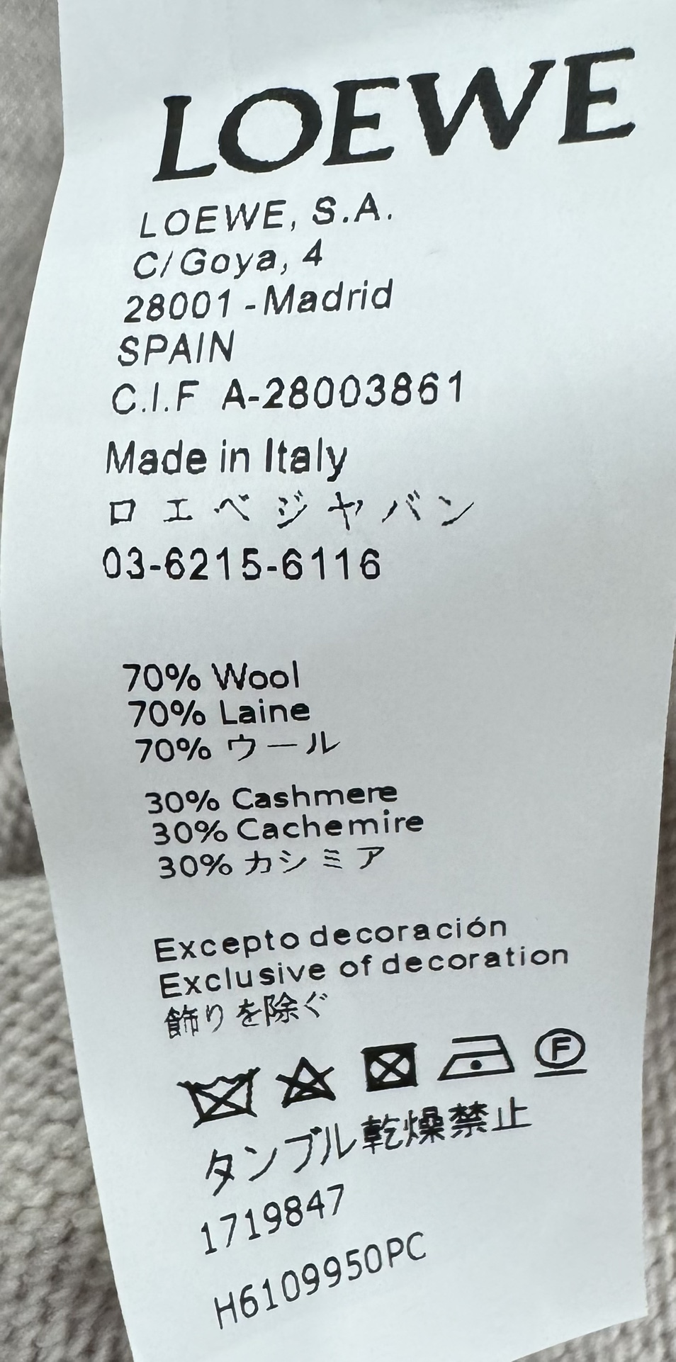 这款衣服是AAAAA 1:1 质量 (非常棒). 使用了和原版一模一样的材料. 商标部分也保持了和罗意威/Loewe一样. 图片拍摄是实物衣服拍摄, 您所收到的实物保证和我们图片一模一样.