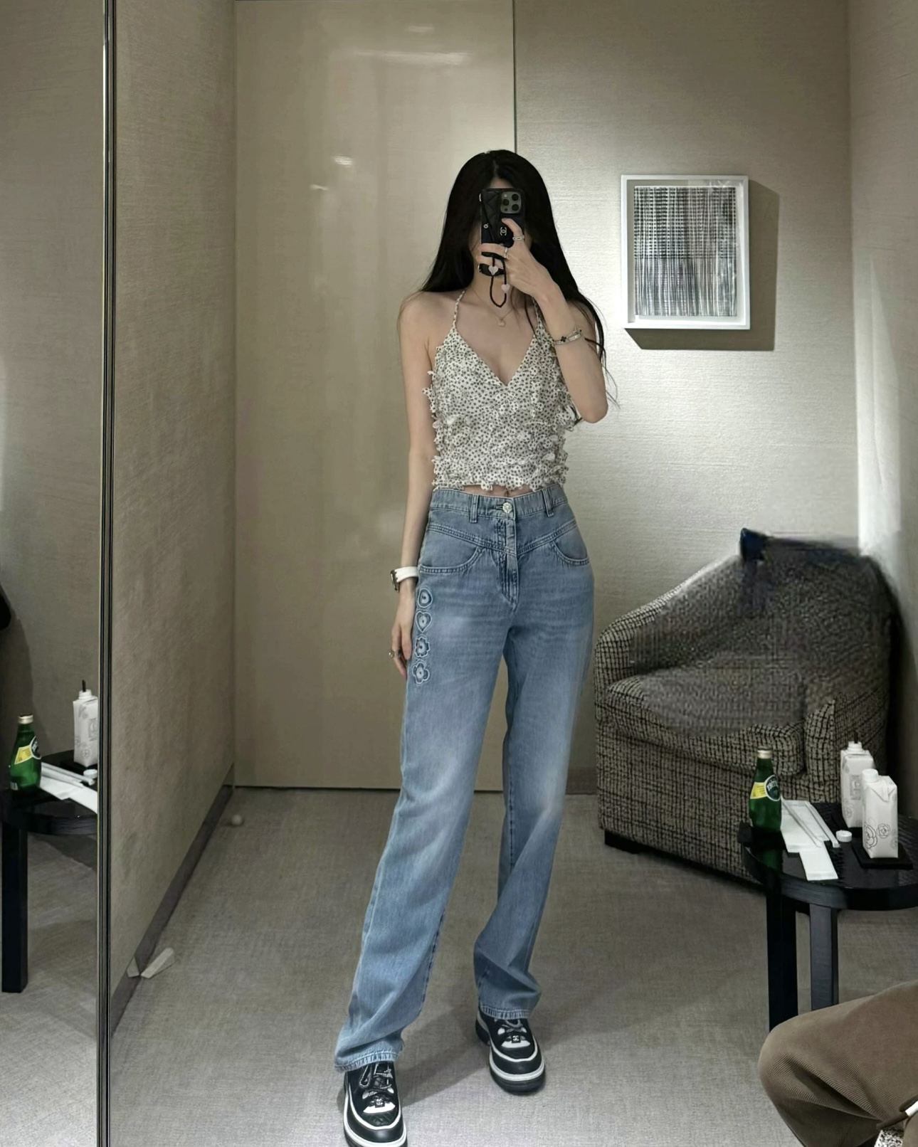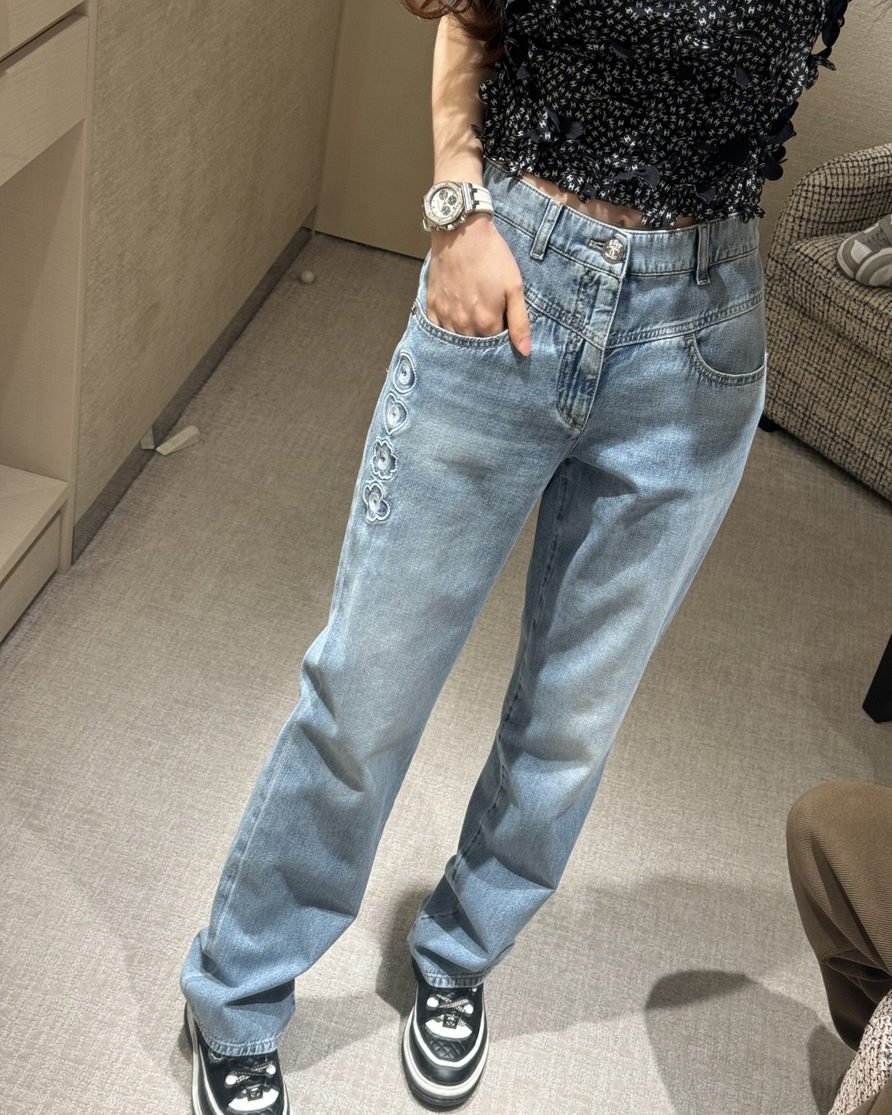 这款衣服是AAAAA 1:1 质量 (非常棒). 使用了和原版一模一样的材料. 商标部分也保持了和香奈儿/Chanel一样. 图片拍摄是实物衣服拍摄, 您所收到的实物保证和我们图片一模一样.
