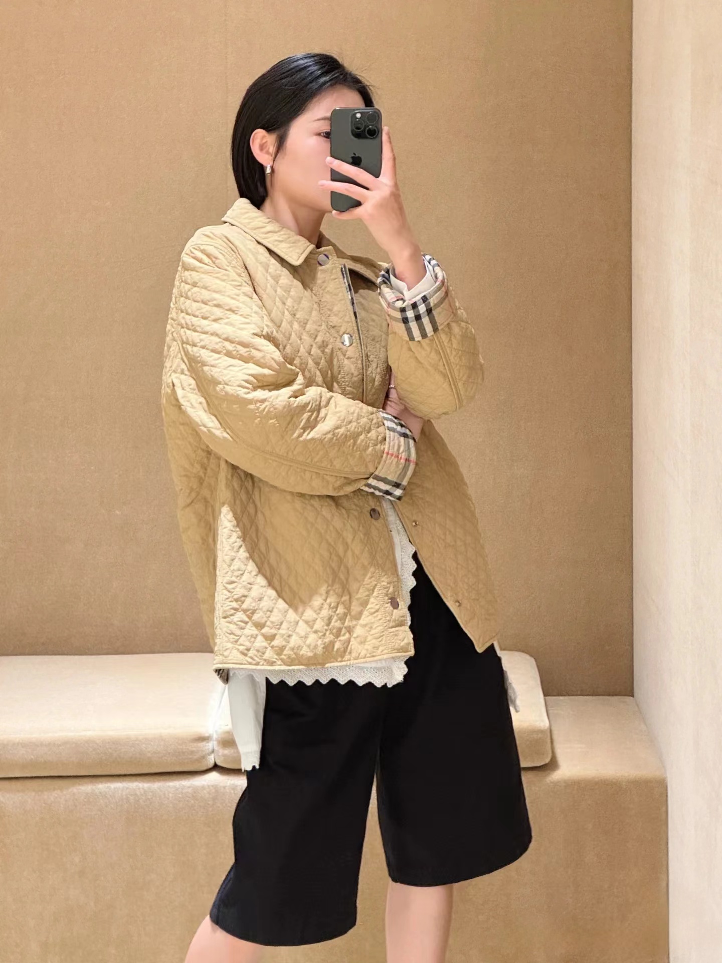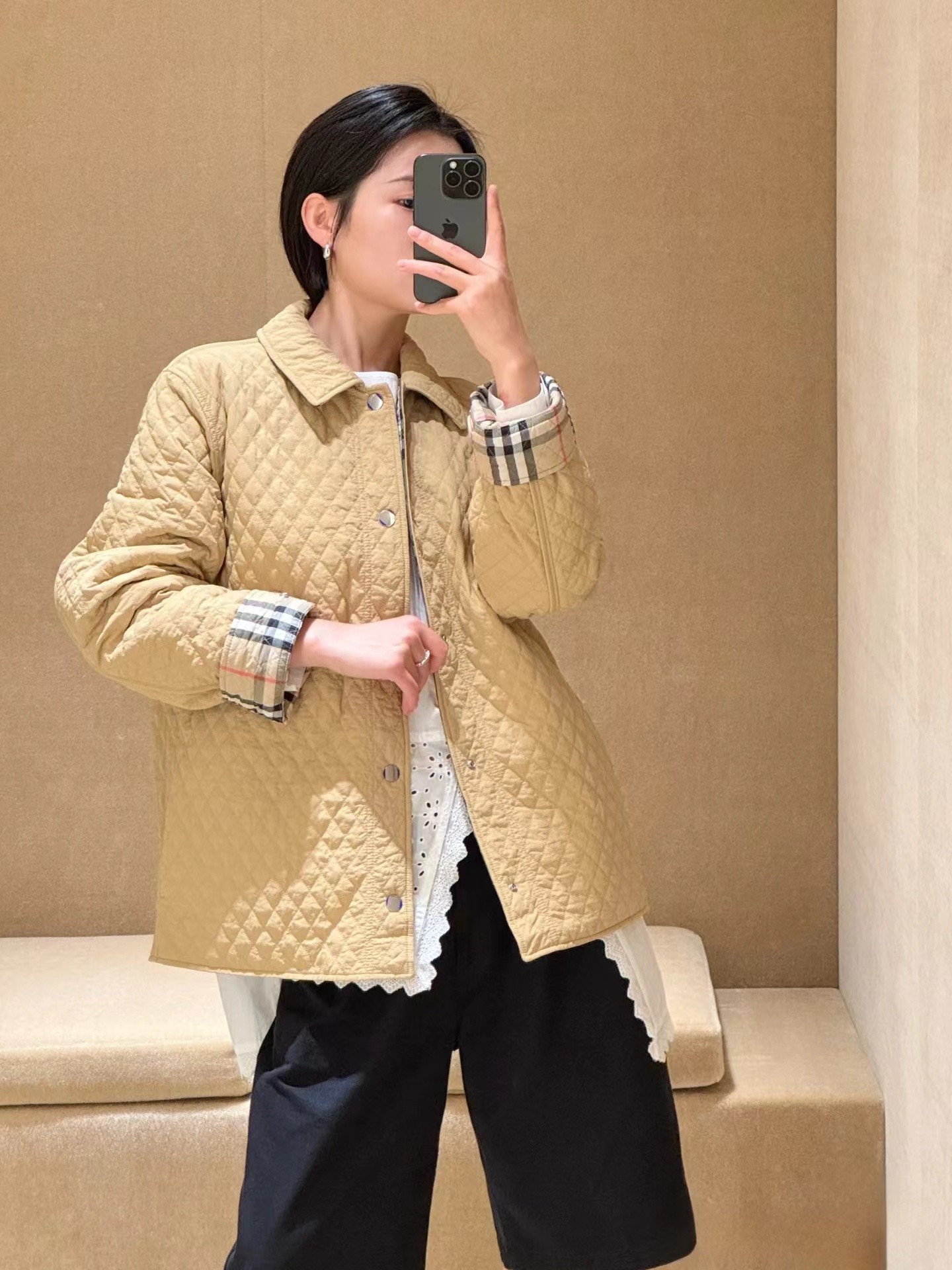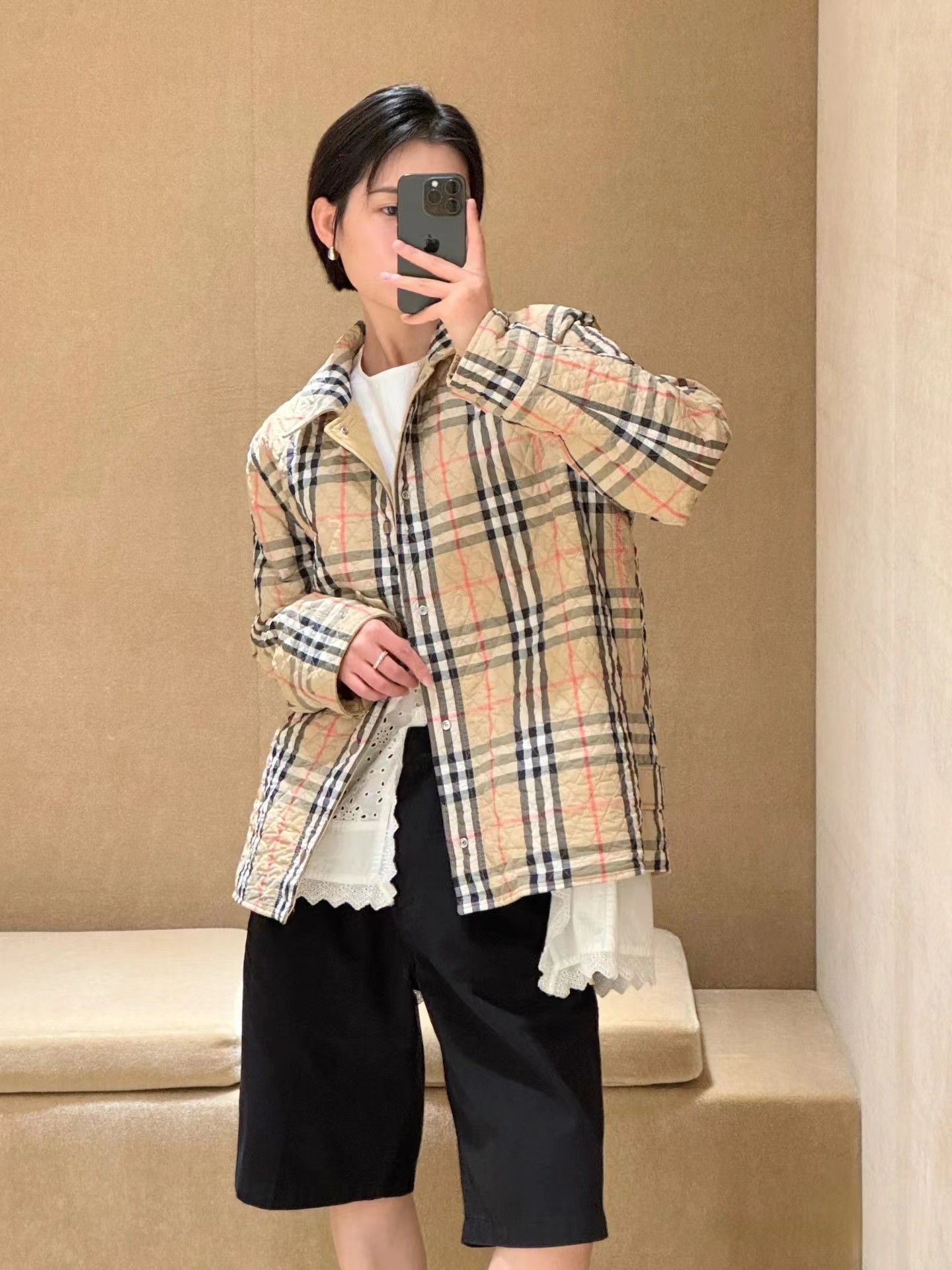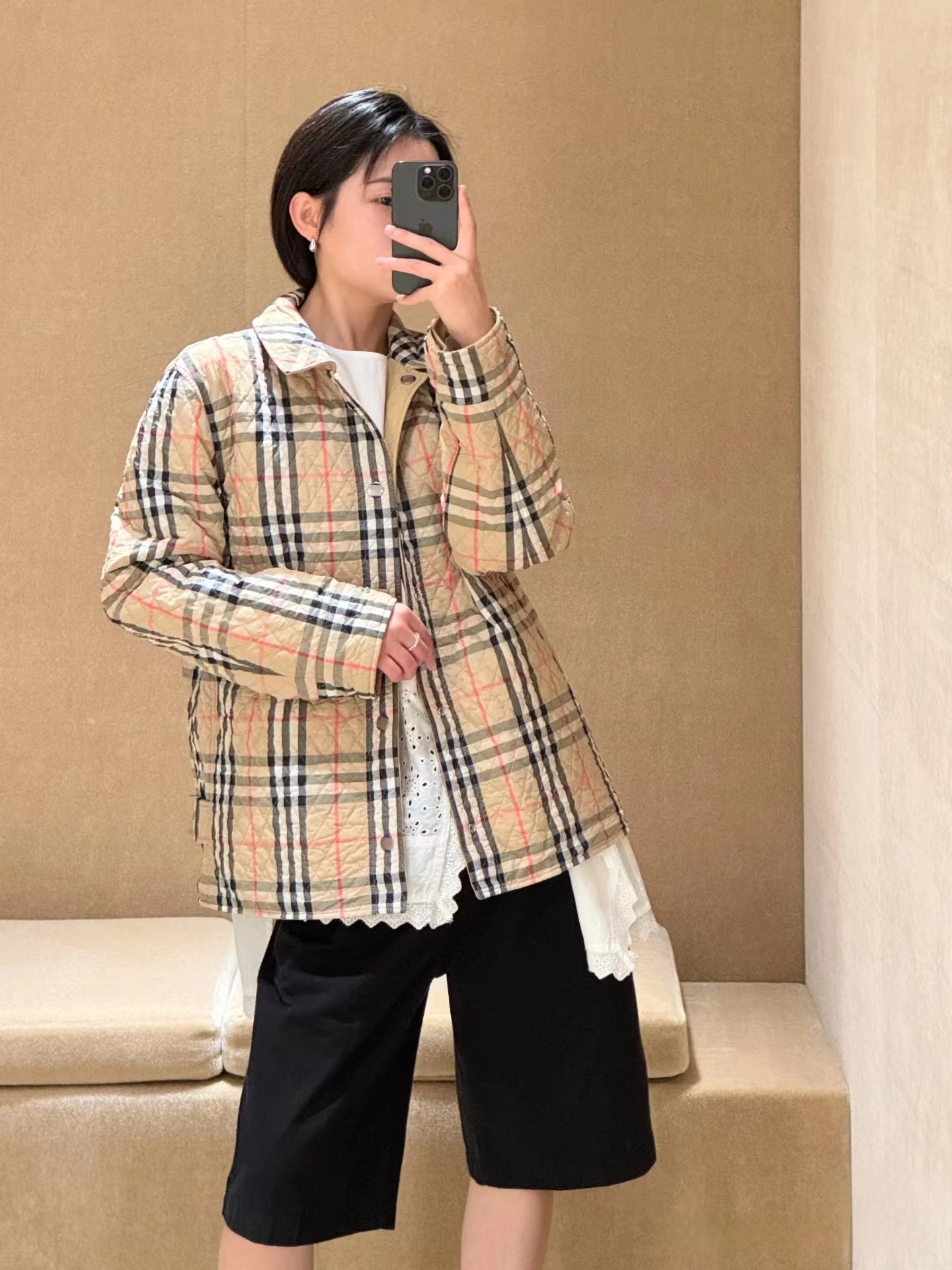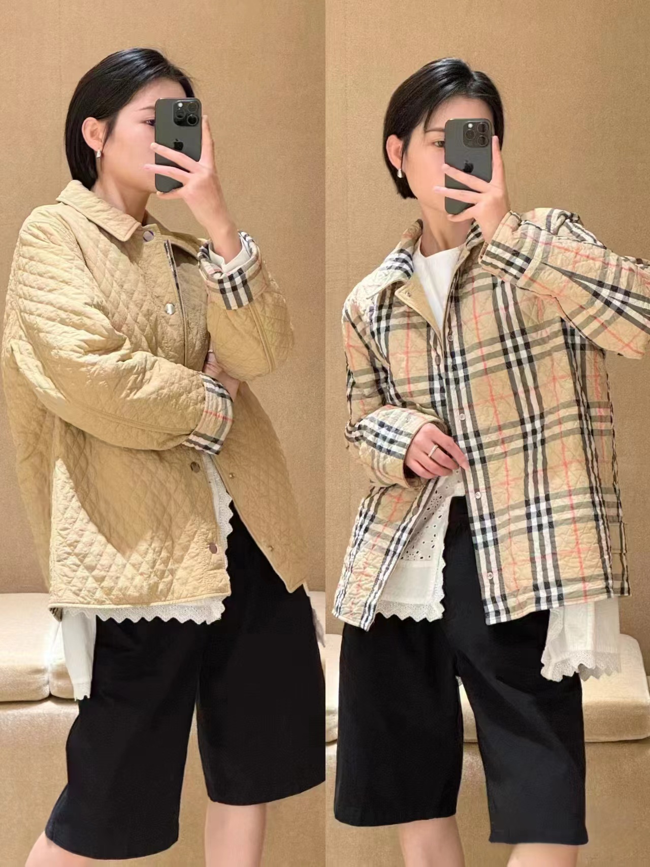 这款衣服是AAAAA 1:1 质量 (非常棒). 使用了和原版一模一样的材料. 商标部分也保持了和巴宝莉/Burberry一样. 图片拍摄是实物衣服拍摄, 您所收到的实物保证和我们图片一模一样.