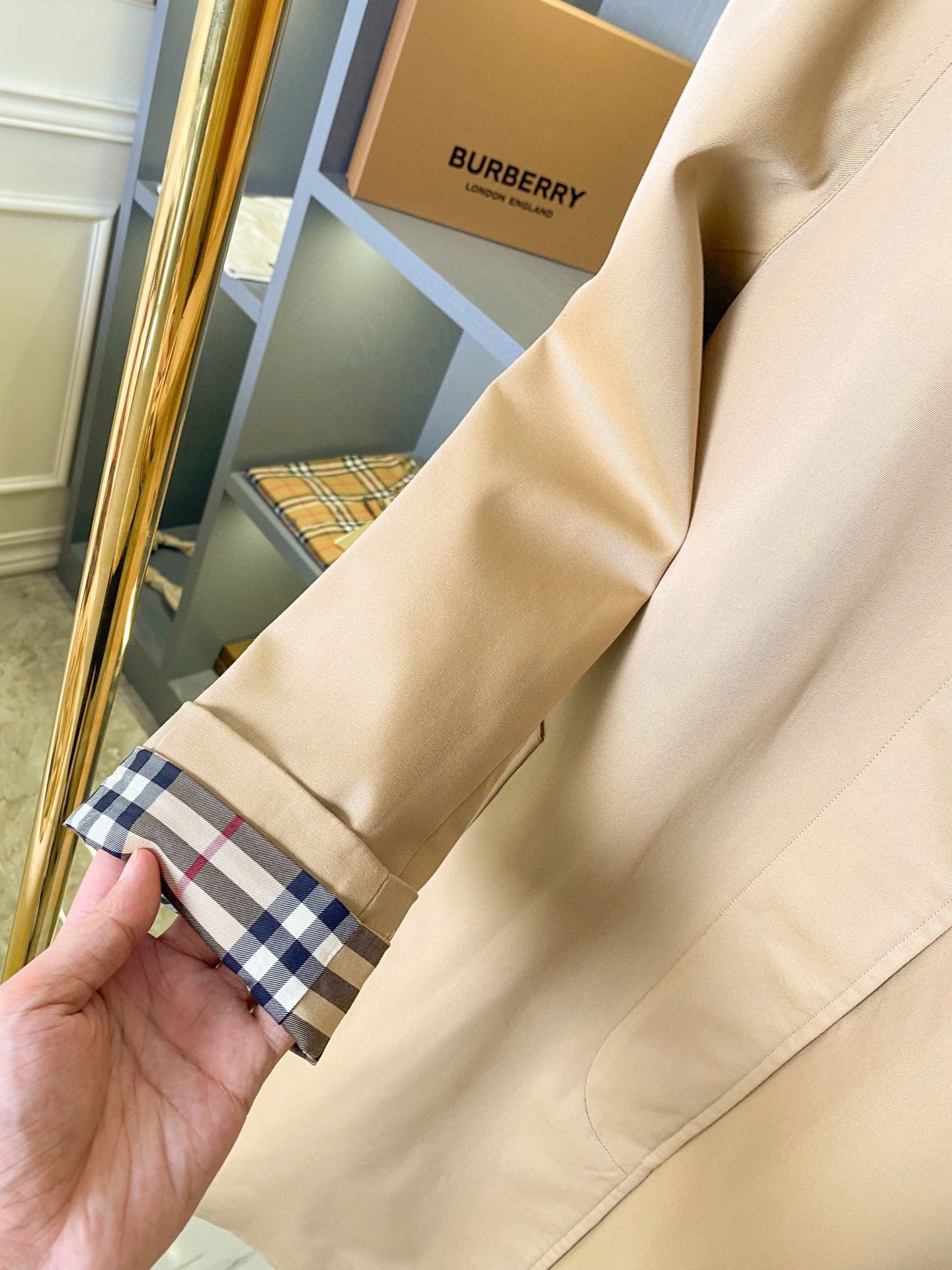 这款衣服是AAAAA 1:1 质量 (非常棒). 使用了和原版一模一样的材料. 商标部分也保持了和巴宝莉/Burberry一样. 图片拍摄是实物衣服拍摄, 您所收到的实物保证和我们图片一模一样.