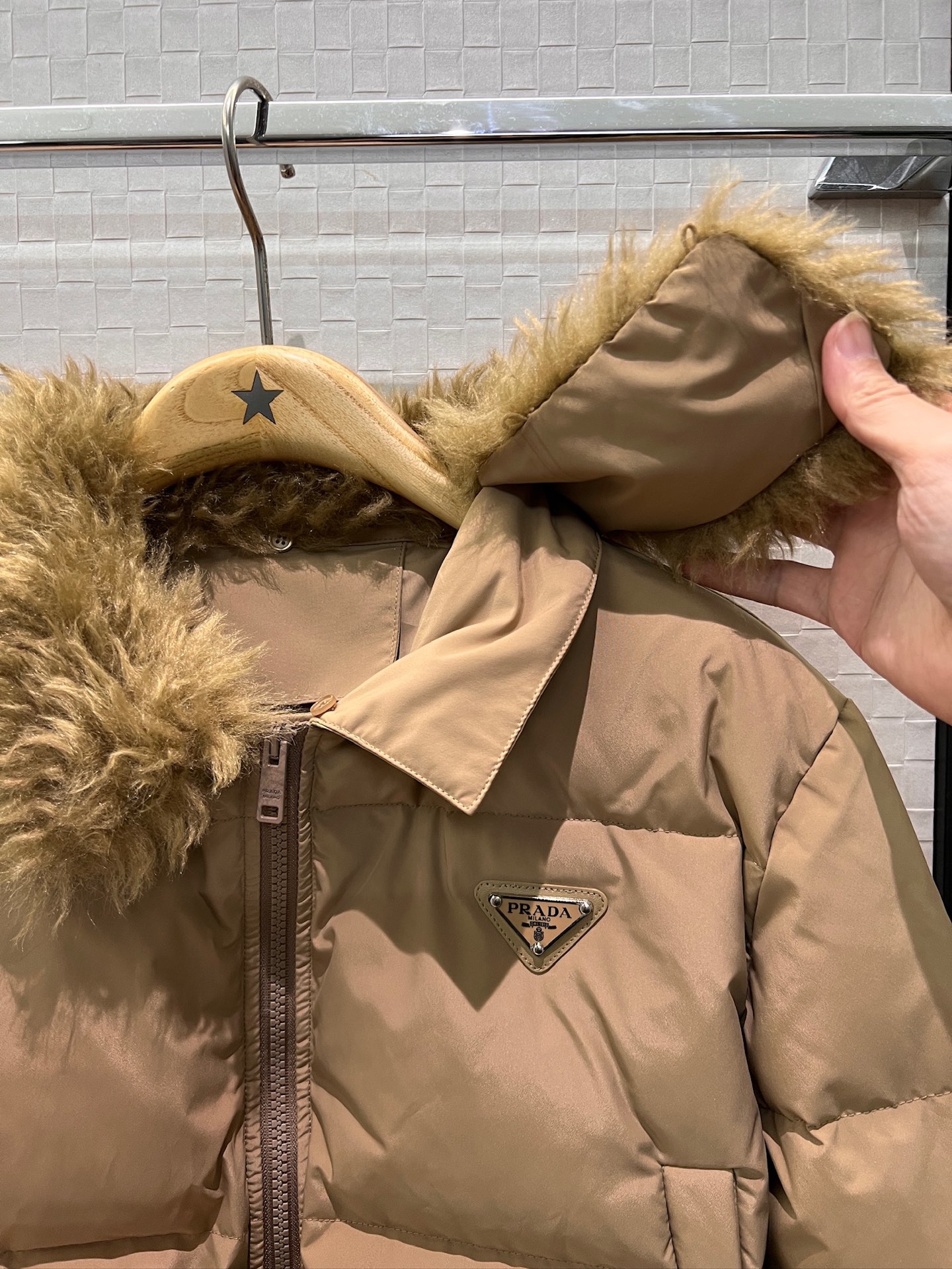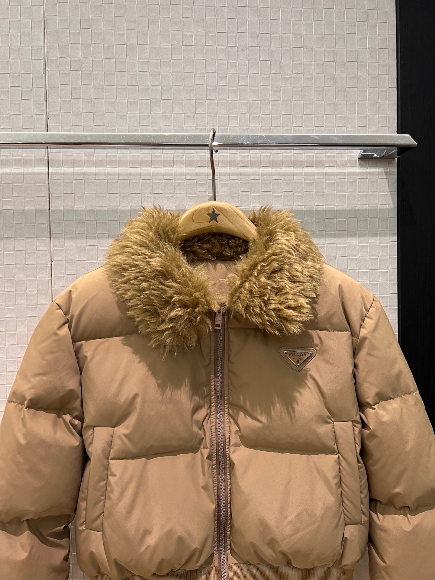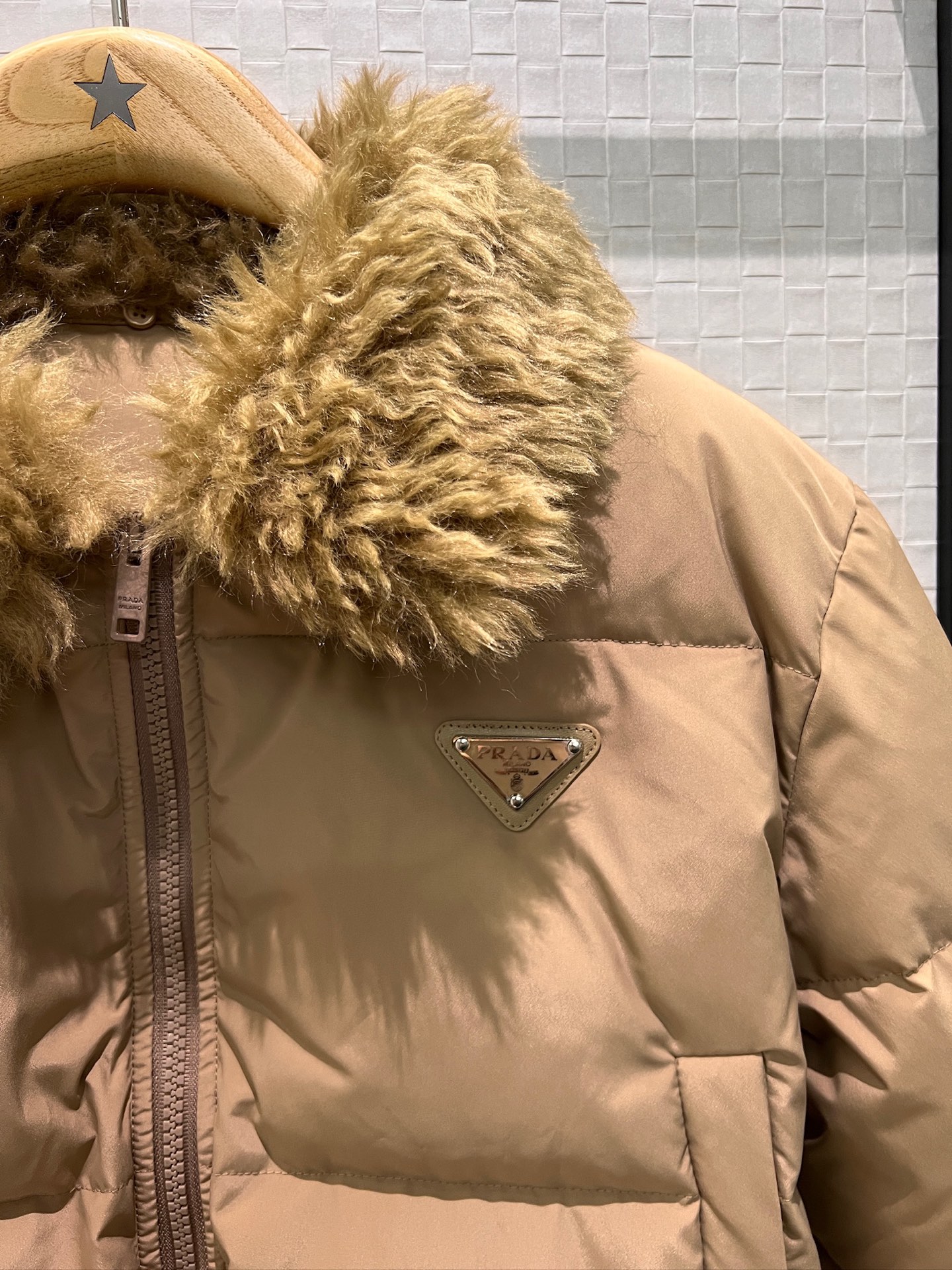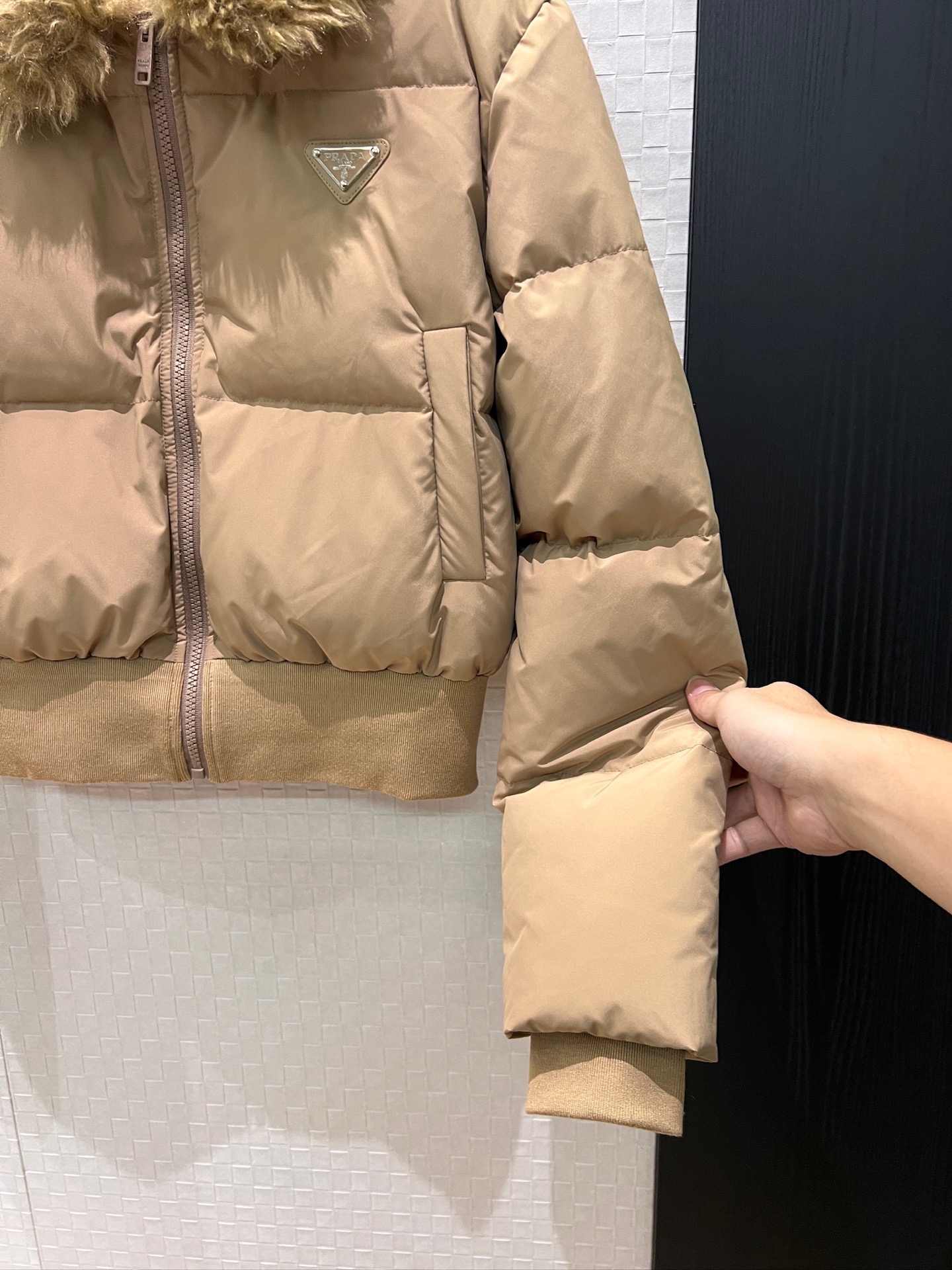 这款衣服是AAAAA 1:1 质量 (非常棒). 使用了和原版一模一样的材料. 商标部分也保持了和普拉达/Prada一样. 图片拍摄是实物衣服拍摄, 您所收到的实物保证和我们图片一模一样.