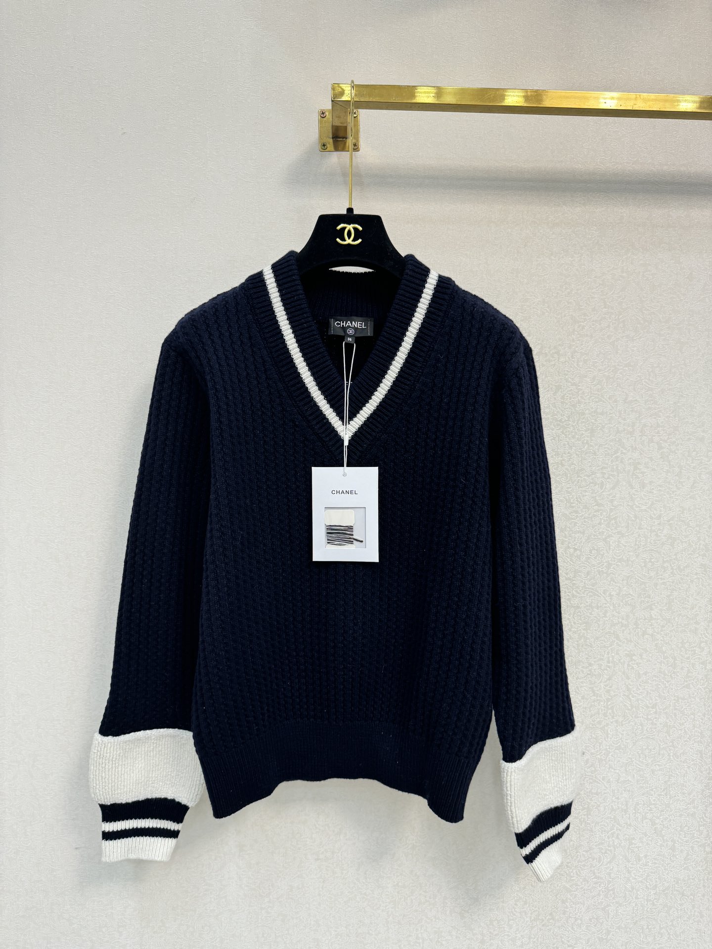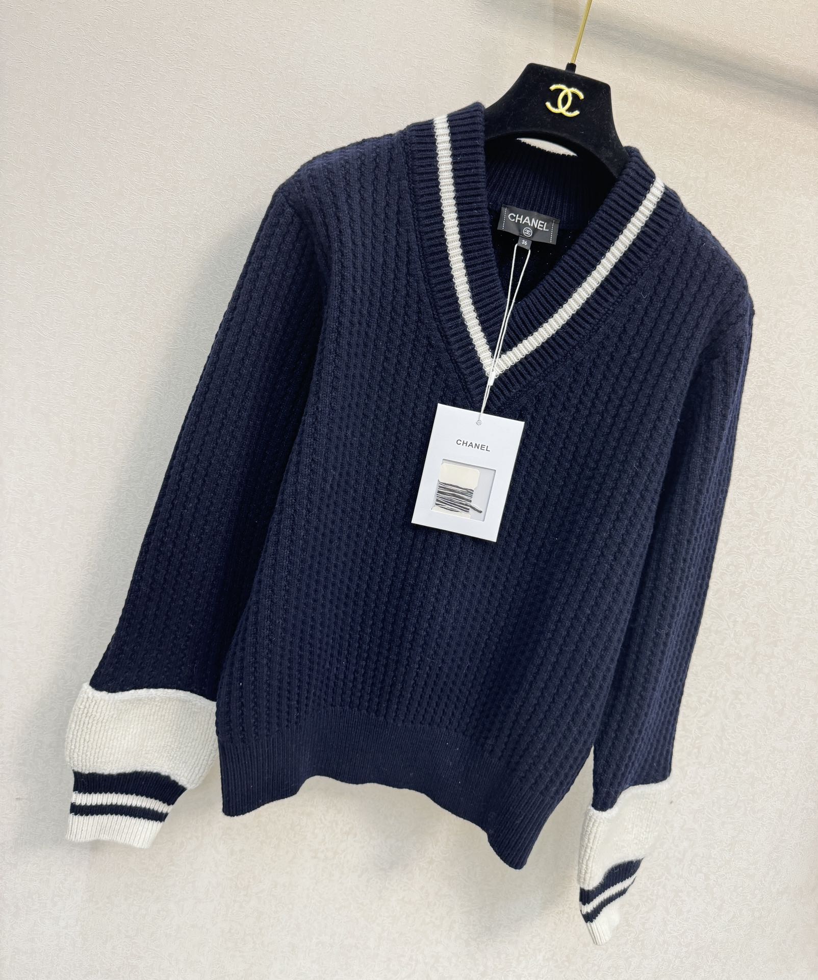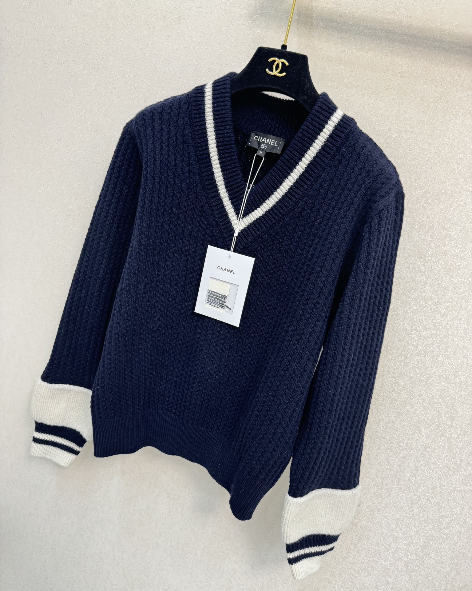 这款衣服是AAAAA 1:1 质量 (非常棒). 使用了和原版一模一样的材料. 商标部分也保持了和香奈儿/Chanel一样. 图片拍摄是实物衣服拍摄, 您所收到的实物保证和我们图片一模一样.