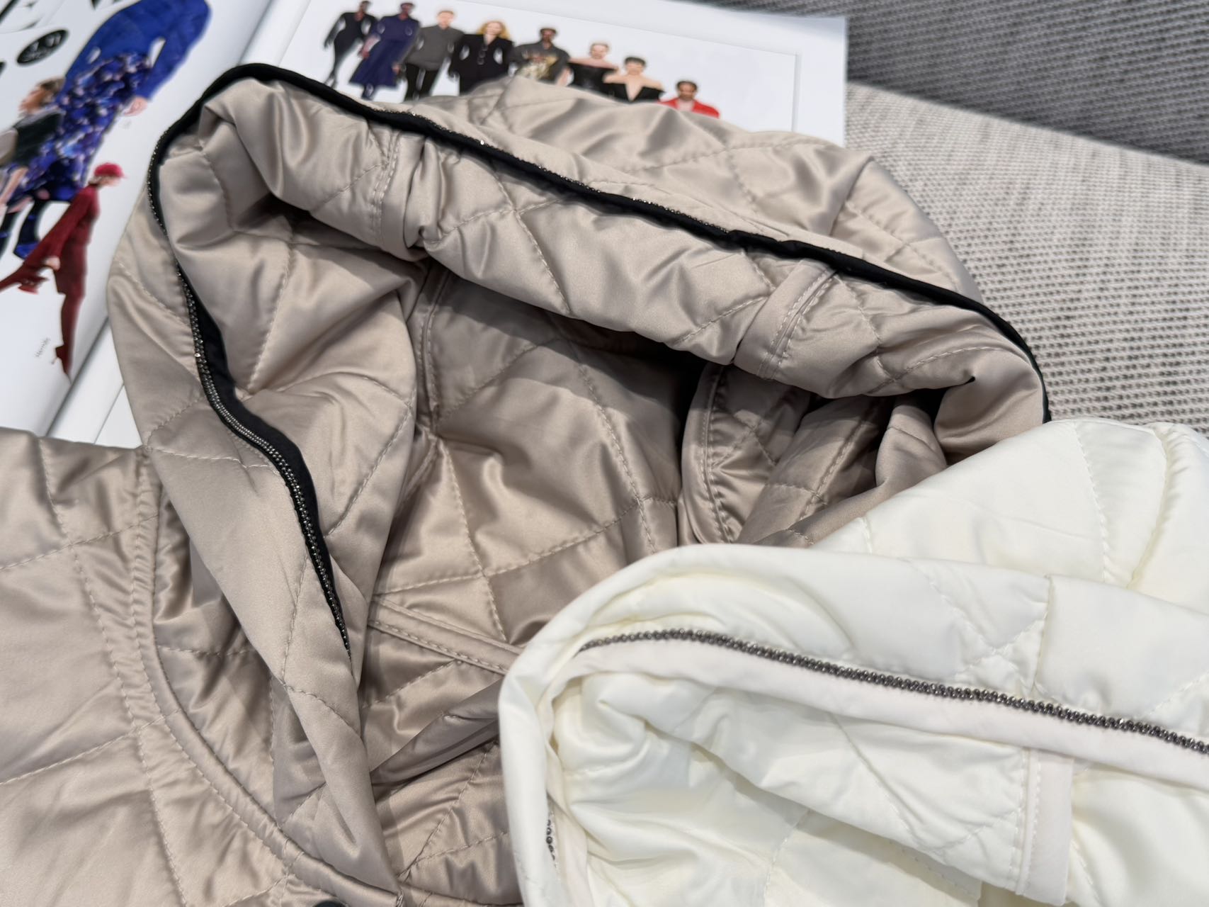 这款衣服是AAAAA 1:1 质量 (非常棒). 使用了和原版一模一样的材料. 商标部分也保持了和Brunello Cucinelli一样. 图片拍摄是实物衣服拍摄, 您所收到的实物保证和我们图片一模一样.