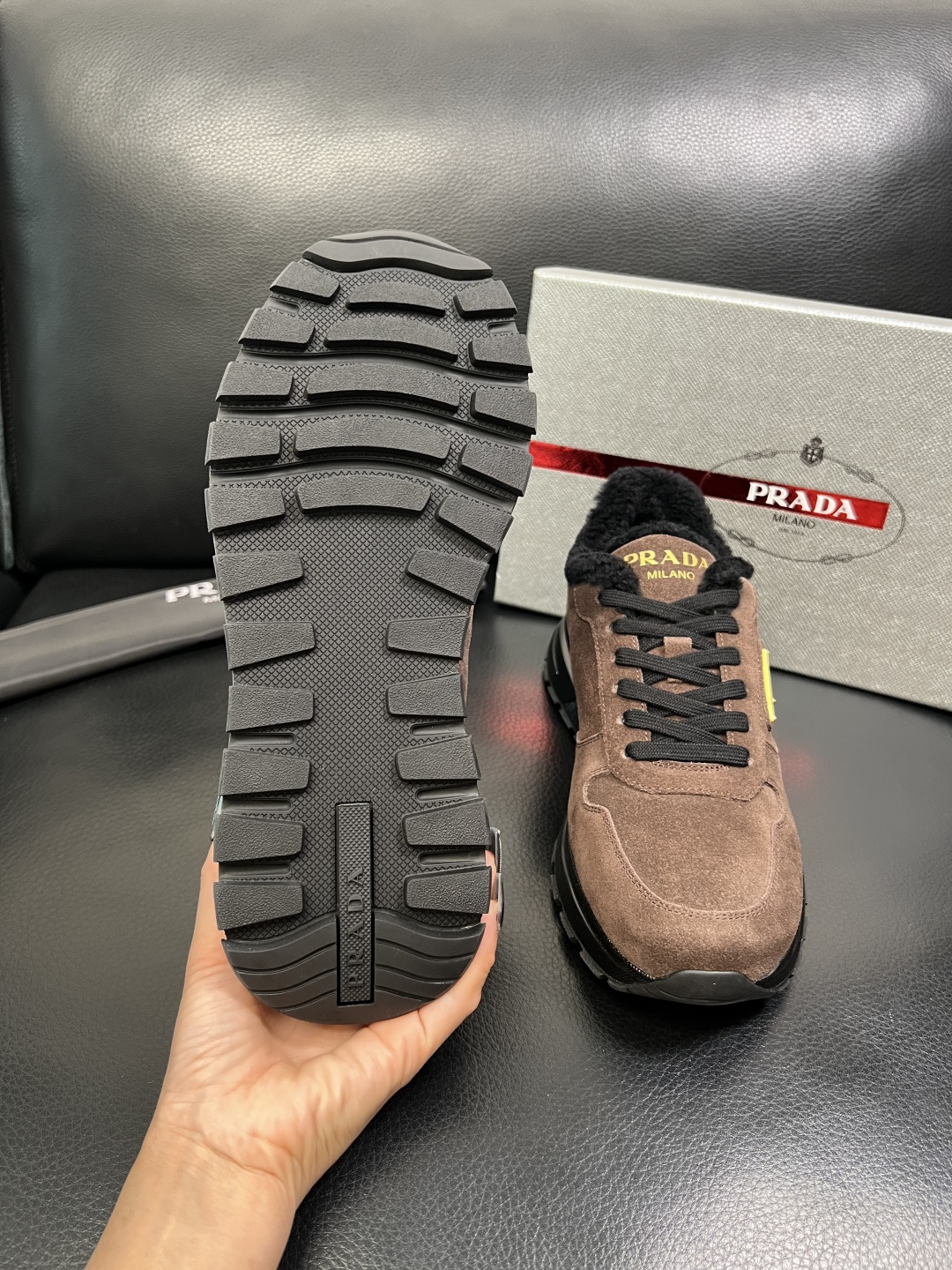 这款鞋子是AAAAA 1:1 质量 (非常棒). 使用了和原版一模一样的材料. 商标部分也保持了和普拉达/Prada一样. 图片拍摄是实物鞋子拍摄, 您所收到的实物保证和我们图片一模一样.