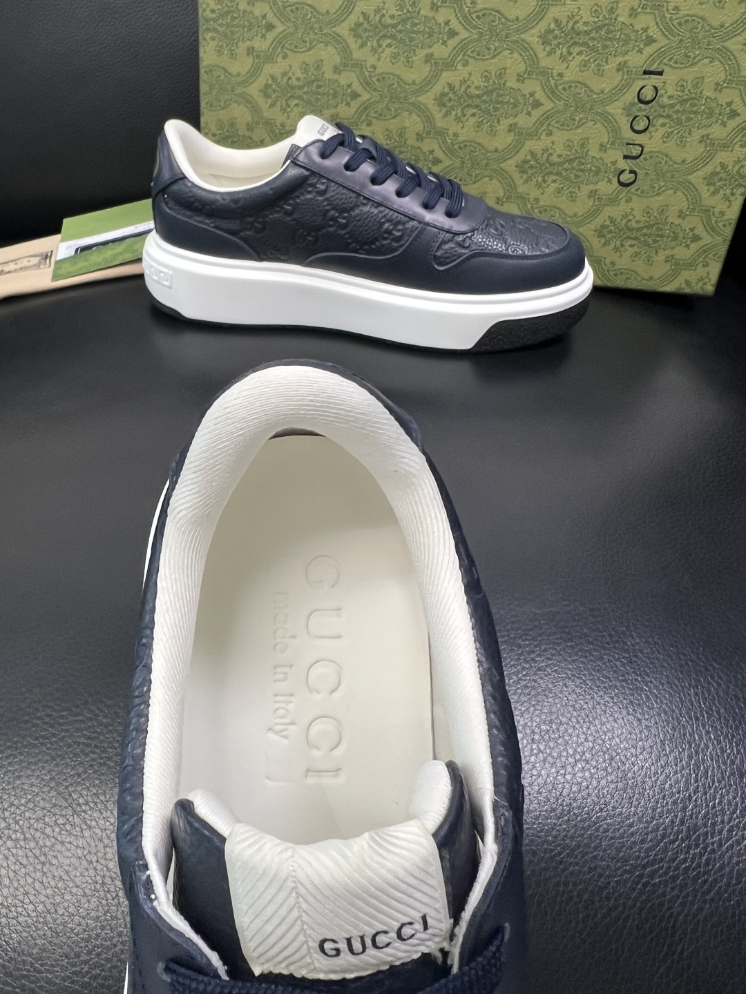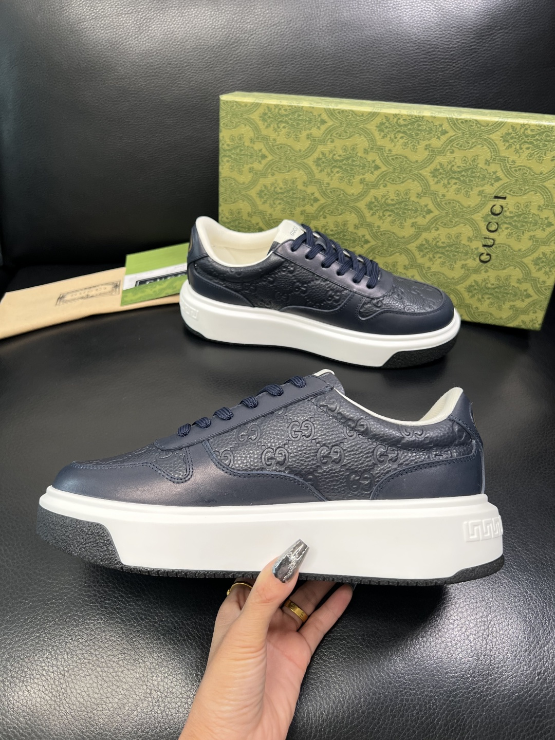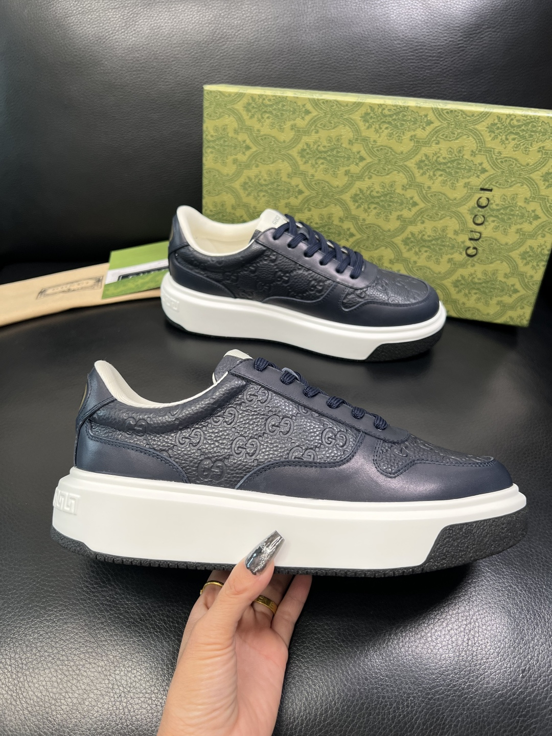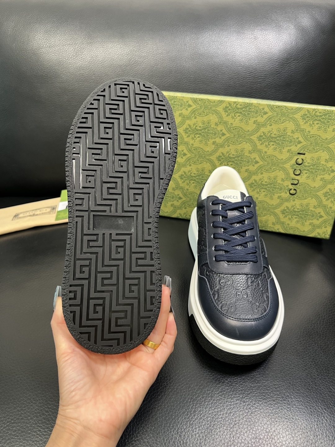 这款鞋子是AAAAA 1:1 质量 (非常棒). 使用了和原版一模一样的材料. 商标部分也保持了和古奇/Gucci一样. 图片拍摄是实物鞋子拍摄, 您所收到的实物保证和我们图片一模一样.