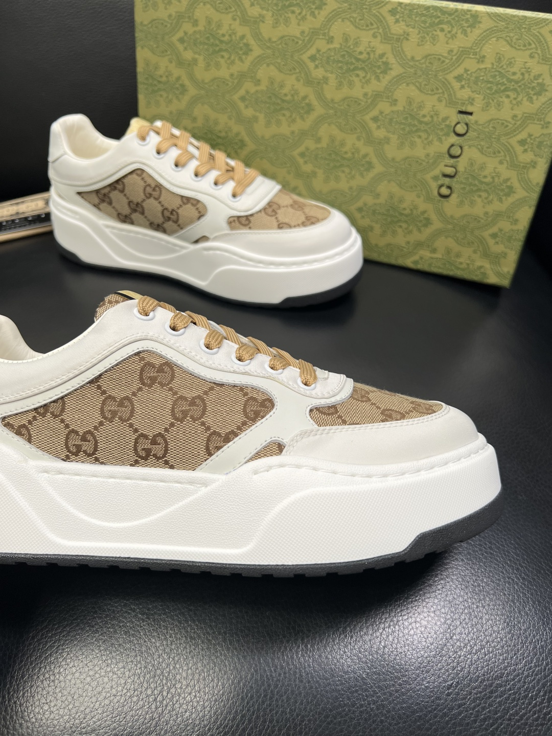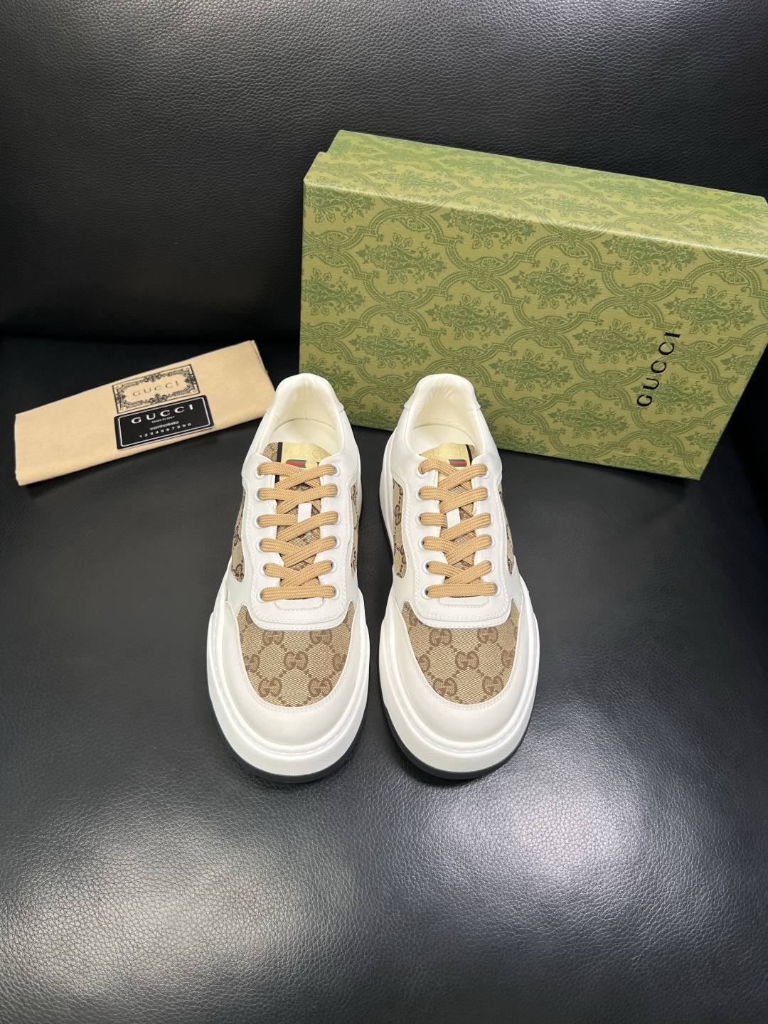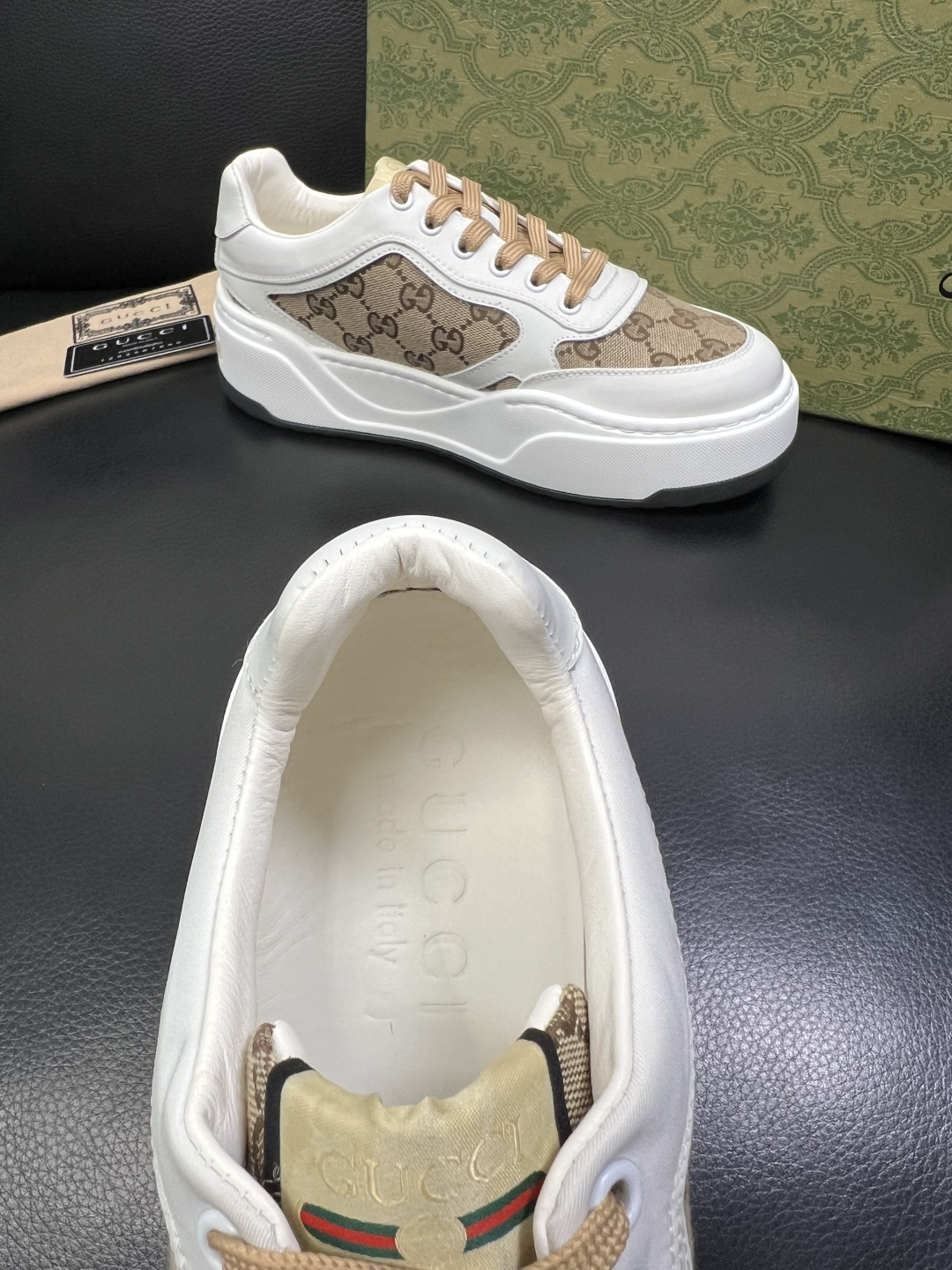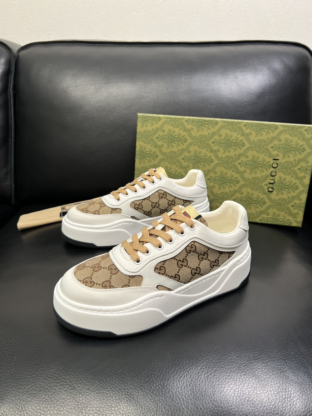 这款鞋子是AAAAA 1:1 质量 (非常棒). 使用了和原版一模一样的材料. 商标部分也保持了和古奇/Gucci一样. 图片拍摄是实物鞋子拍摄, 您所收到的实物保证和我们图片一模一样.