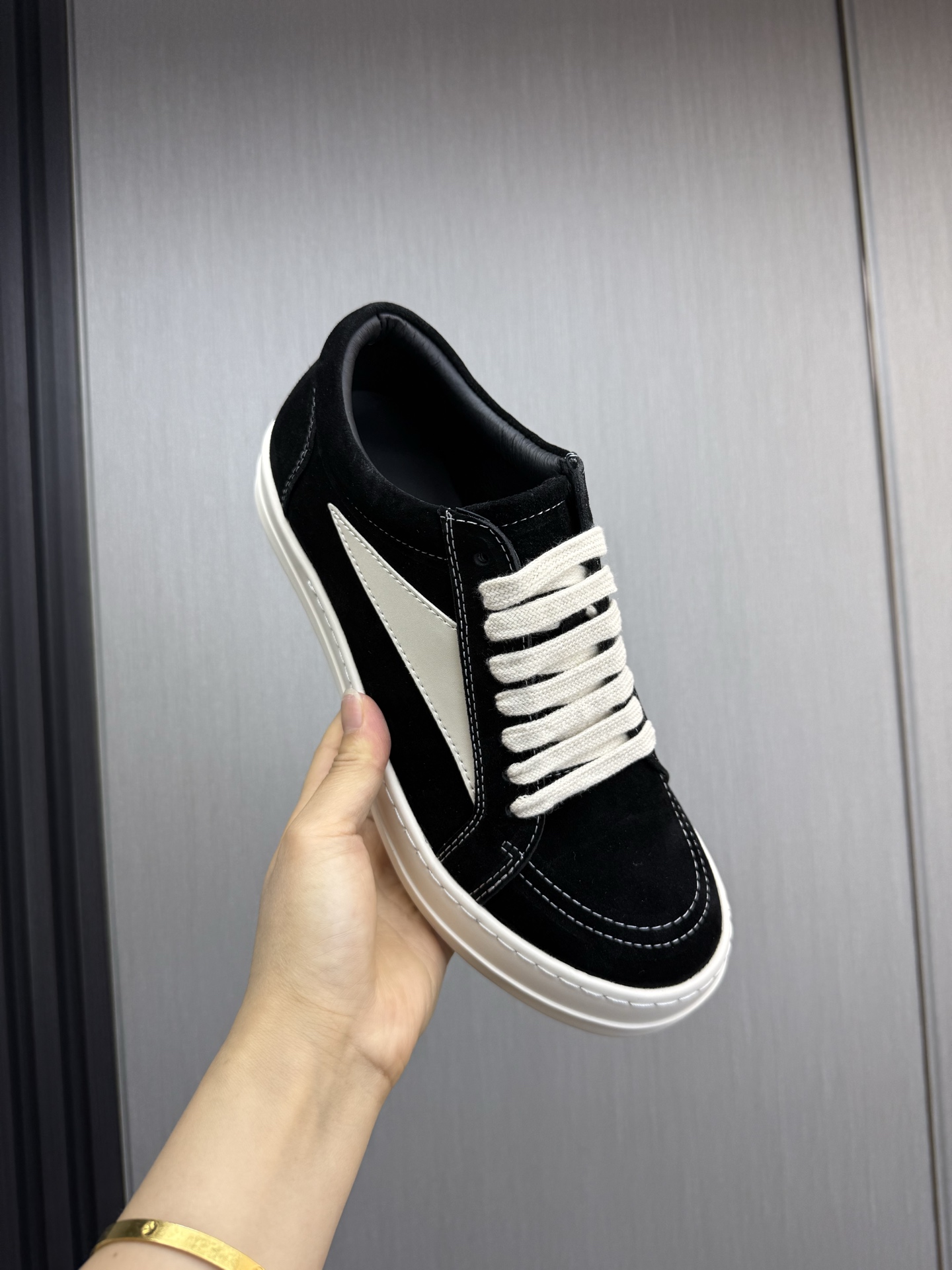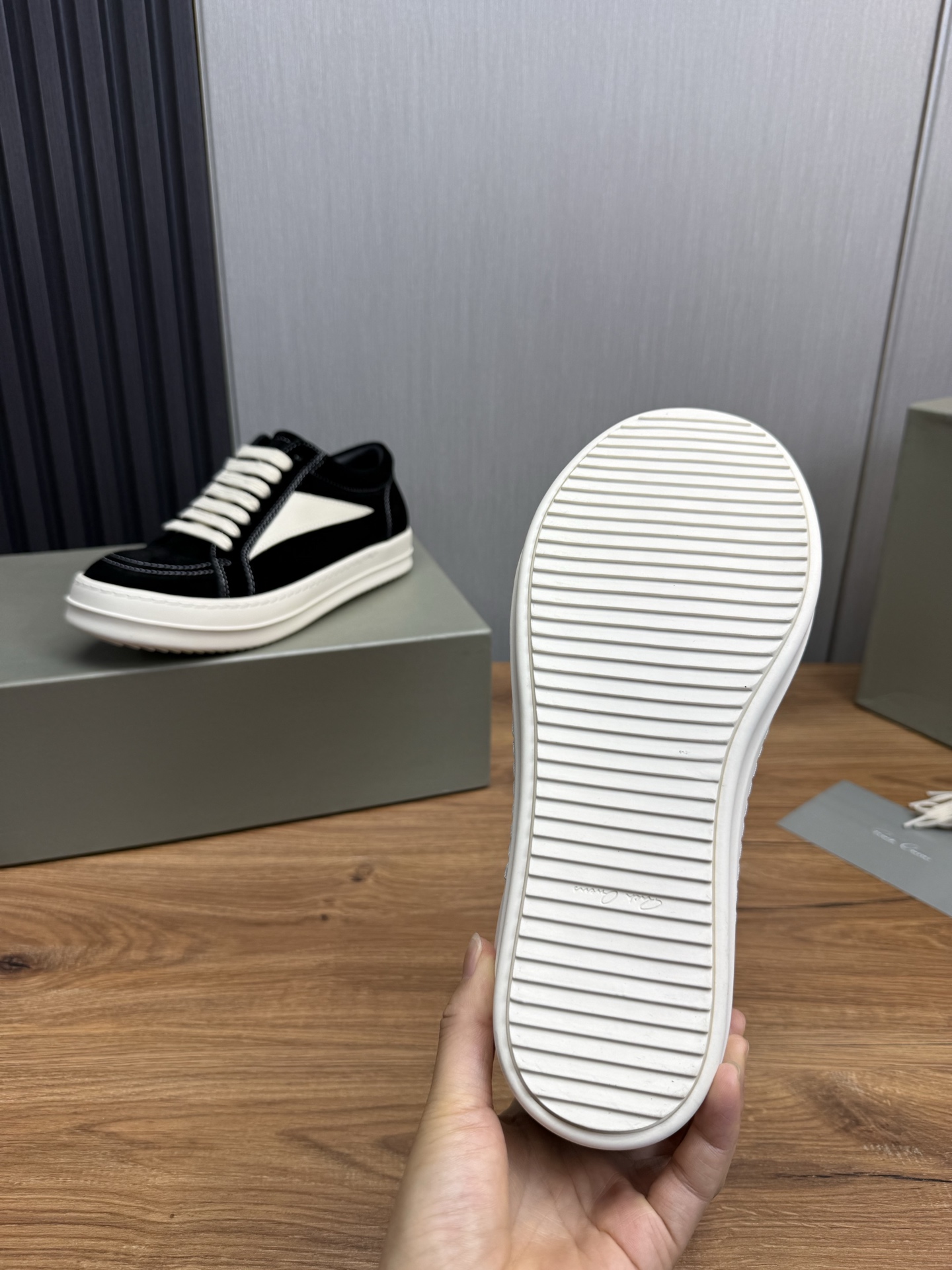 这款鞋子是AAAAA 1:1 质量 (非常棒). 使用了和原版一模一样的材料. 商标部分也保持了和里克·欧文斯/Rick Owens一样. 图片拍摄是实物鞋子拍摄, 您所收到的实物保证和我们图片一模一样.