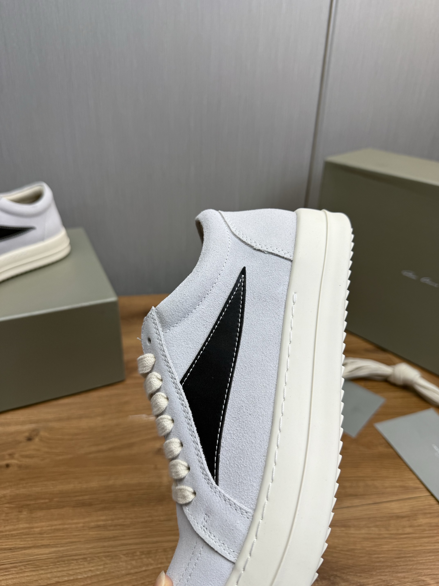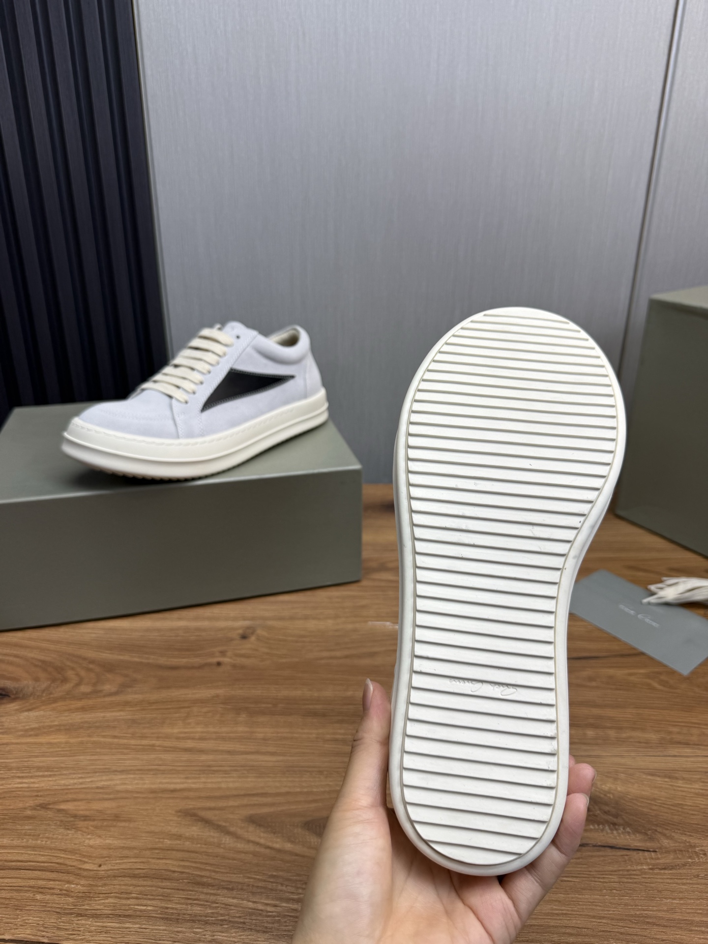 这款鞋子是AAAAA 1:1 质量 (非常棒). 使用了和原版一模一样的材料. 商标部分也保持了和里克·欧文斯/Rick Owens一样. 图片拍摄是实物鞋子拍摄, 您所收到的实物保证和我们图片一模一样.