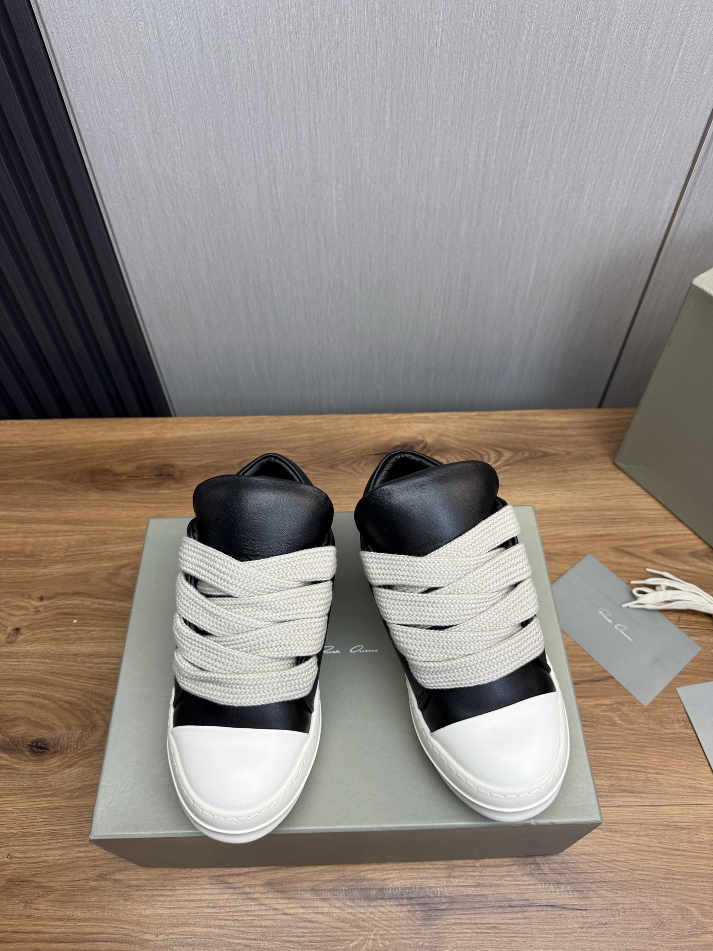 这款鞋子是AAAAA 1:1 质量 (非常棒). 使用了和原版一模一样的材料. 商标部分也保持了和里克·欧文斯/Rick Owens一样. 图片拍摄是实物鞋子拍摄, 您所收到的实物保证和我们图片一模一样.
